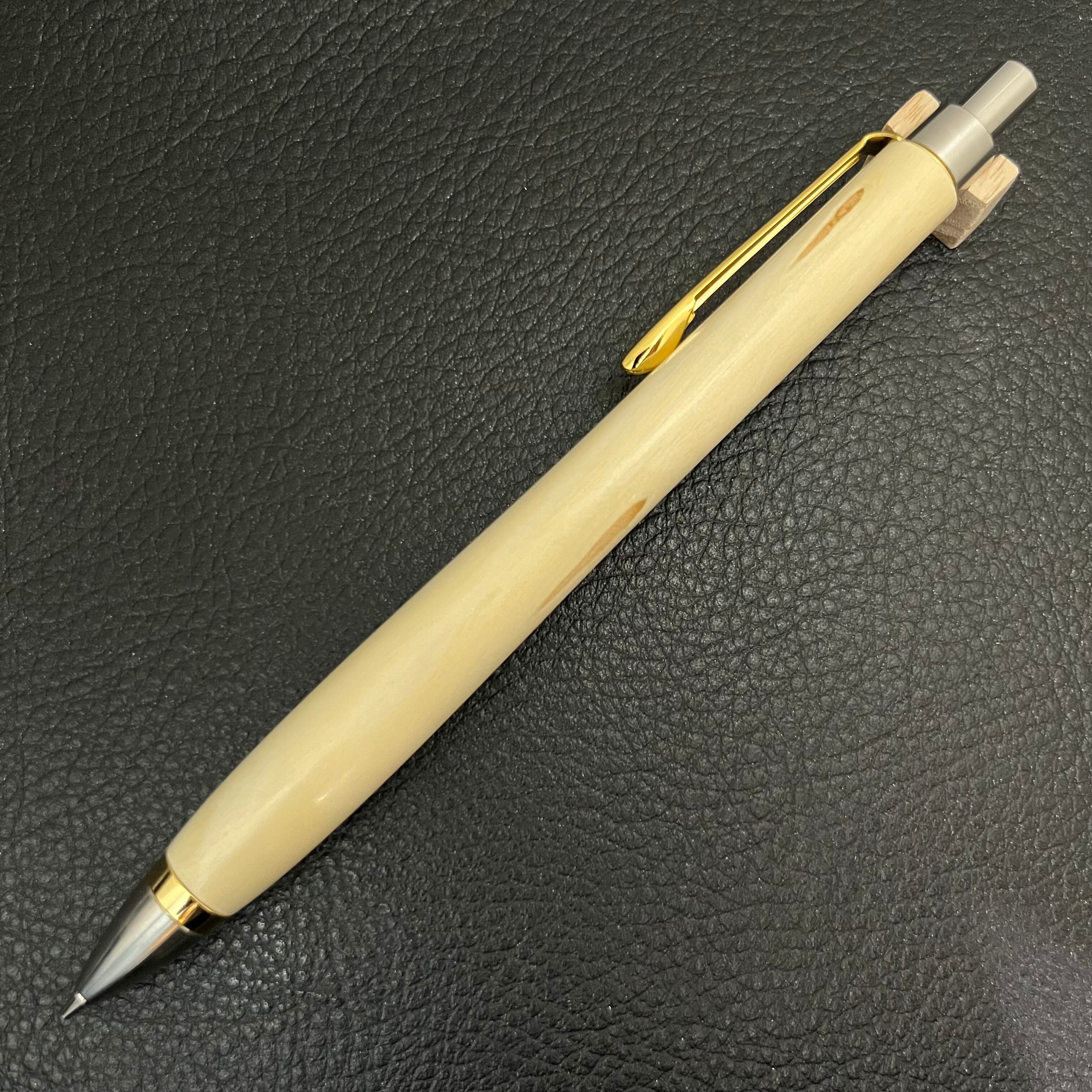ペンシルは軸ブレが起こりにくい固定式口金を採用し、木の表情を最大限に楽しめる木軸の長さと、書き心地にこだわったバランスで金具を設計してあります。