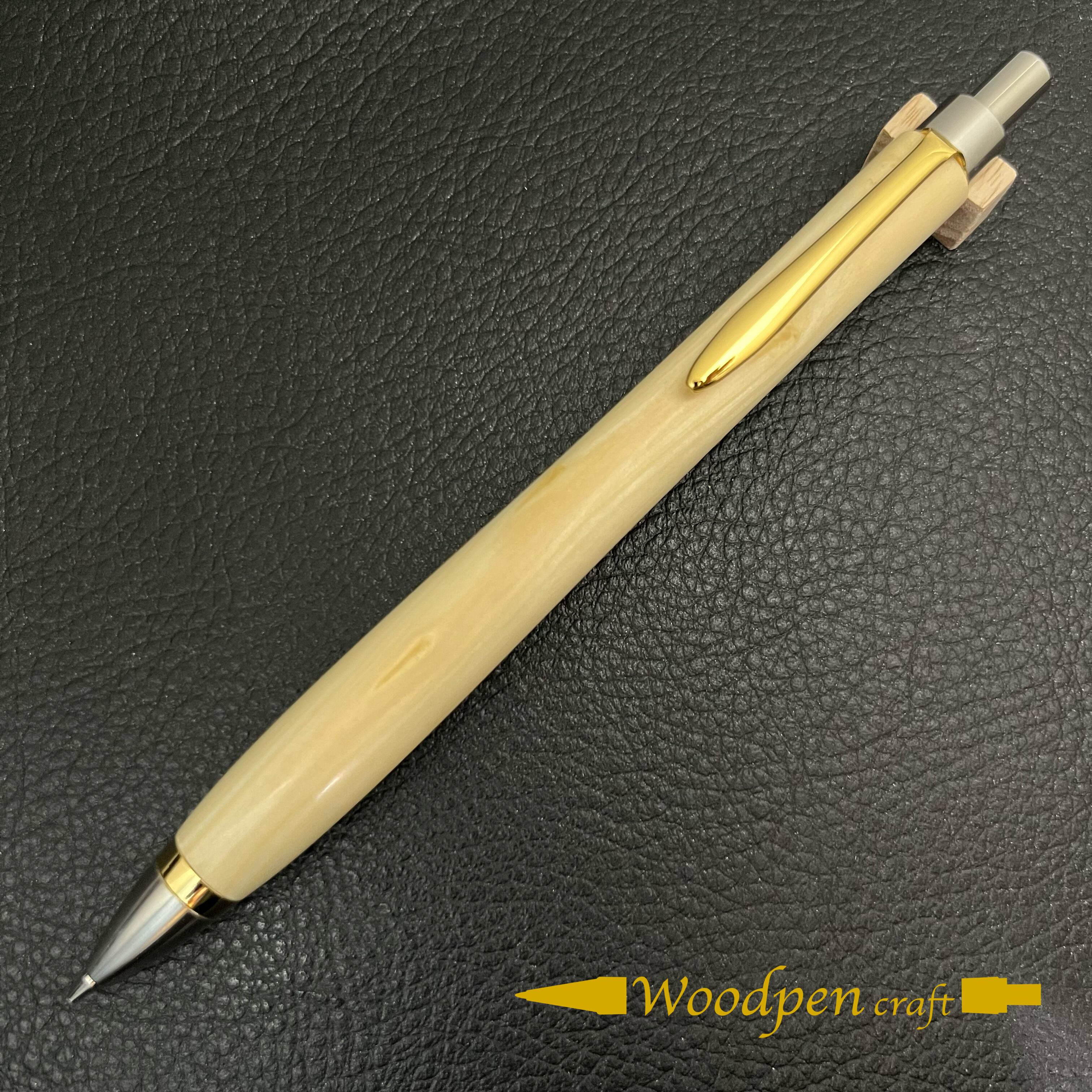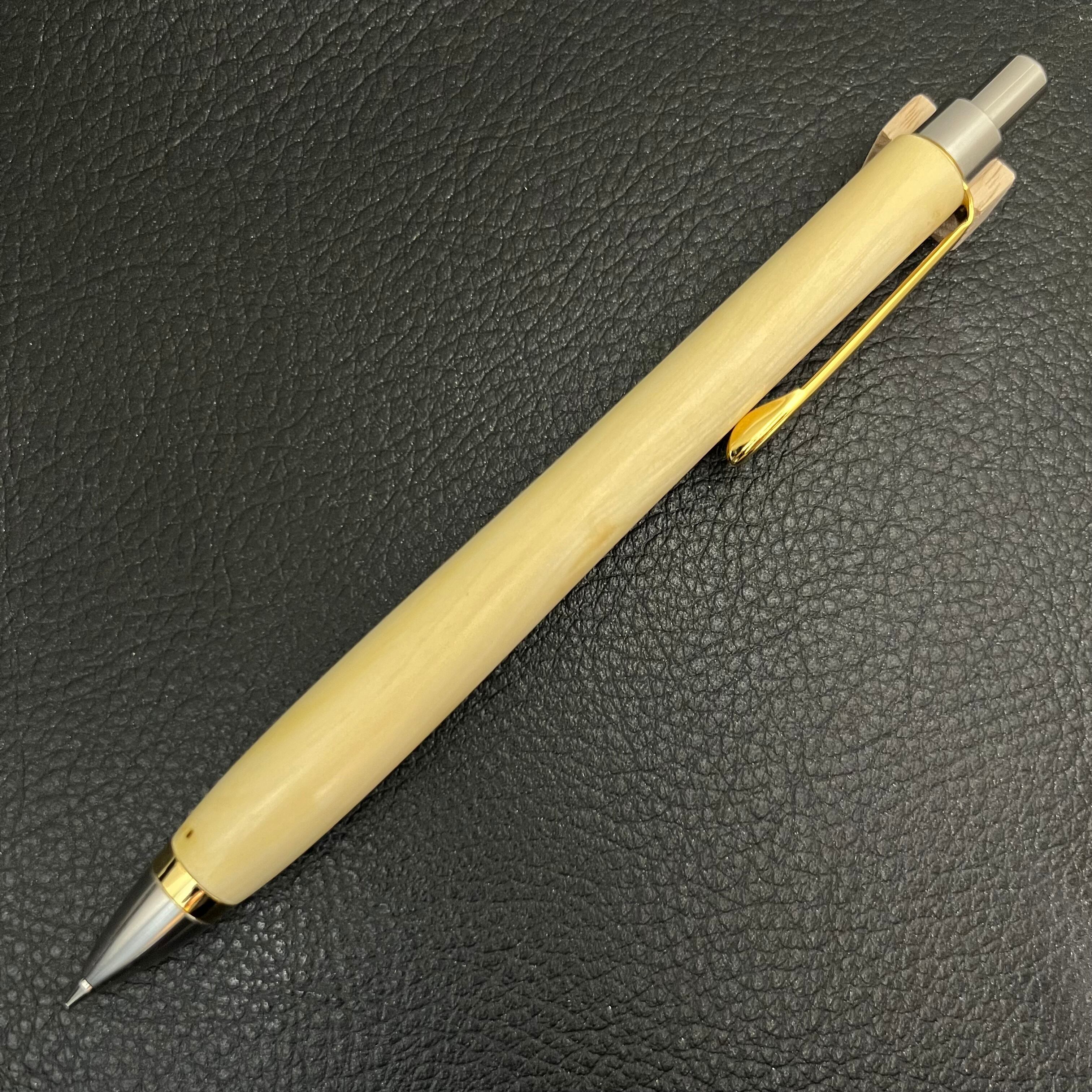 ペンシルは軸ブレが起こりにくい固定式口金を採用し、木の表情を最大限に楽しめる木軸の長さと、書き心地にこだわったバランスで金具を設計してあります。