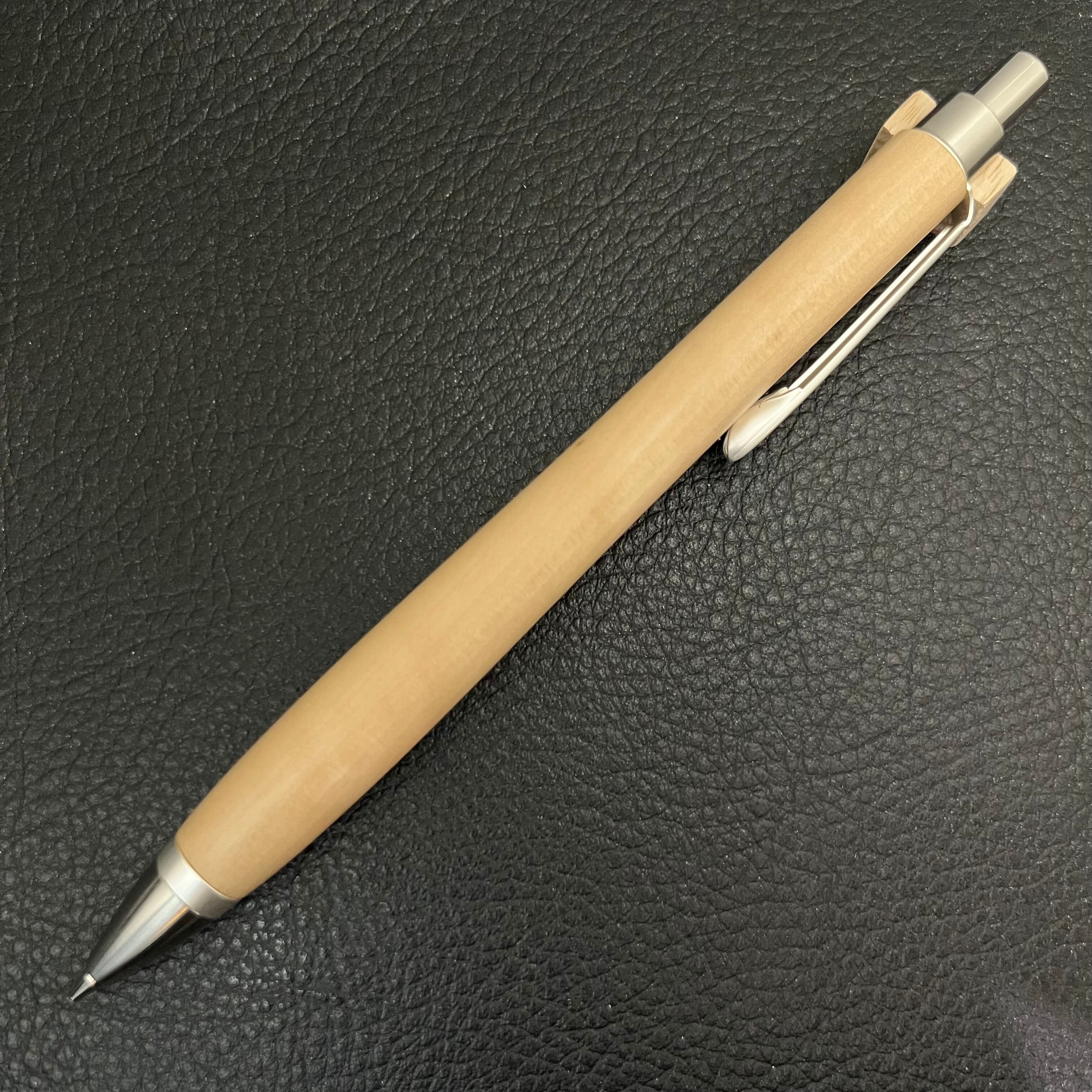 ペンシルは軸ブレが起こりにくい固定式口金を採用し、木の表情を最大限に楽しめる木軸の長さと、書き心地にこだわったバランスで金具を設計してあります。