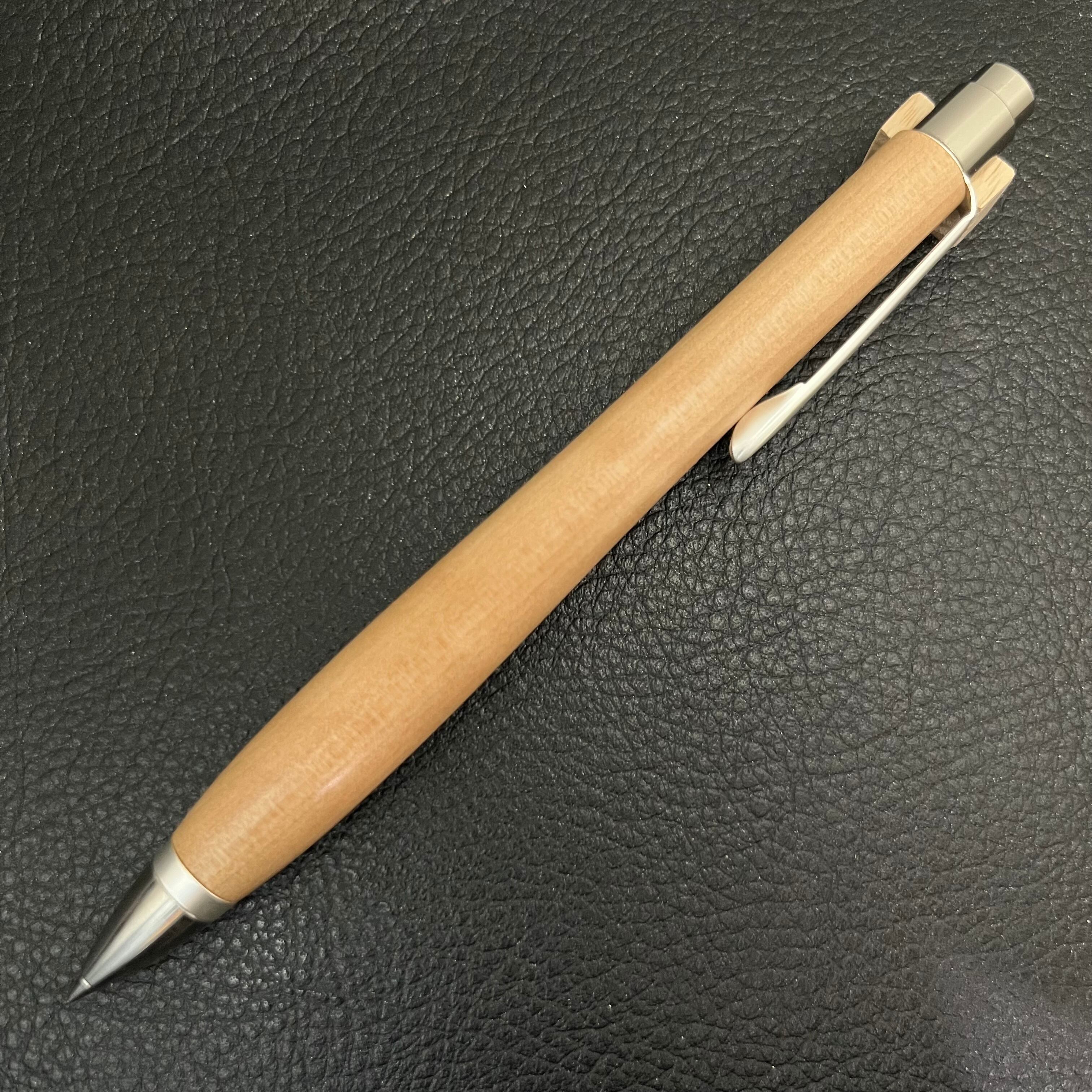 ボールペンのノックシステムは、ドイツ最高のクリックメカニズムを採用してあります。このメカニズムはユニークな機構のため、クリックしたときのカチカチ音が静かで、どんな場所でも気兼ねなく使うことができます。滑らかに動くこのプッシュ感覚を一度味わうと他には戻れなくなってしまうほどの魅力があります。 100分の1単位の加工精度で削り出されたペン先は、軸ブレも全くありません。