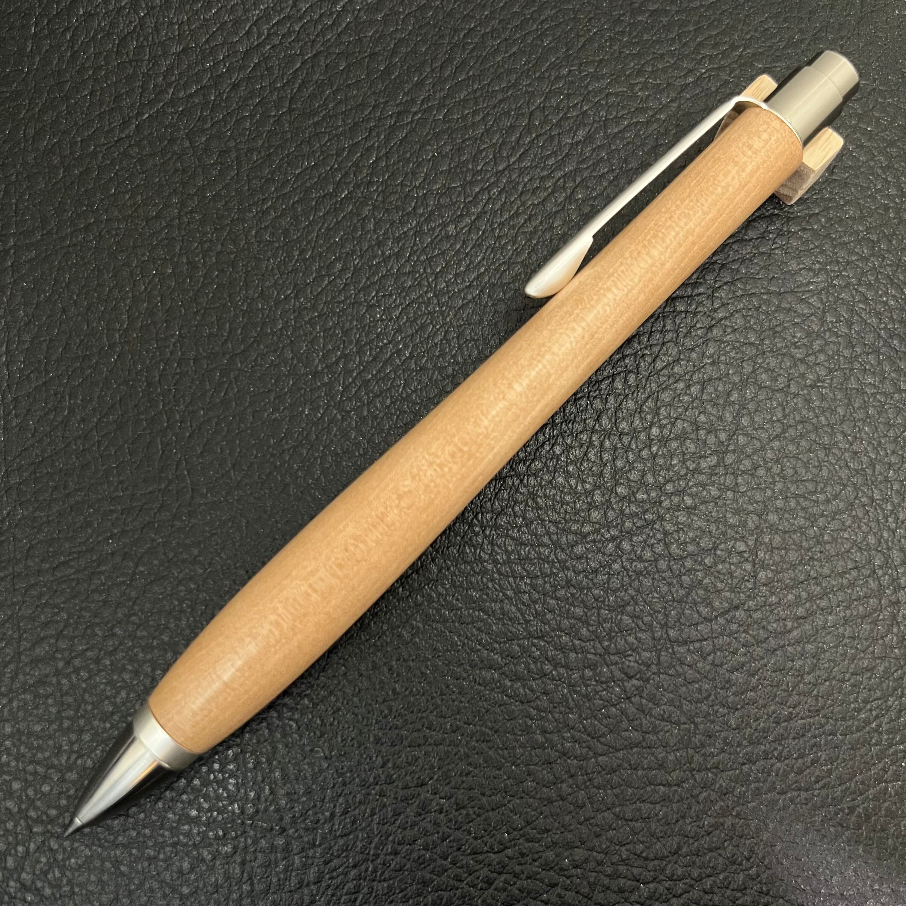 ボールペンのノックシステムは、ドイツ最高のクリックメカニズムを採用してあります。このメカニズムはユニークな機構のため、クリックしたときのカチカチ音が静かで、どんな場所でも気兼ねなく使うことができます。滑らかに動くこのプッシュ感覚を一度味わうと他には戻れなくなってしまうほどの魅力があります。 100分の1単位の加工精度で削り出されたペン先は、軸ブレも全くありません。