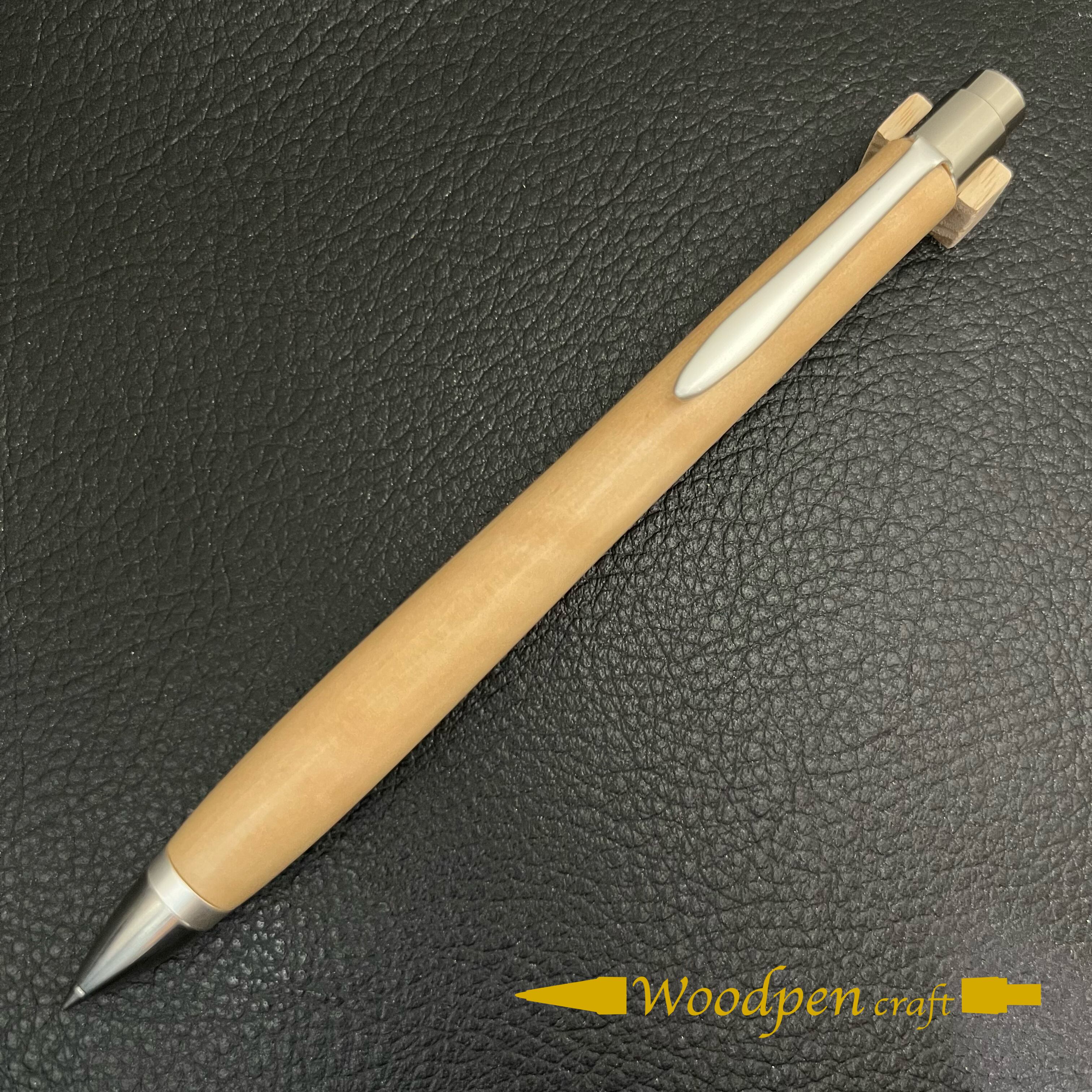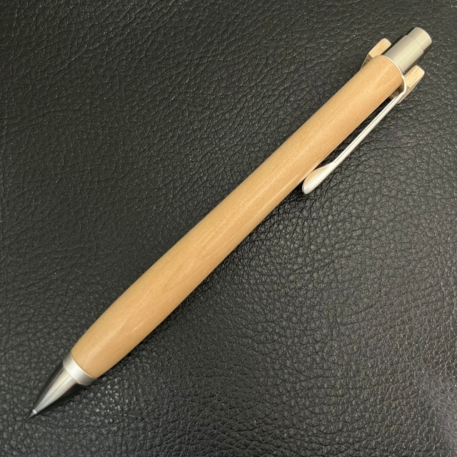 ボールペンのノックシステムは、ドイツ最高のクリックメカニズムを採用してあります。このメカニズムはユニークな機構のため、クリックしたときのカチカチ音が静かで、どんな場所でも気兼ねなく使うことができます。滑らかに動くこのプッシュ感覚を一度味わうと他には戻れなくなってしまうほどの魅力があります。 100分の1単位の加工精度で削り出されたペン先は、軸ブレも全くありません。