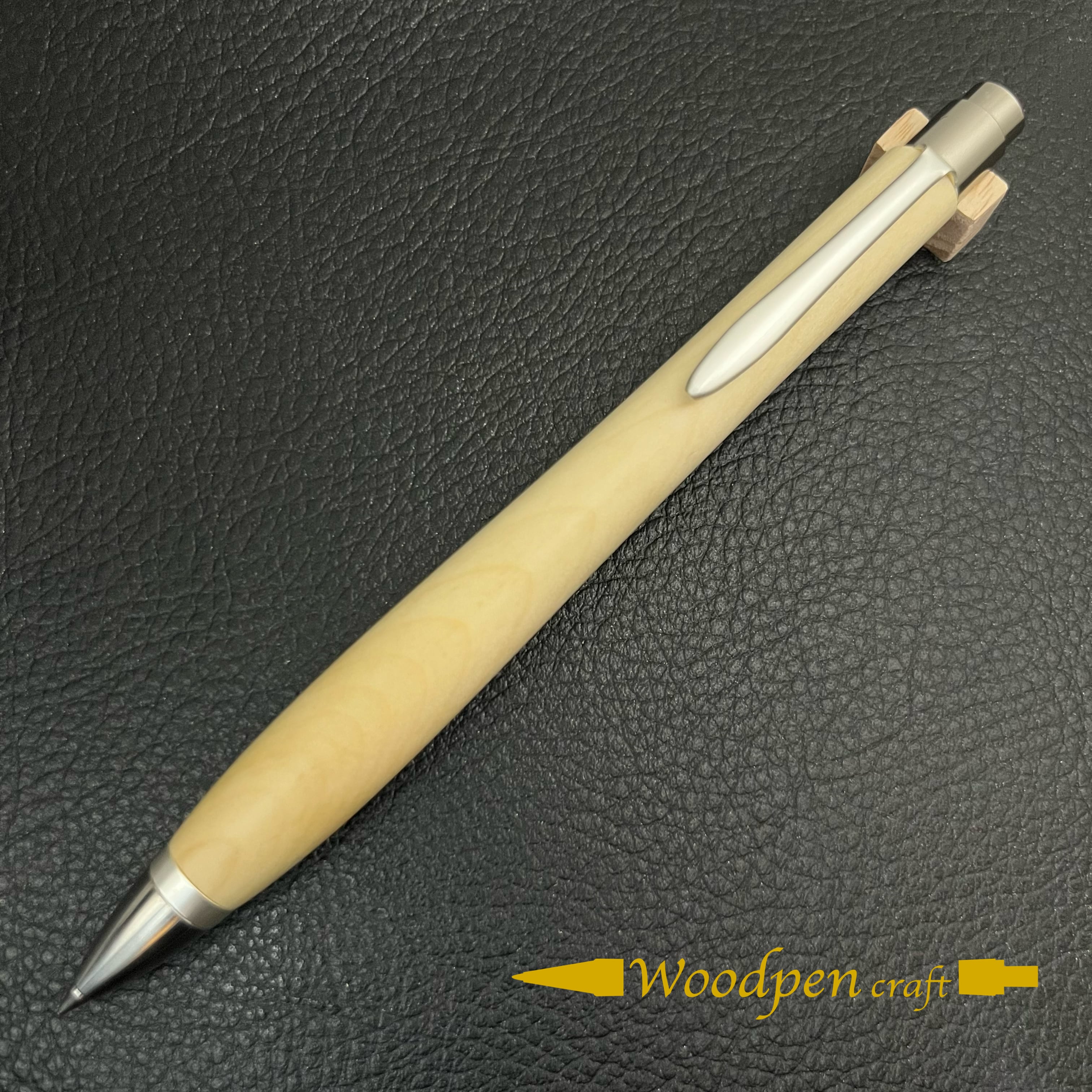 ボールペンのノックシステムは、ドイツ最高のクリックメカニズムを採用してあります。このメカニズムはユニークな機構のため、クリックしたときのカチカチ音が静かで、どんな場所でも気兼ねなく使うことができます。滑らかに動くこのプッシュ感覚を一度味わうと他には戻れなくなってしまうほどの魅力があります。 100分の1単位の加工精度で削り出されたペン先は、軸ブレも全くありません。