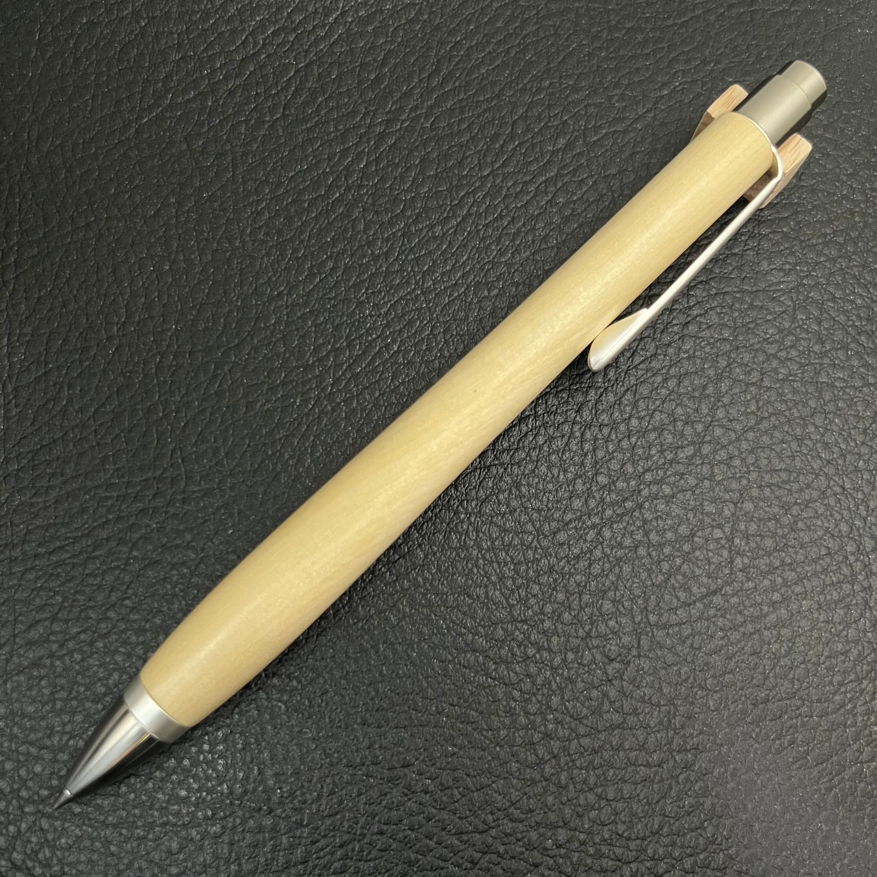 ボールペンのノックシステムは、ドイツ最高のクリックメカニズムを採用してあります。このメカニズムはユニークな機構のため、クリックしたときのカチカチ音が静かで、どんな場所でも気兼ねなく使うことができます。滑らかに動くこのプッシュ感覚を一度味わうと他には戻れなくなってしまうほどの魅力があります。 100分の1単位の加工精度で削り出されたペン先は、軸ブレも全くありません。