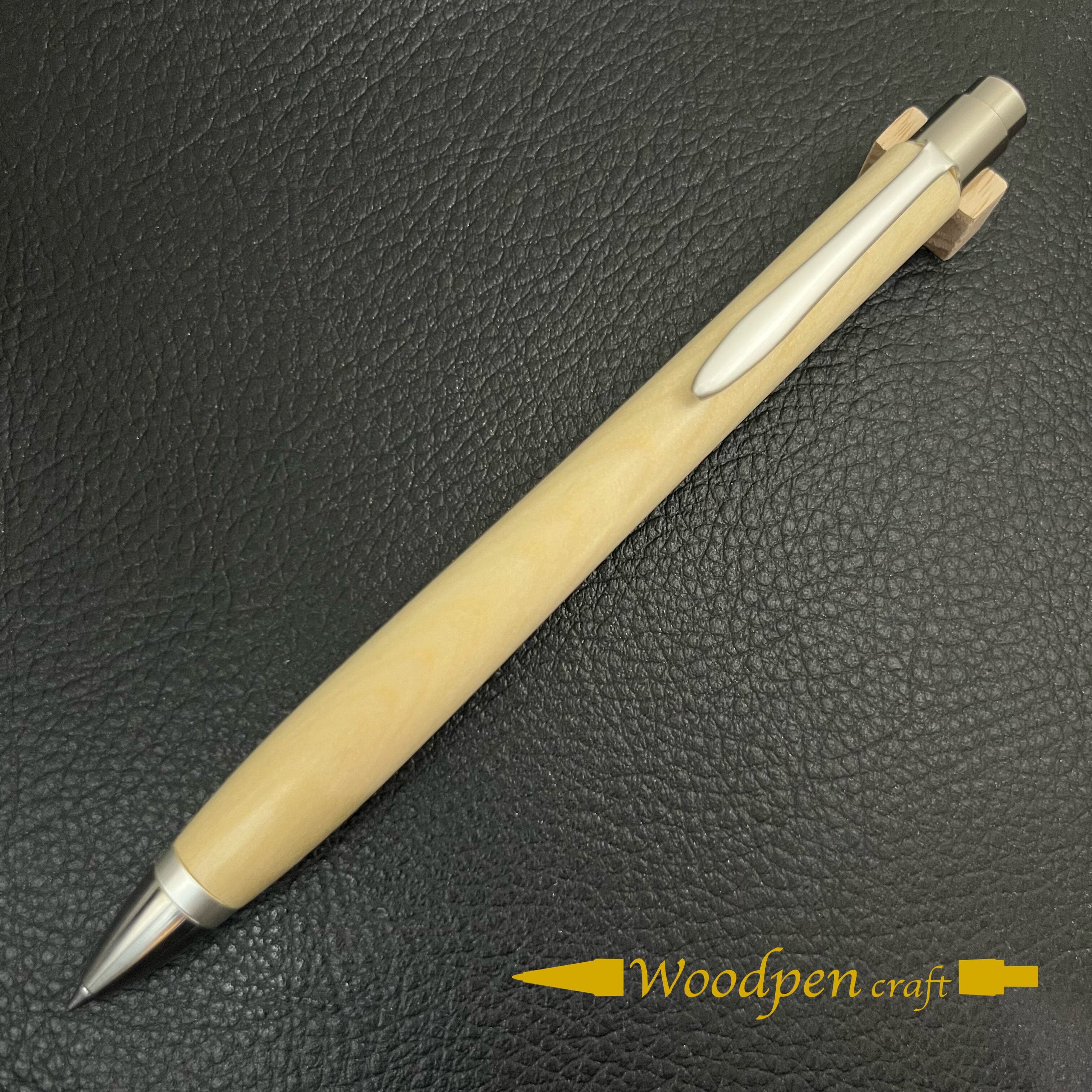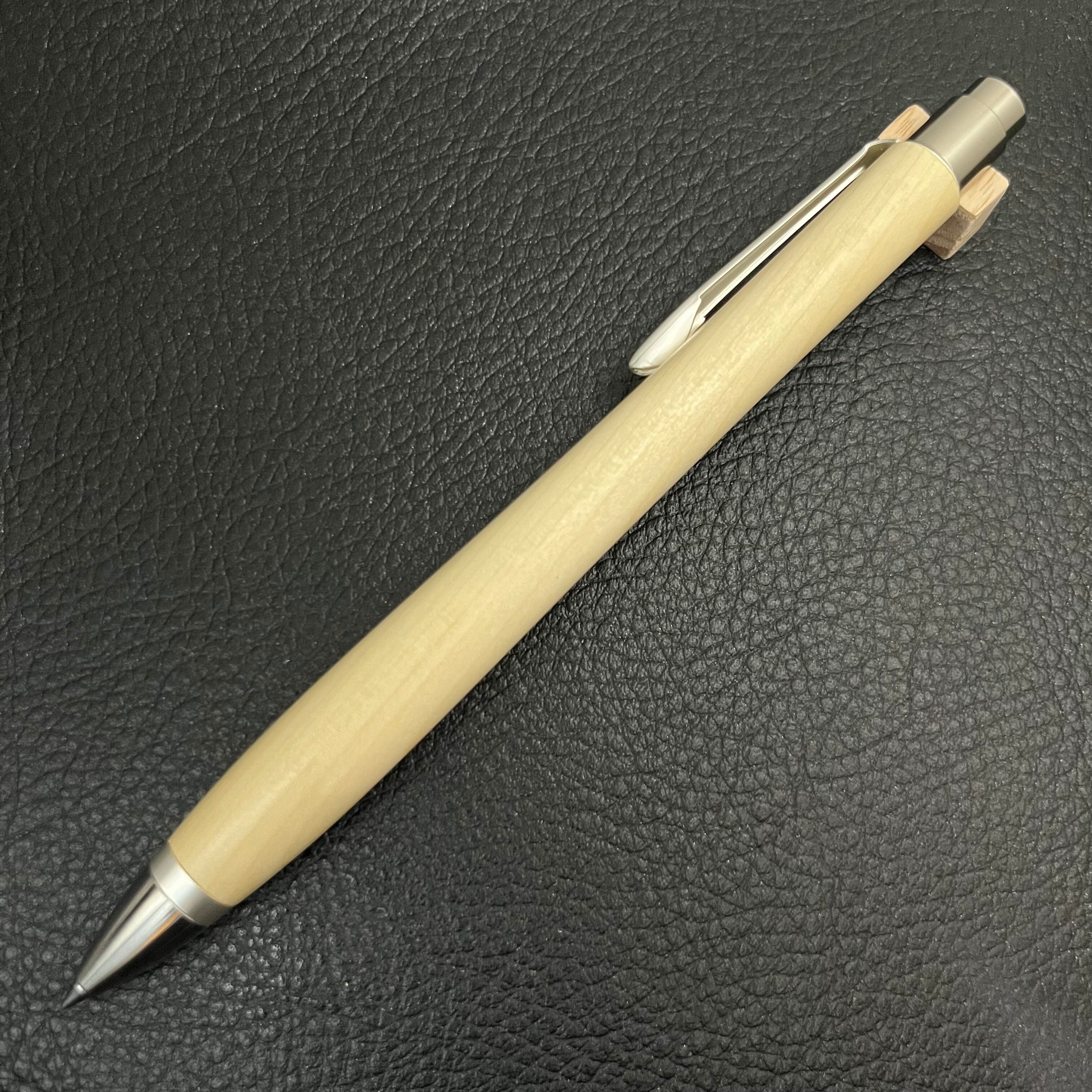 ボールペンのノックシステムは、ドイツ最高のクリックメカニズムを採用してあります。このメカニズムはユニークな機構のため、クリックしたときのカチカチ音が静かで、どんな場所でも気兼ねなく使うことができます。滑らかに動くこのプッシュ感覚を一度味わうと他には戻れなくなってしまうほどの魅力があります。 100分の1単位の加工精度で削り出されたペン先は、軸ブレも全くありません。