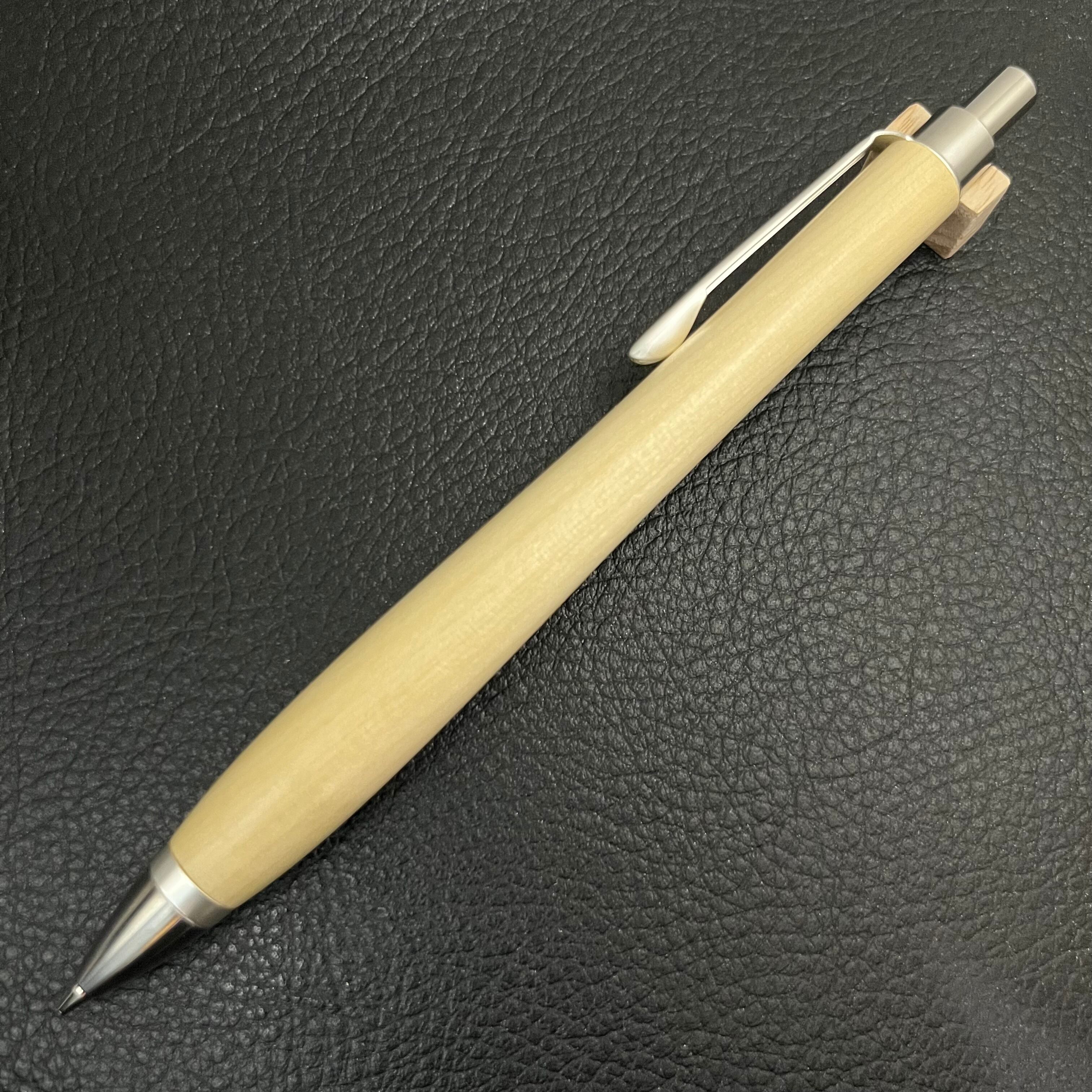 ペンシルは軸ブレが起こりにくい固定式口金を採用し、木の表情を最大限に楽しめる木軸の長さと、書き心地にこだわったバランスで金具を設計してあります。