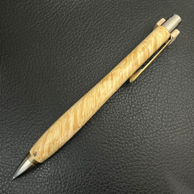 ボールペンのノックシステムは、ドイツ最高のクリックメカニズムを採用してあります。このメカニズムはユニークな機構のため、クリックしたときのカチカチ音が静かで、どんな場所でも気兼ねなく使うことができます。滑らかに動くこのプッシュ感覚を一度味わうと他には戻れなくなってしまうほどの魅力があります。 100分の1単位の加工精度で削り出されたペン先は、軸ブレも全くありません。