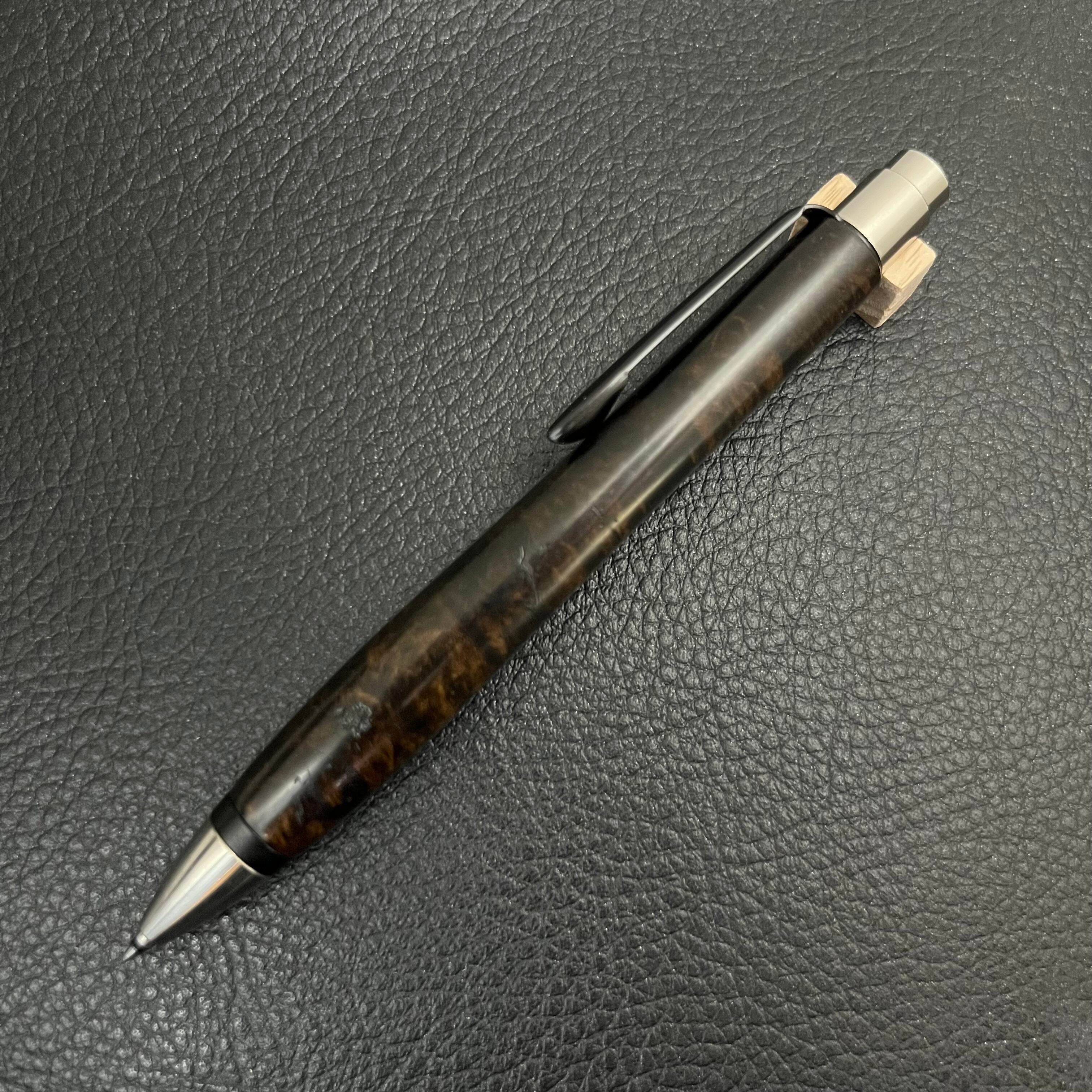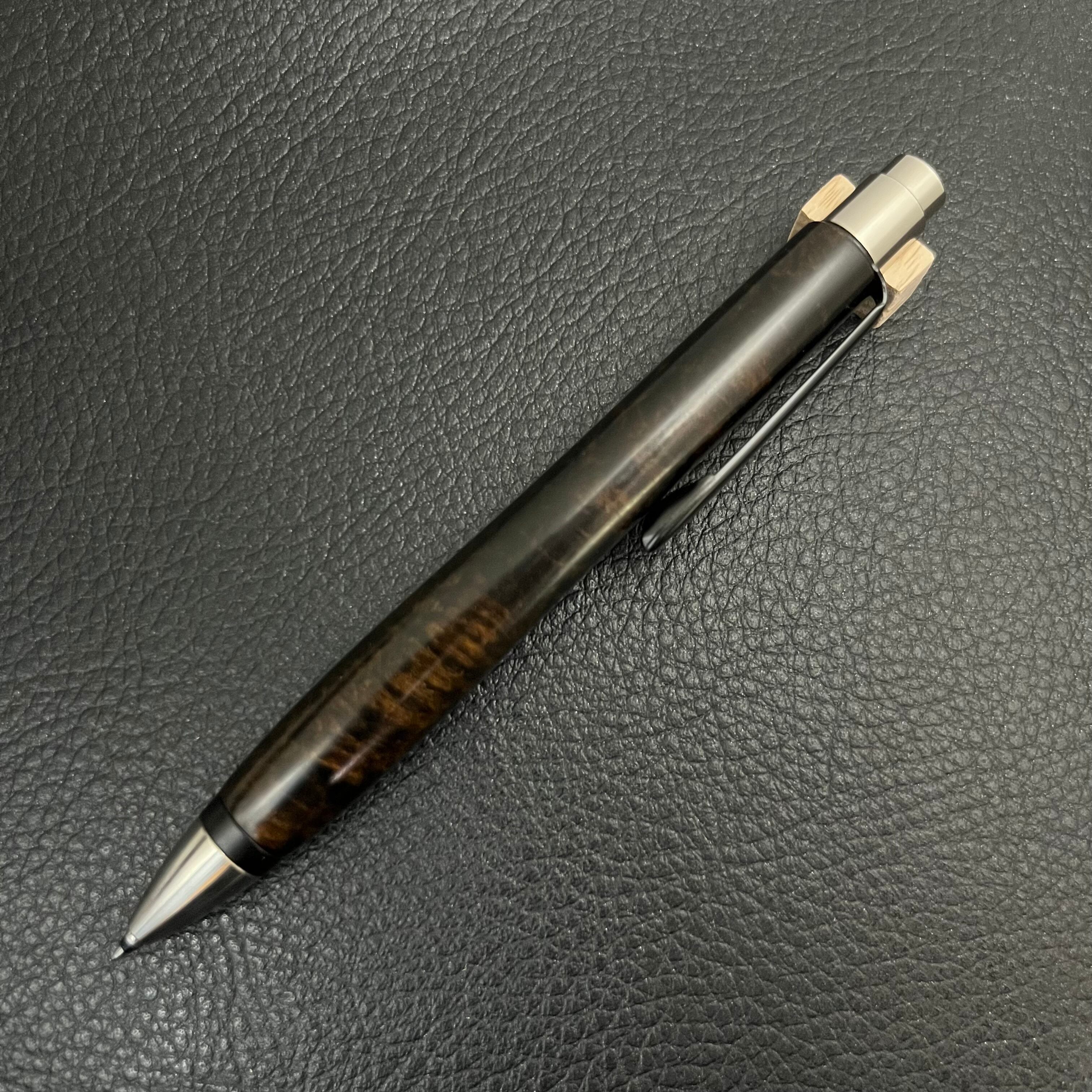 【樟(くす)瘤・摺り国産黒漆-107030615】ショートボールペン(M5手帳サイズ)