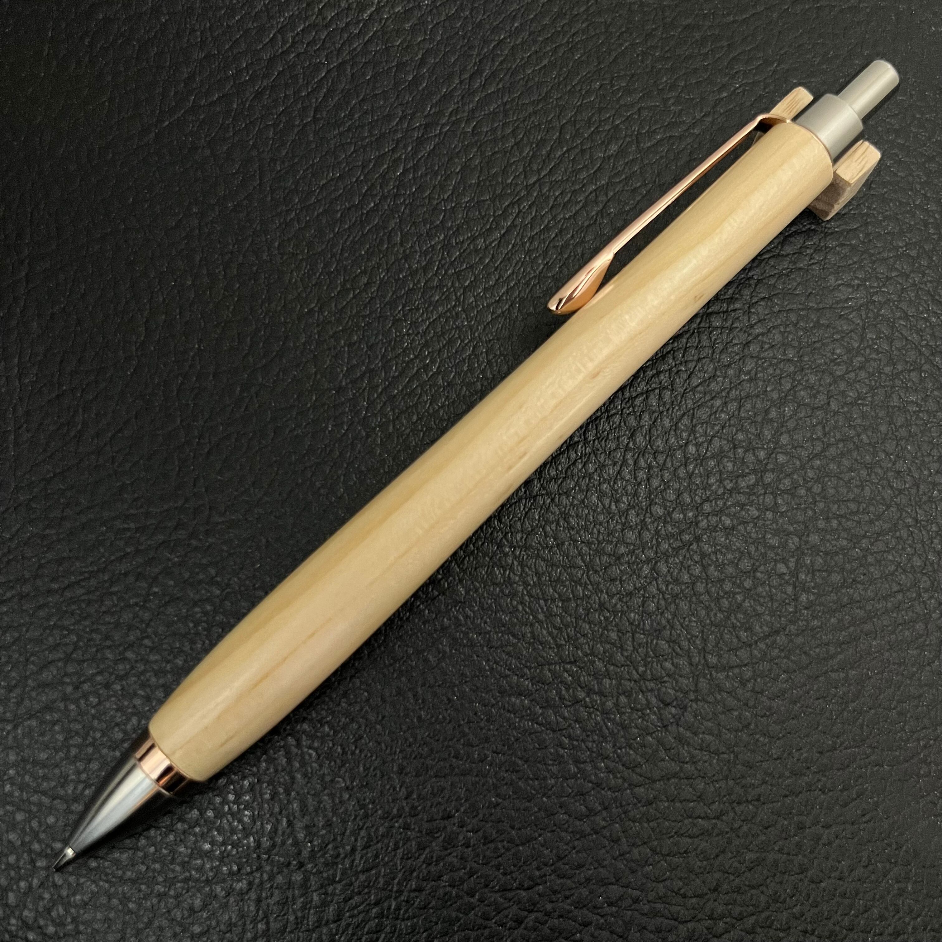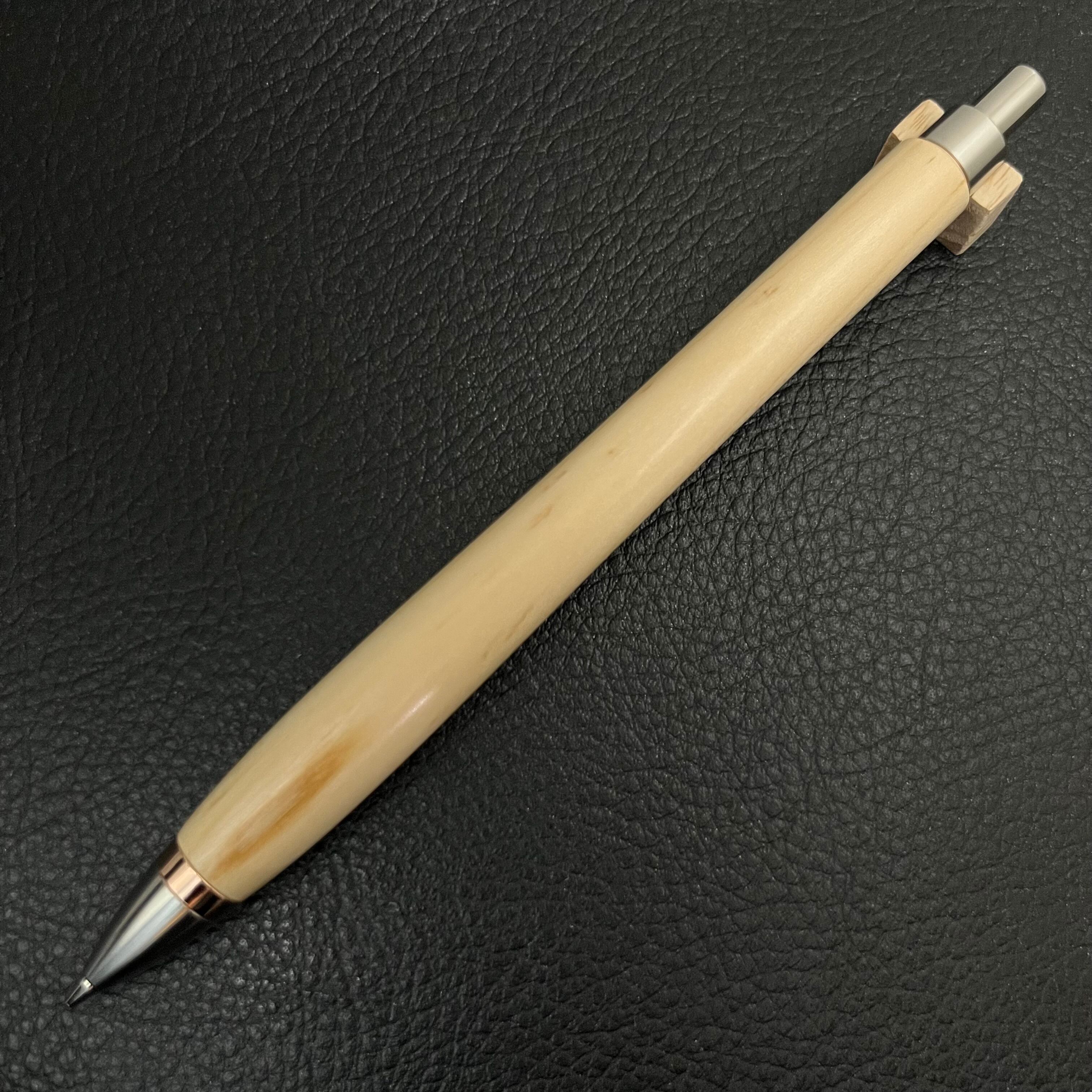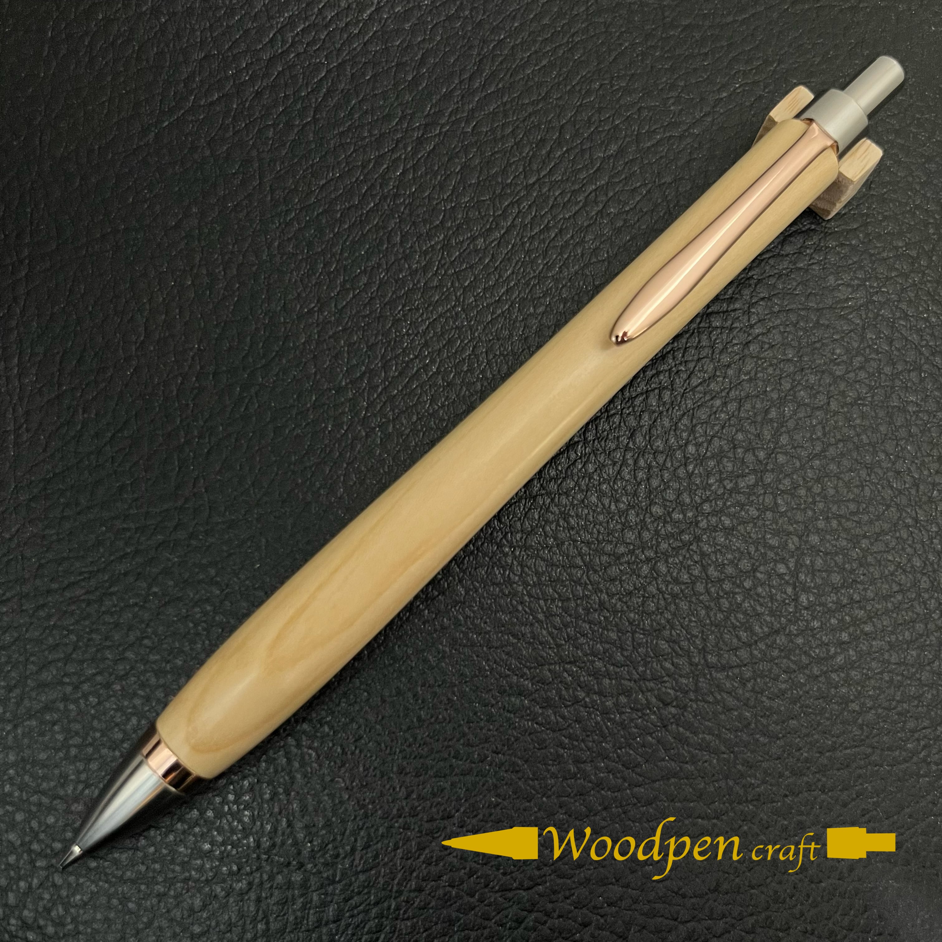 ペンシルは軸ブレが起こりにくい固定式口金を採用し、木の表情を最大限に楽しめる木軸の長さと、書き心地にこだわったバランスで金具を設計してあります。