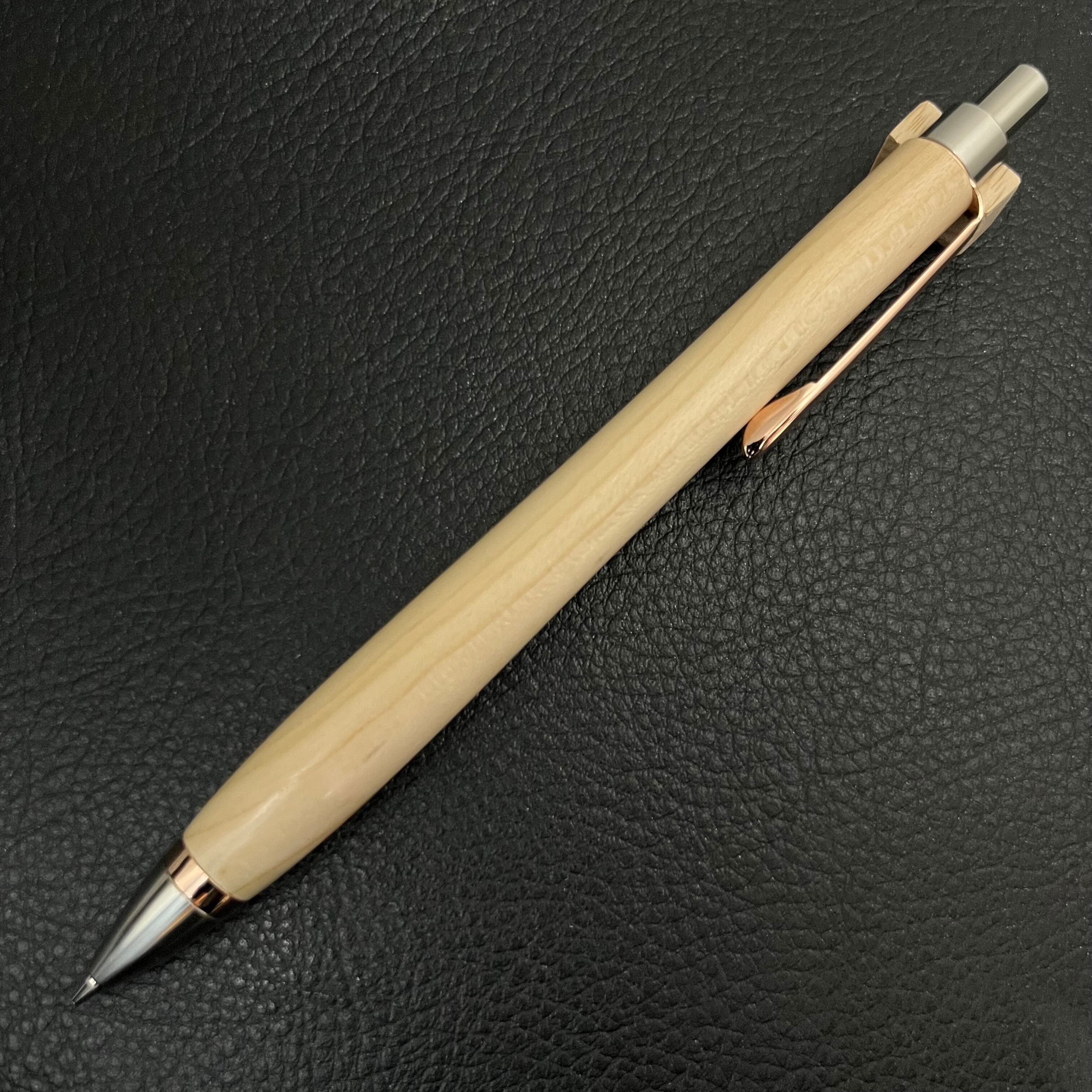 ペンシルは軸ブレが起こりにくい固定式口金を採用し、木の表情を最大限に楽しめる木軸の長さと、書き心地にこだわったバランスで金具を設計してあります。