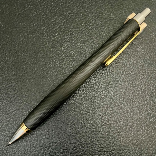 オリジナルペン金具は、大阪に在る金属精密加工会社の職人さんが100分の1㎜単位の加工精度で制作されています。口金・上スリーブ・ノックカバーは高級ステンレス削り出しです。