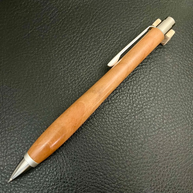 ボールペンのノックシステムは、ドイツ最高のクリックメカニズムを採用してあります。このメカニズムはユニークな機構のため、クリックしたときのカチカチ音が静かで、どんな場所でも気兼ねなく使うことができます。滑らかに動くこのプッシュ感覚を一度味わうと他には戻れなくなってしまうほどの魅力があります。 100分の1単位の加工精度で削り出されたペン先は、軸ブレも全くありません。