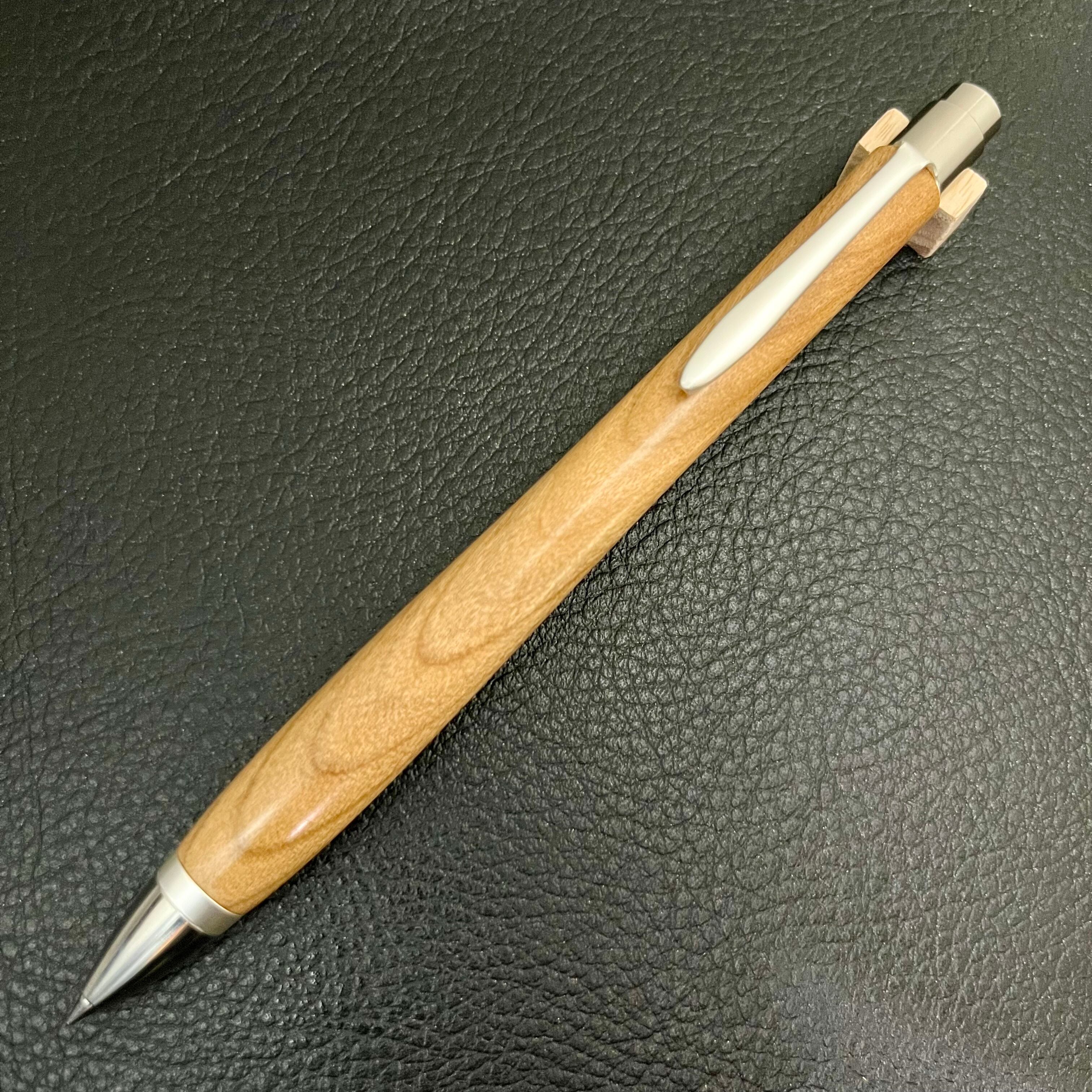 ボールペンのノックシステムは、ドイツ最高のクリックメカニズムを採用してあります。このメカニズムはユニークな機構のため、クリックしたときのカチカチ音が静かで、どんな場所でも気兼ねなく使うことができます。滑らかに動くこのプッシュ感覚を一度味わうと他には戻れなくなってしまうほどの魅力があります。 100分の1単位の加工精度で削り出されたペン先は、軸ブレも全くありません。