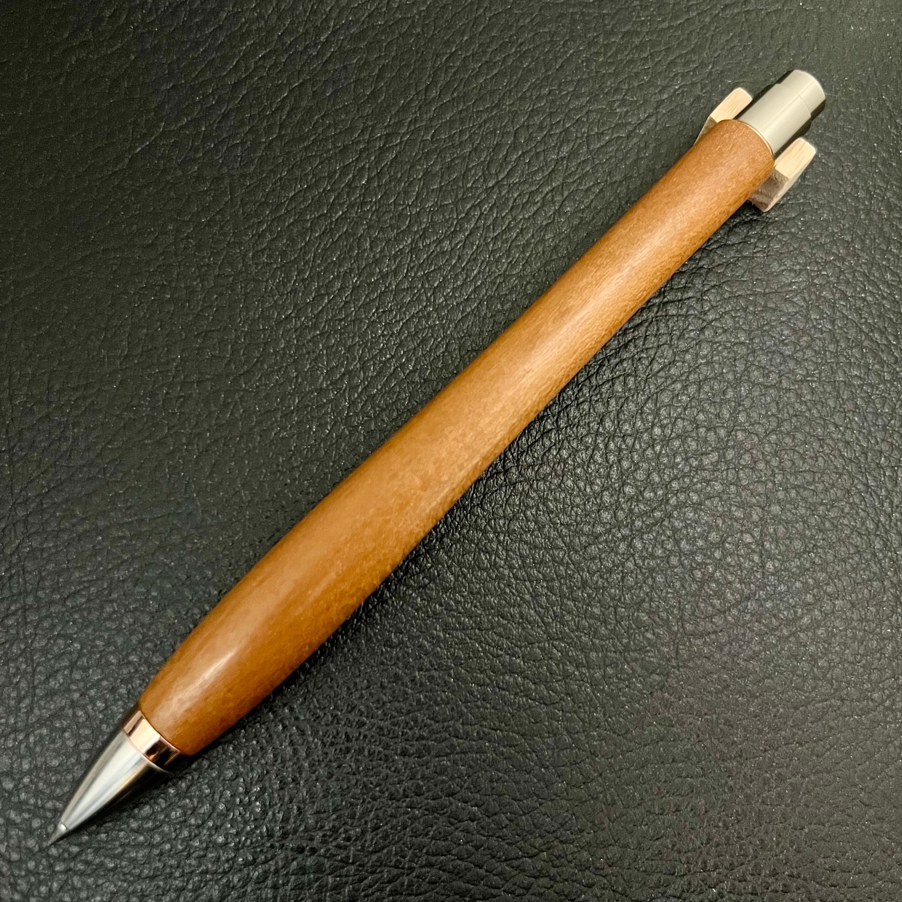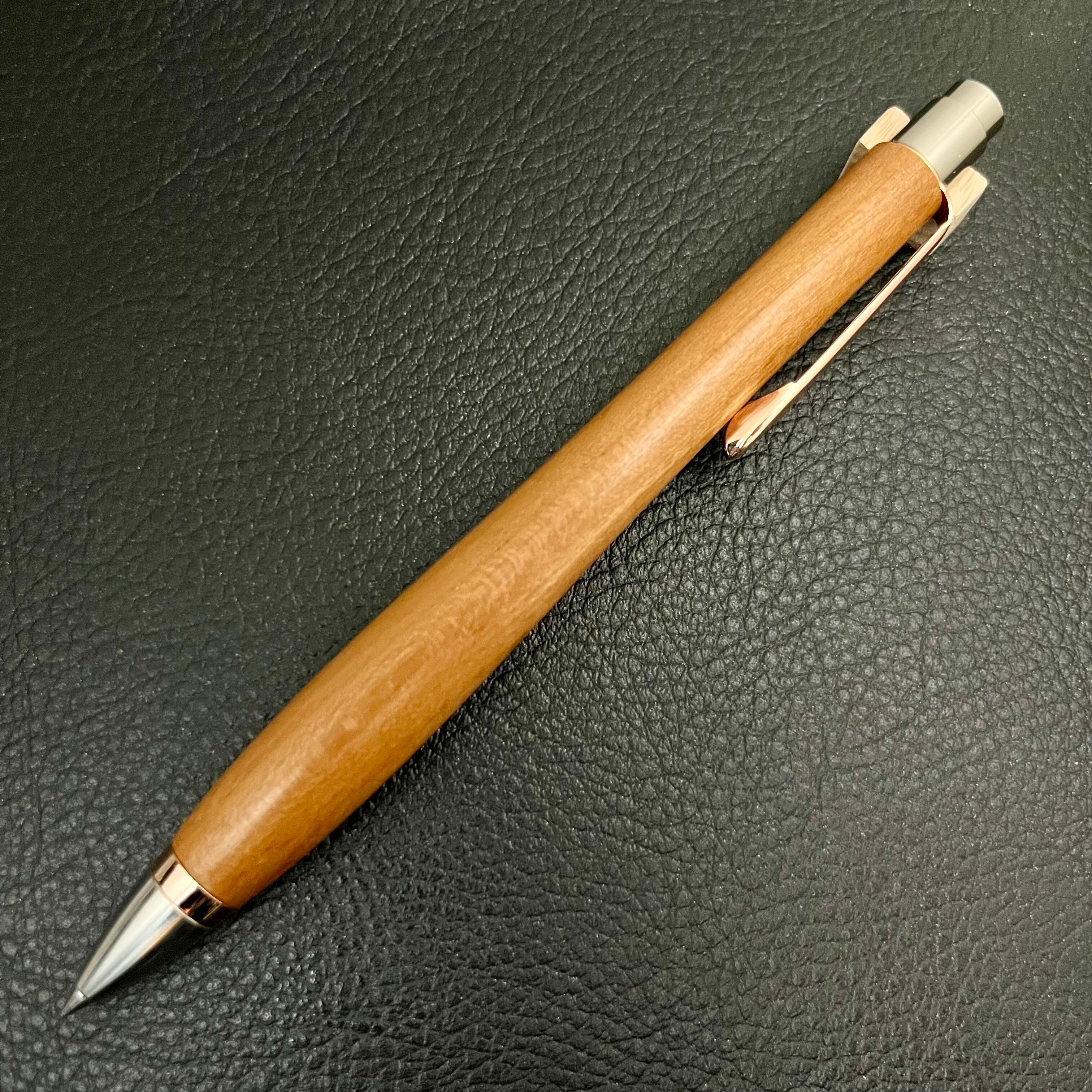 ボールペンのノックシステムは、ドイツ最高のクリックメカニズムを採用してあります。このメカニズムはユニークな機構のため、クリックしたときのカチカチ音が静かで、どんな場所でも気兼ねなく使うことができます。滑らかに動くこのプッシュ感覚を一度味わうと他には戻れなくなってしまうほどの魅力があります。 100分の1単位の加工精度で削り出されたペン先は、軸ブレも全くありません。