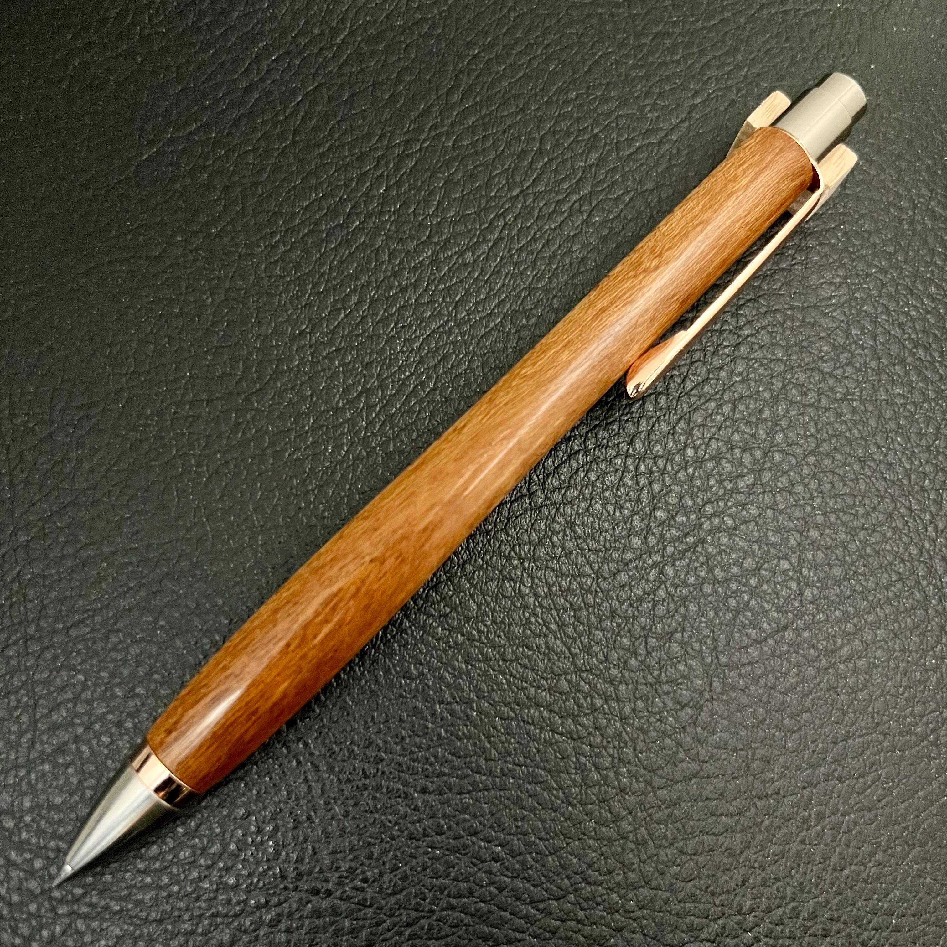 ボールペンのノックシステムは、ドイツ最高のクリックメカニズムを採用してあります。このメカニズムはユニークな機構のため、クリックしたときのカチカチ音が静かで、どんな場所でも気兼ねなく使うことができます。滑らかに動くこのプッシュ感覚を一度味わうと他には戻れなくなってしまうほどの魅力があります。 100分の1単位の加工精度で削り出されたペン先は、軸ブレも全くありません。