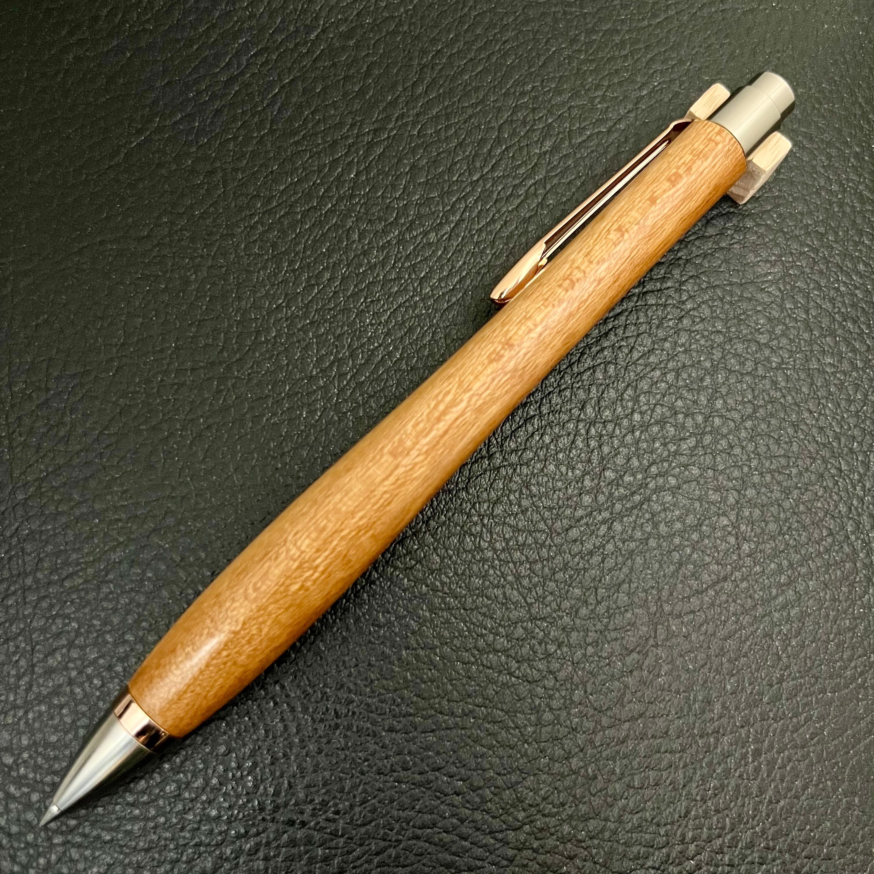 ボールペンのノックシステムは、ドイツ最高のクリックメカニズムを採用してあります。このメカニズムはユニークな機構のため、クリックしたときのカチカチ音が静かで、どんな場所でも気兼ねなく使うことができます。滑らかに動くこのプッシュ感覚を一度味わうと他には戻れなくなってしまうほどの魅力があります。 100分の1単位の加工精度で削り出されたペン先は、軸ブレも全くありません。