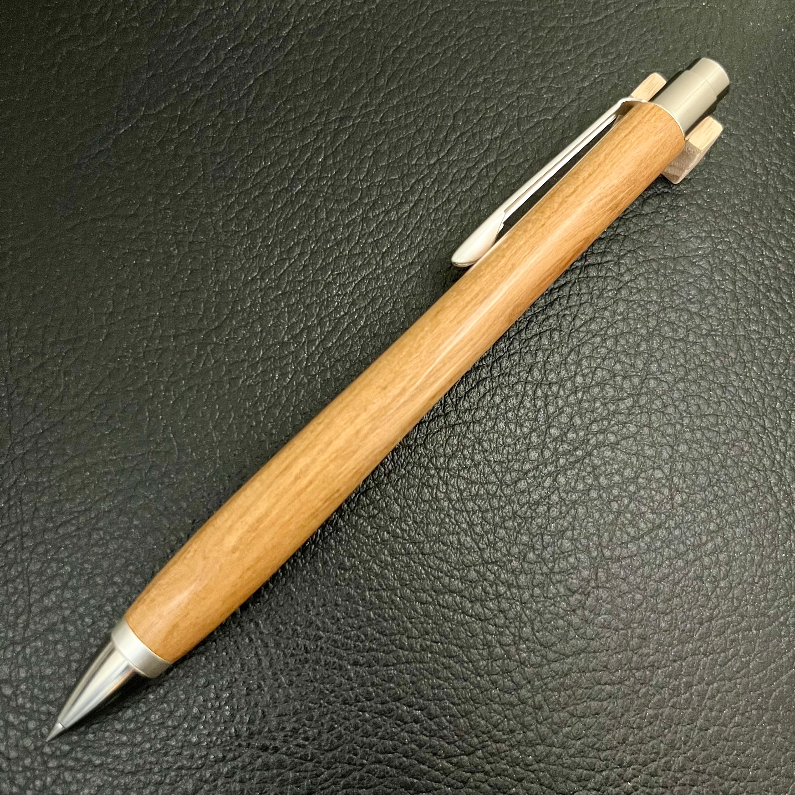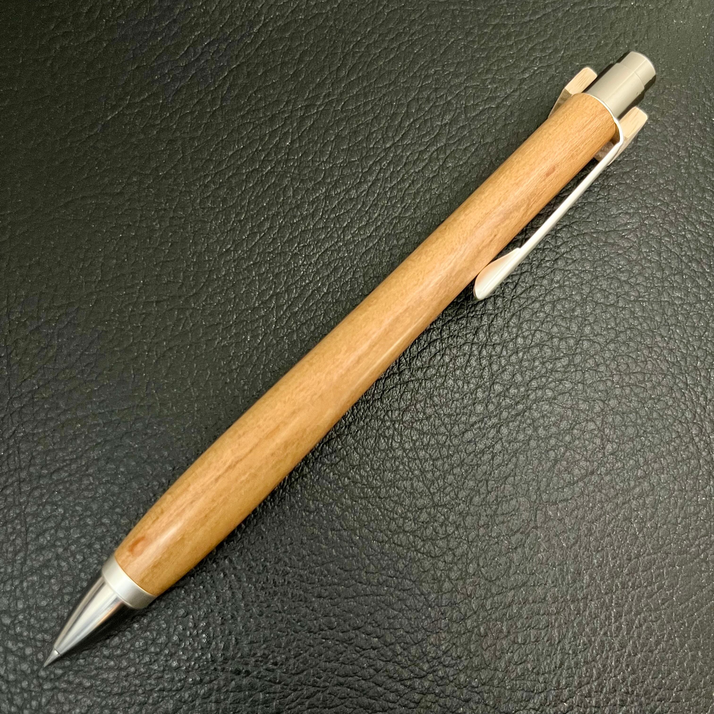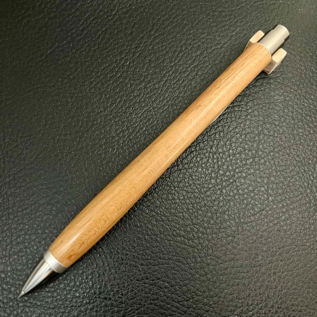 ボールペンのノックシステムは、ドイツ最高のクリックメカニズムを採用してあります。このメカニズムはユニークな機構のため、クリックしたときのカチカチ音が静かで、どんな場所でも気兼ねなく使うことができます。滑らかに動くこのプッシュ感覚を一度味わうと他には戻れなくなってしまうほどの魅力があります。 100分の1単位の加工精度で削り出されたペン先は、軸ブレも全くありません。