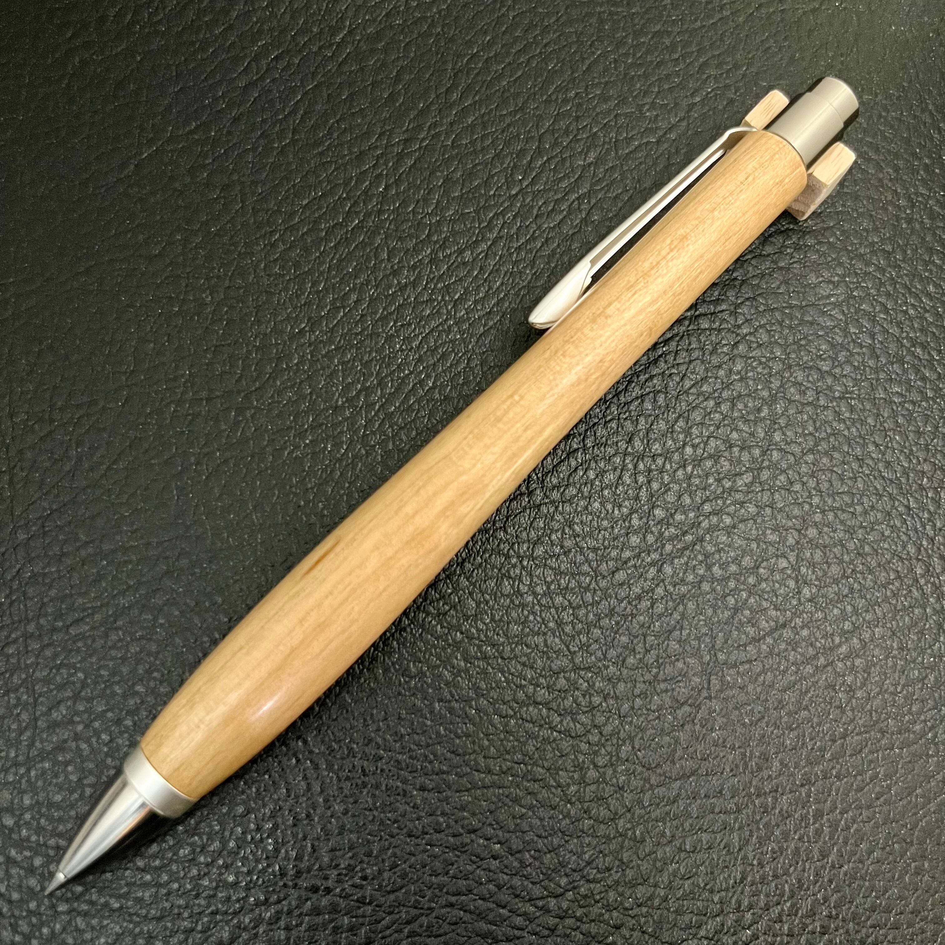 ボールペンのノックシステムは、ドイツ最高のクリックメカニズムを採用してあります。このメカニズムはユニークな機構のため、クリックしたときのカチカチ音が静かで、どんな場所でも気兼ねなく使うことができます。滑らかに動くこのプッシュ感覚を一度味わうと他には戻れなくなってしまうほどの魅力があります。 100分の1単位の加工精度で削り出されたペン先は、軸ブレも全くありません。