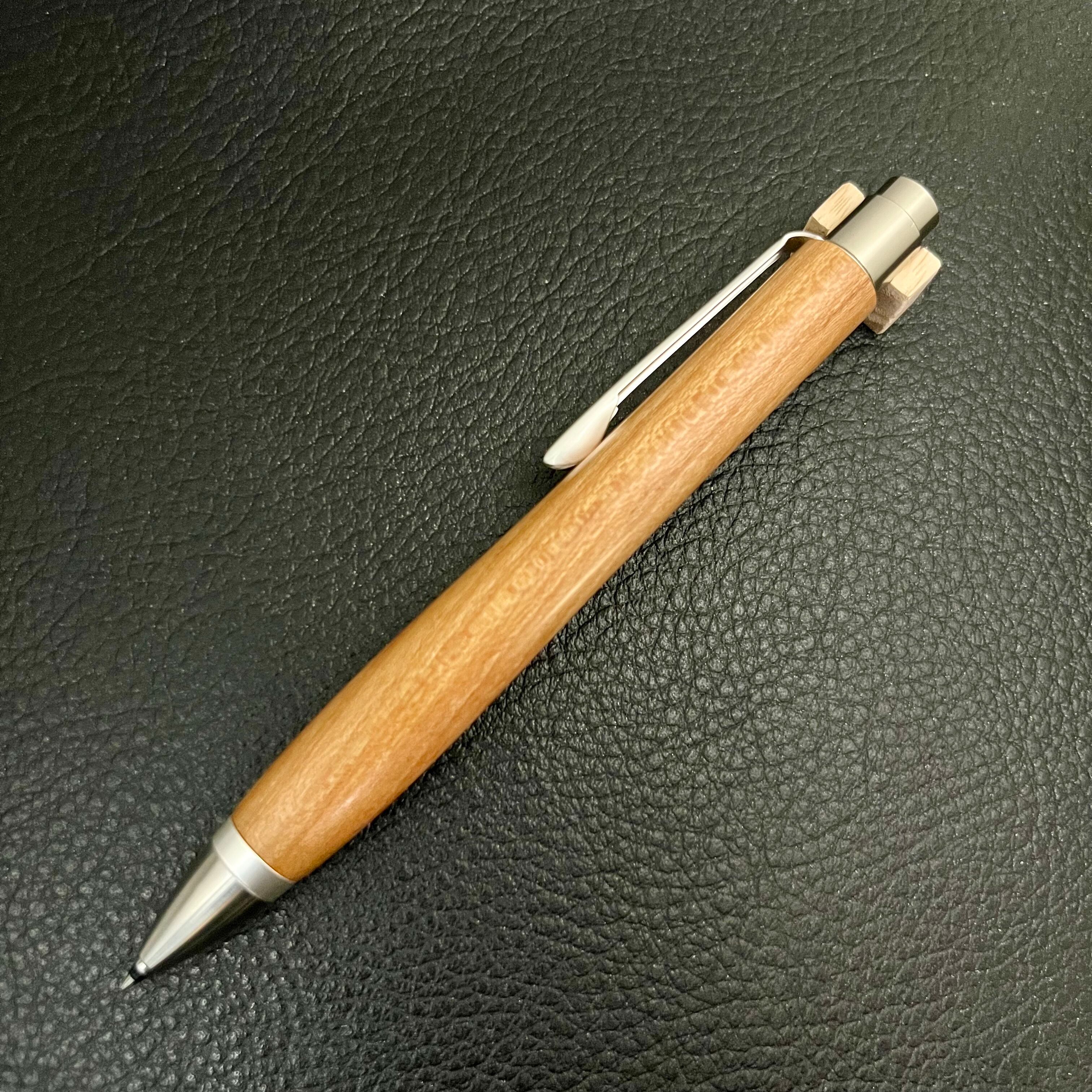 ボールペンのノックシステムは、ドイツ最高のクリックメカニズムを採用してあります。このメカニズムはユニークな機構のため、クリックしたときのカチカチ音が静かで、どんな場所でも気兼ねなく使うことができます。滑らかに動くこのプッシュ感覚を一度味わうと他には戻れなくなってしまうほどの魅力があります。 高級ステンレス材を100分の1単位の加工精度で削り出された口金により芯ブレも全くありません。内部のアルミを使ったリフィルアダプターもオリジナルです。
