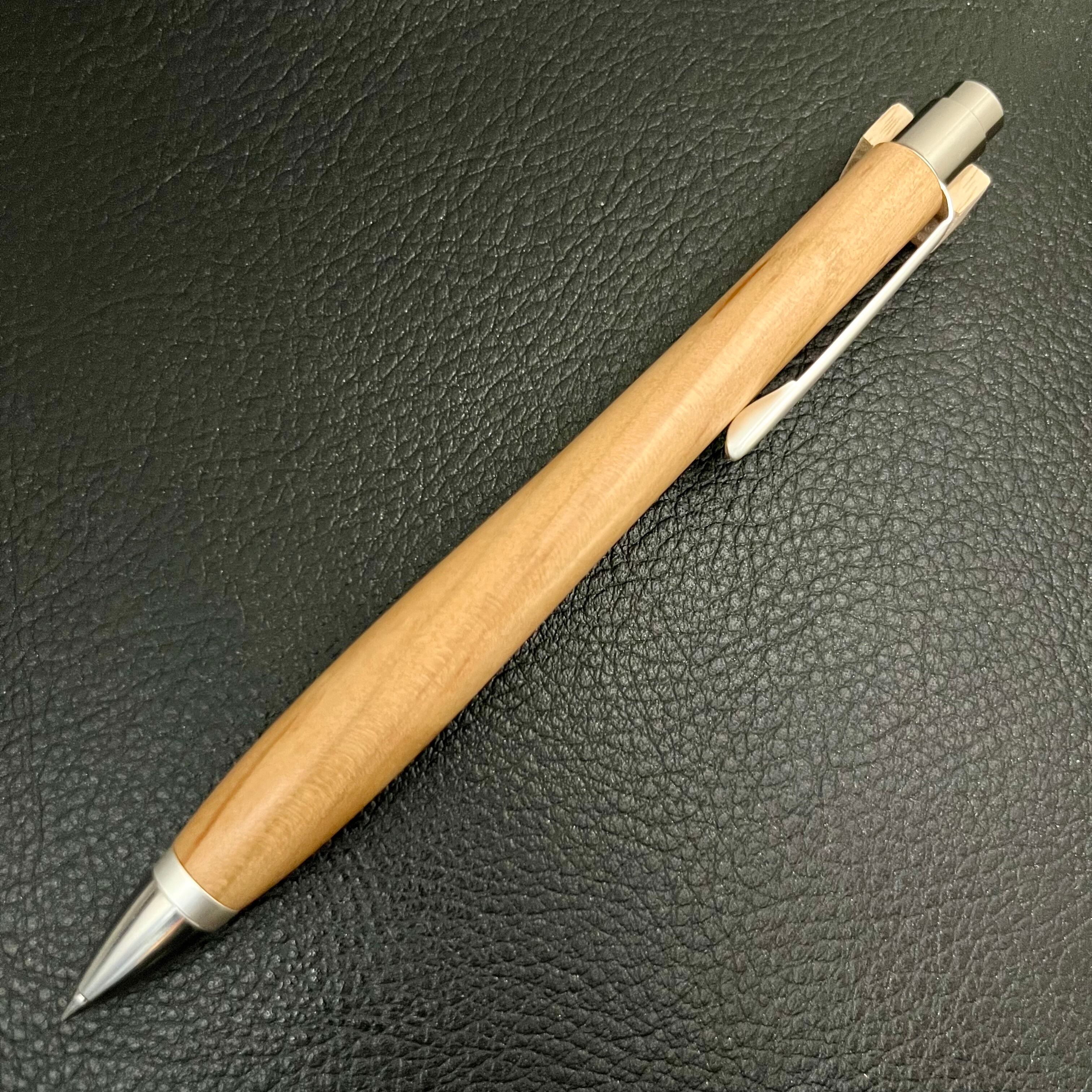 ボールペンのノックシステムは、ドイツ最高のクリックメカニズムを採用してあります。このメカニズムはユニークな機構のため、クリックしたときのカチカチ音が静かで、どんな場所でも気兼ねなく使うことができます。滑らかに動くこのプッシュ感覚を一度味わうと他には戻れなくなってしまうほどの魅力があります。 100分の1単位の加工精度で削り出されたペン先は、軸ブレも全くありません。