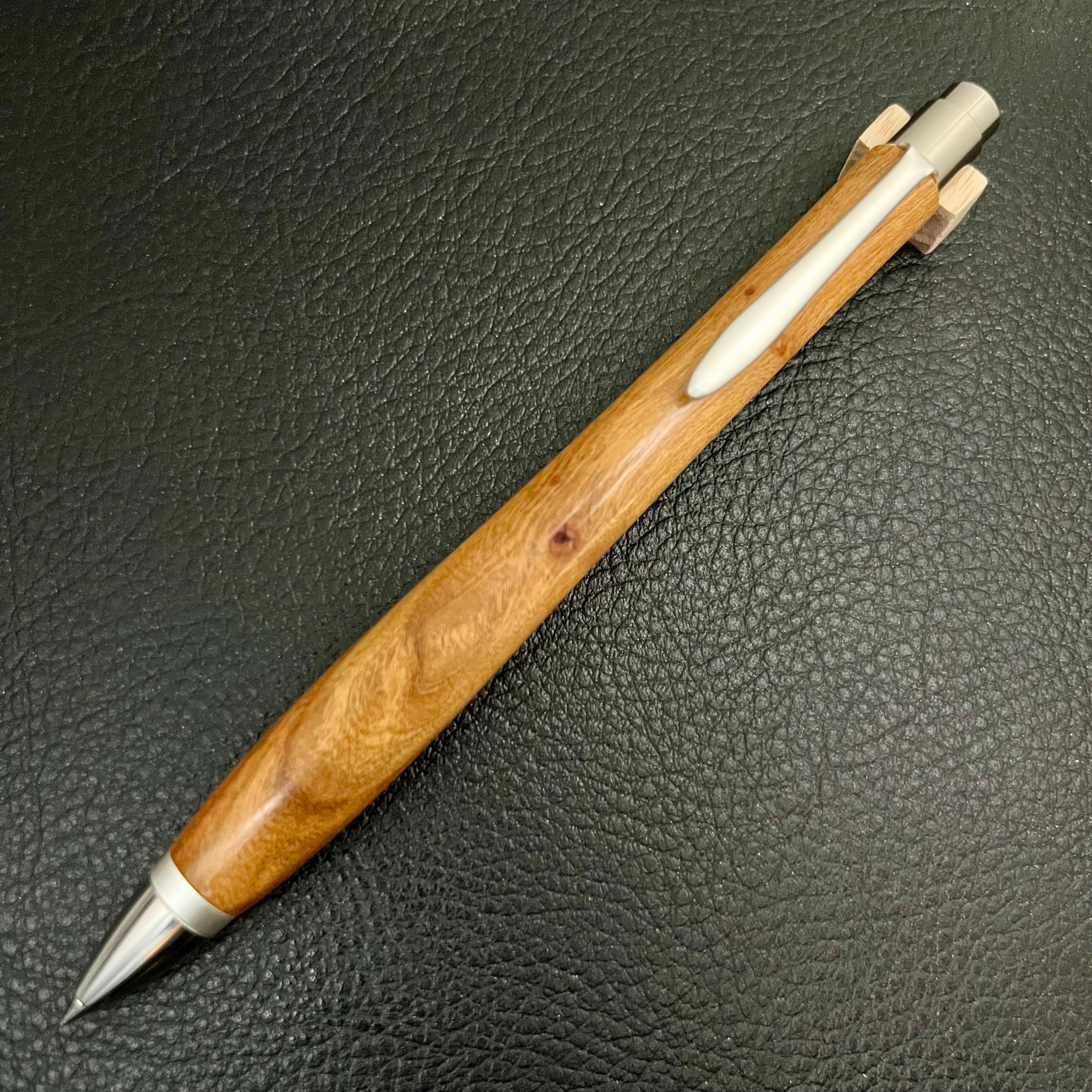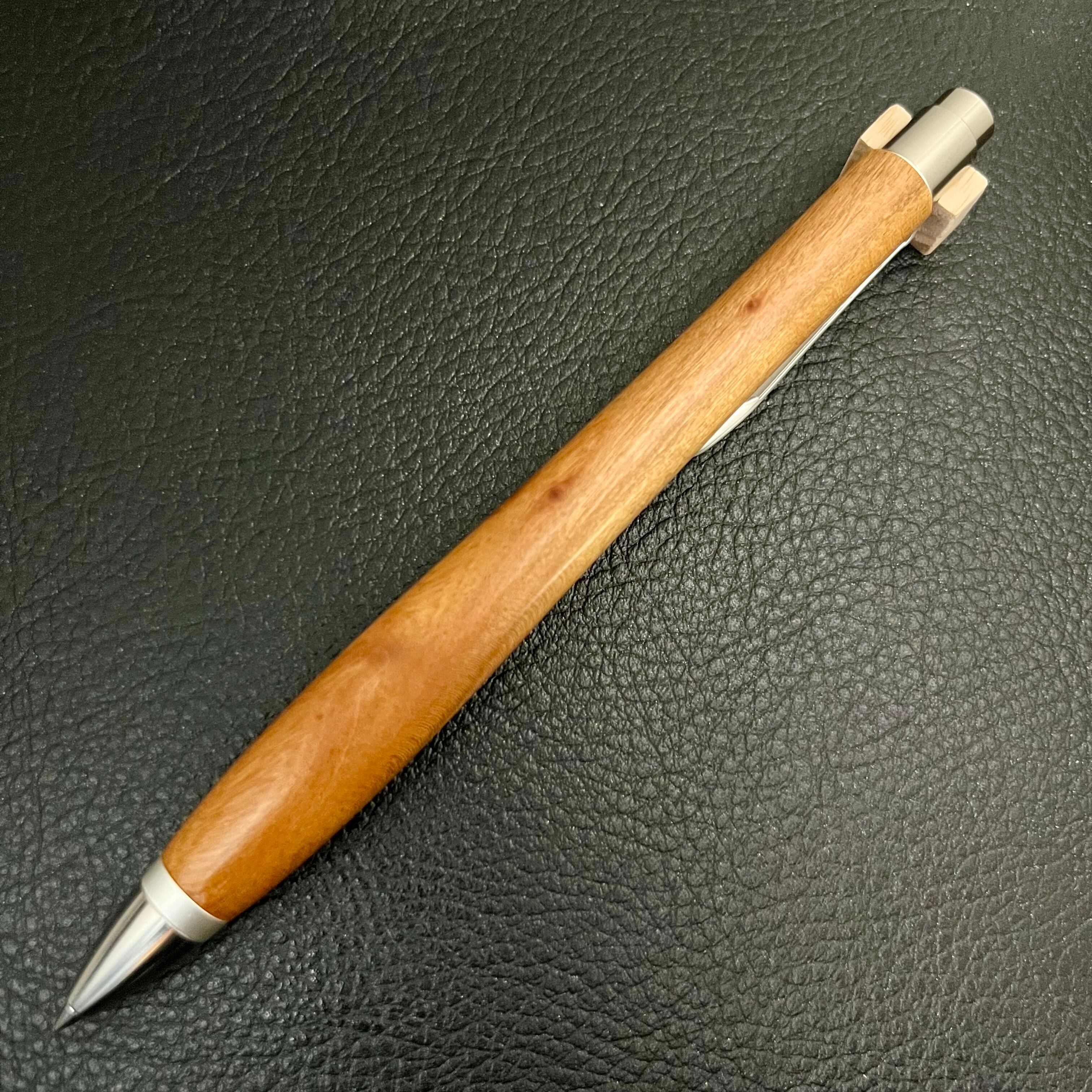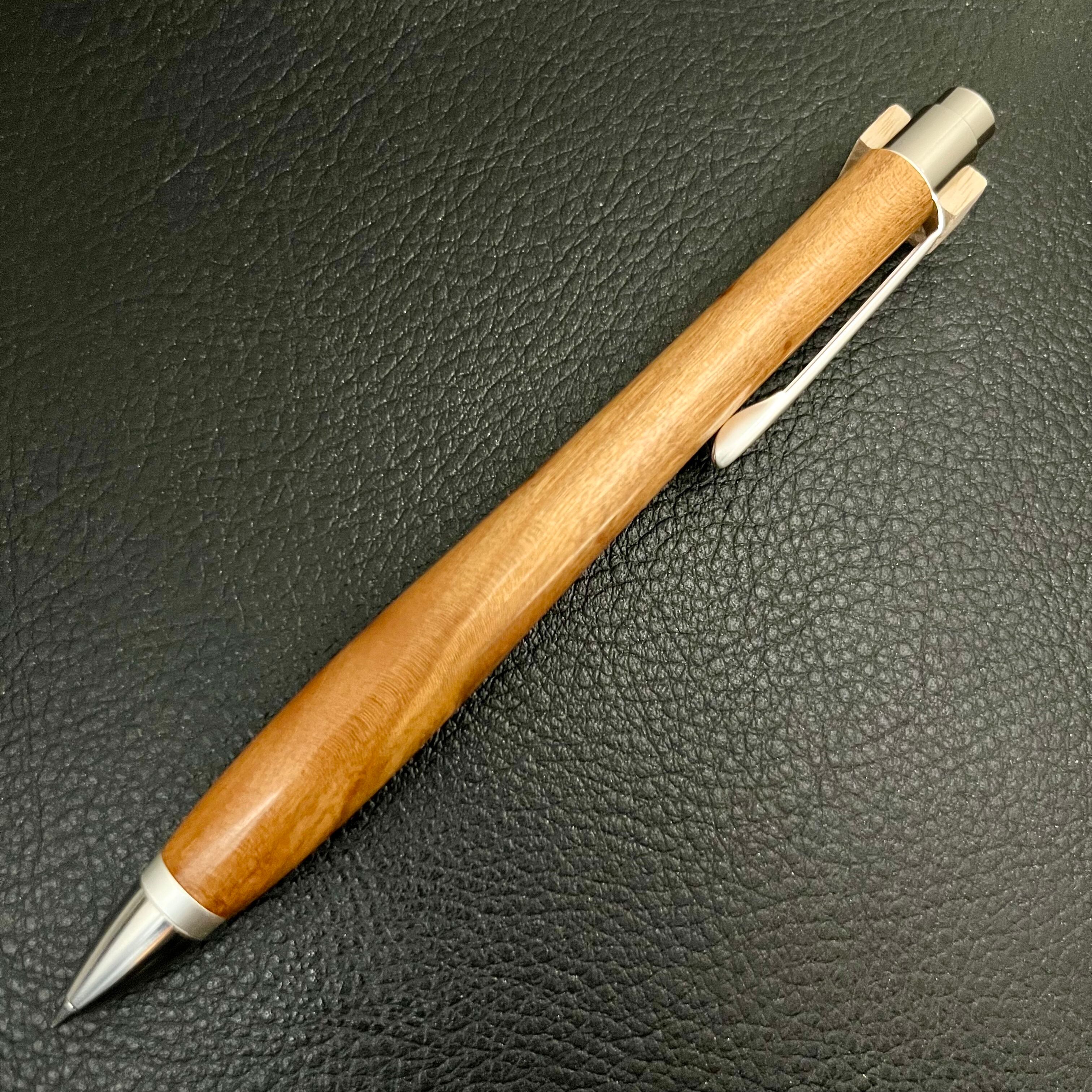 ボールペンのノックシステムは、ドイツ最高のクリックメカニズムを採用してあります。このメカニズムはユニークな機構のため、クリックしたときのカチカチ音が静かで、どんな場所でも気兼ねなく使うことができます。滑らかに動くこのプッシュ感覚を一度味わうと他には戻れなくなってしまうほどの魅力があります。 100分の1単位の加工精度で削り出されたペン先は、軸ブレも全くありません。