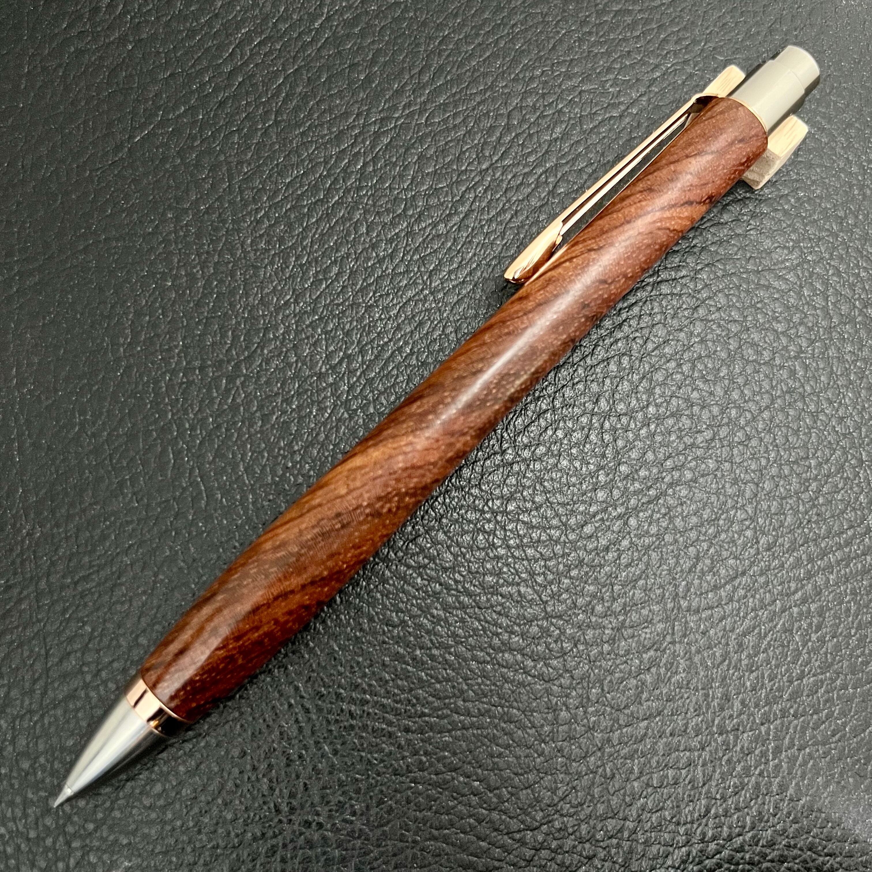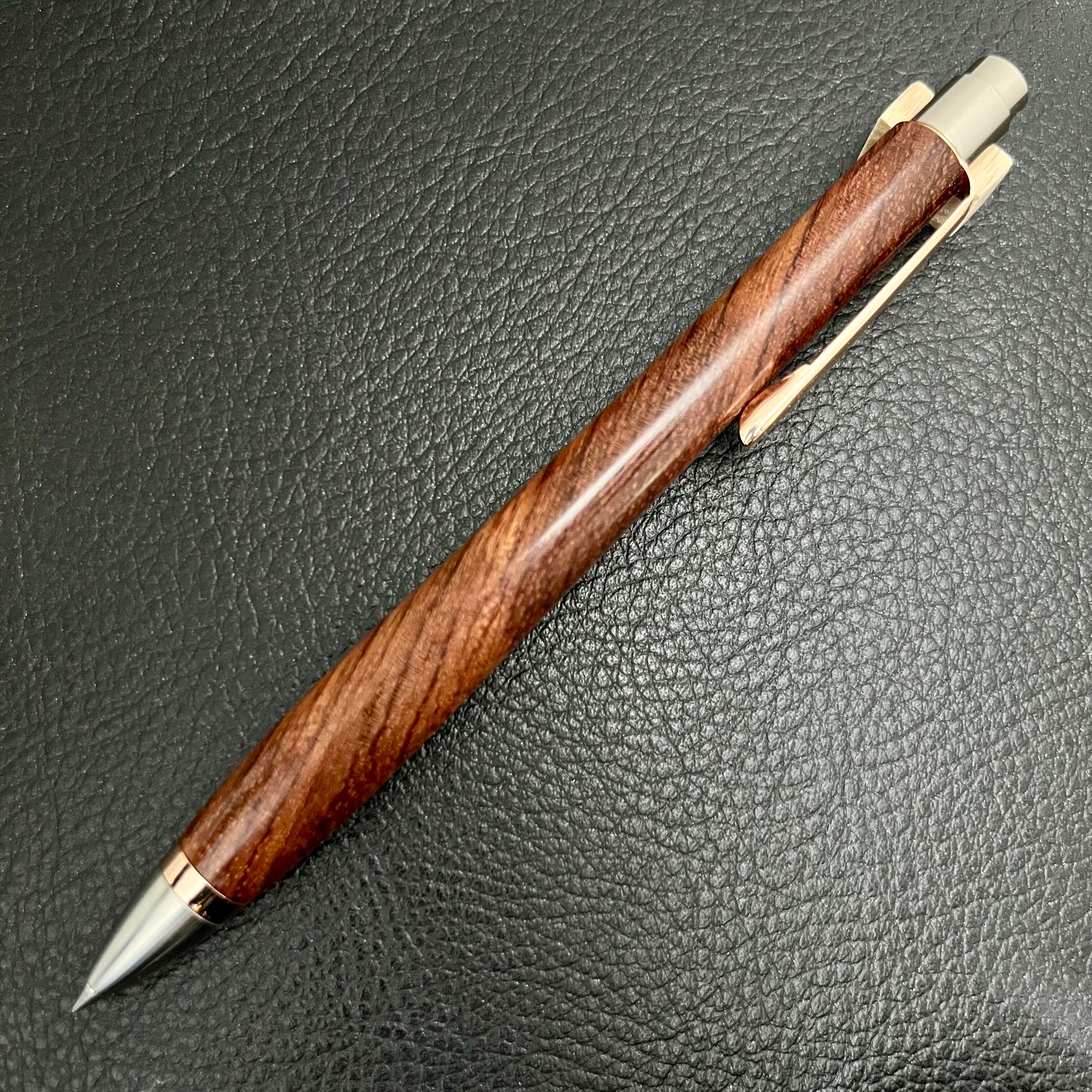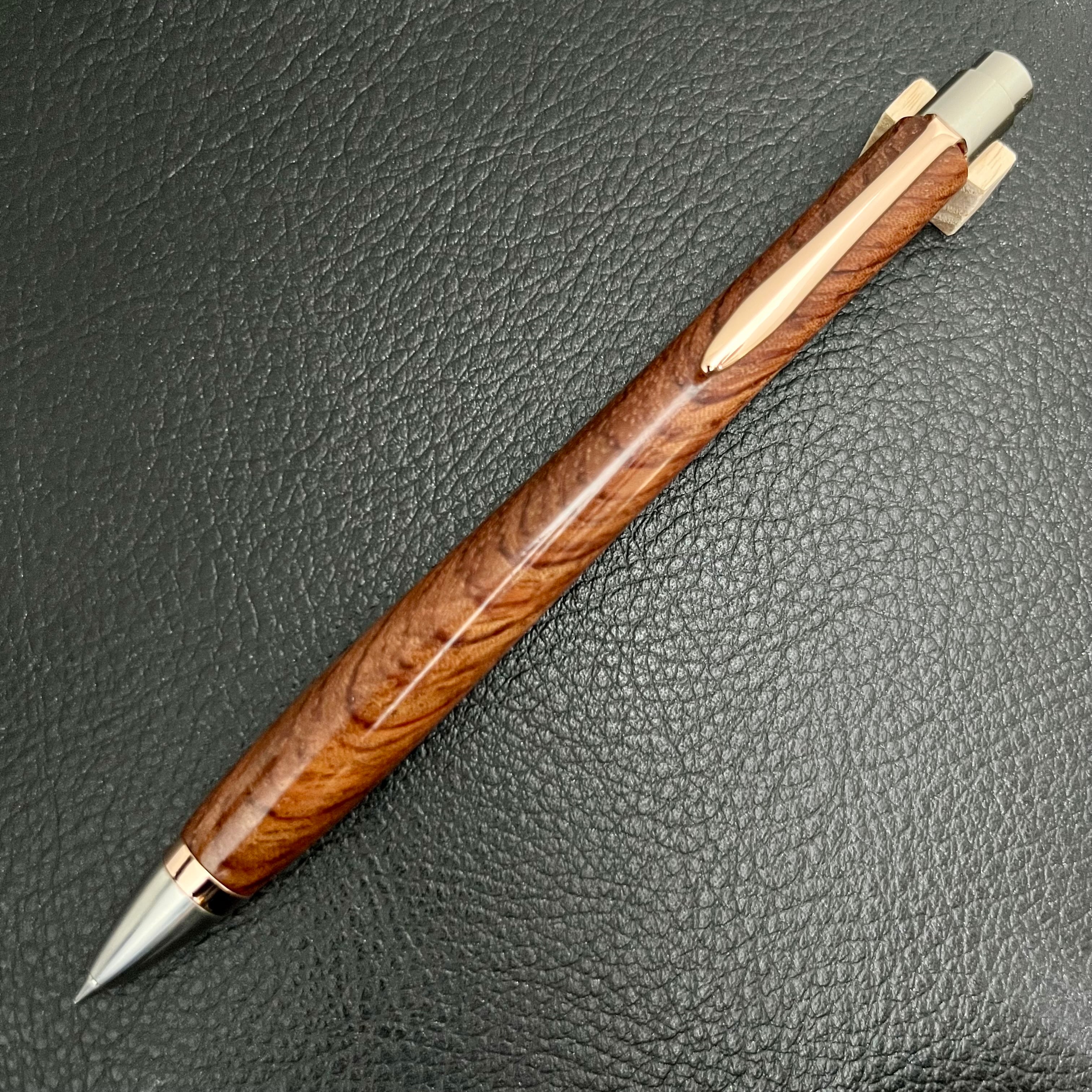 ボールペンのノックシステムは、ドイツ最高のクリックメカニズムを採用してあります。このメカニズムはユニークな機構のため、クリックしたときのカチカチ音が静かで、どんな場所でも気兼ねなく使うことができます。滑らかに動くこのプッシュ感覚を一度味わうと他には戻れなくなってしまうほどの魅力があります。 100分の1単位の加工精度で削り出されたペン先は、軸ブレも全くありません。