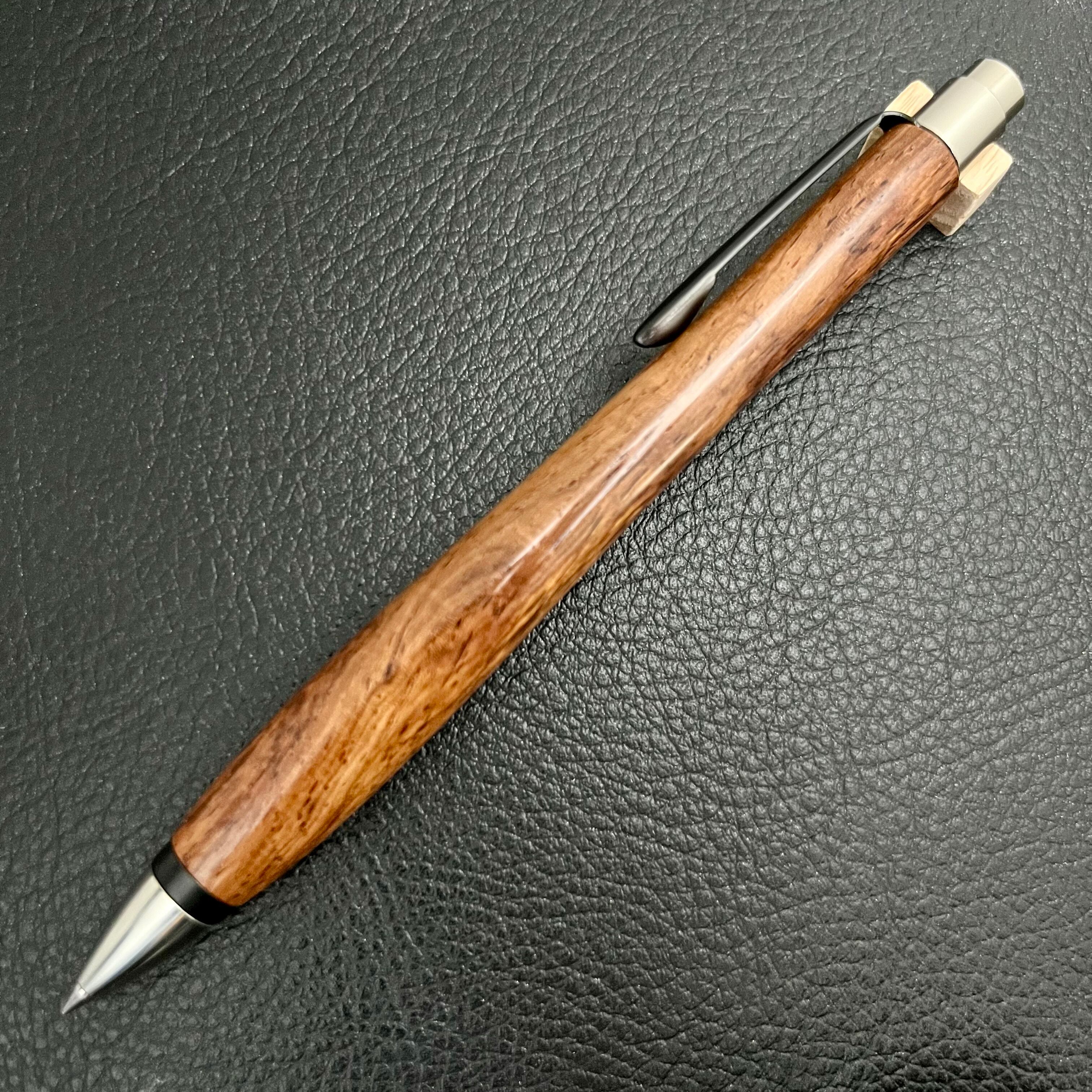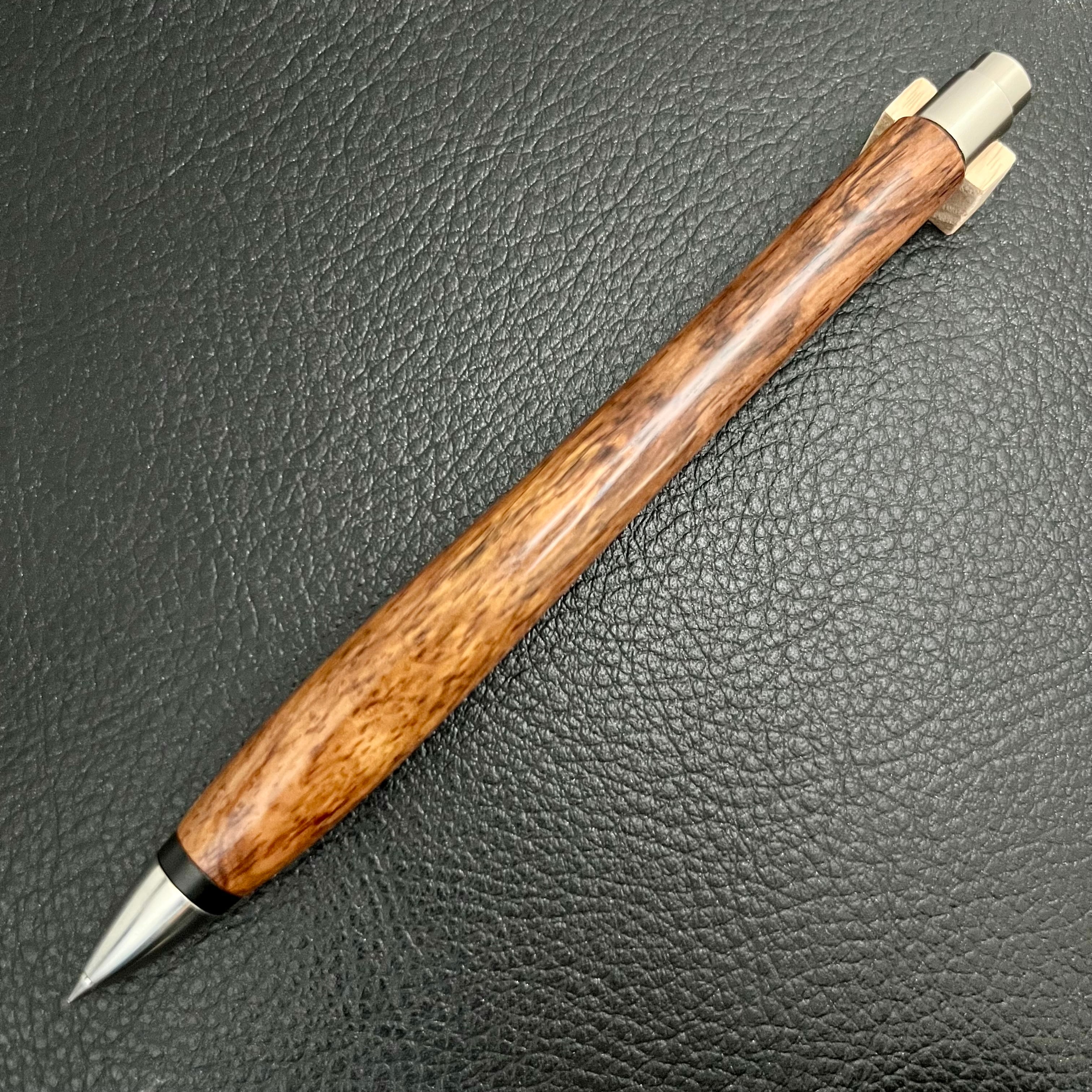 ボールペンのノックシステムは、ドイツ最高のクリックメカニズムを採用してあります。このメカニズムはユニークな機構のため、クリックしたときのカチカチ音が静かで、どんな場所でも気兼ねなく使うことができます。滑らかに動くこのプッシュ感覚を一度味わうと他には戻れなくなってしまうほどの魅力があります。 100分の1単位の加工精度で削り出されたペン先は、軸ブレも全くありません。