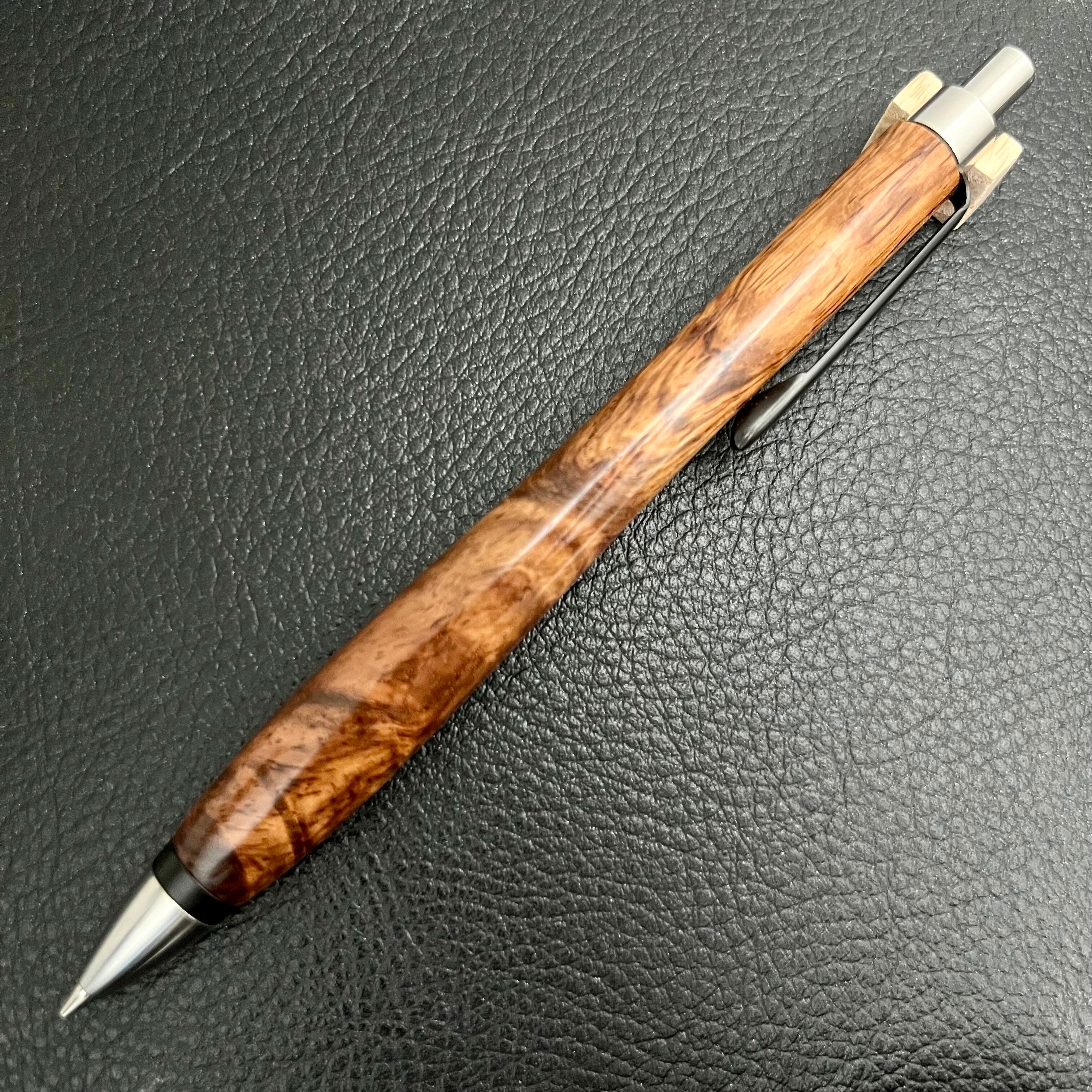 ペンシルは軸ブレが起こりにくい固定式口金を採用し、木の表情を最大限に楽しめる木軸の長さと、書き心地にこだわったバランスで金具を設計してあります。