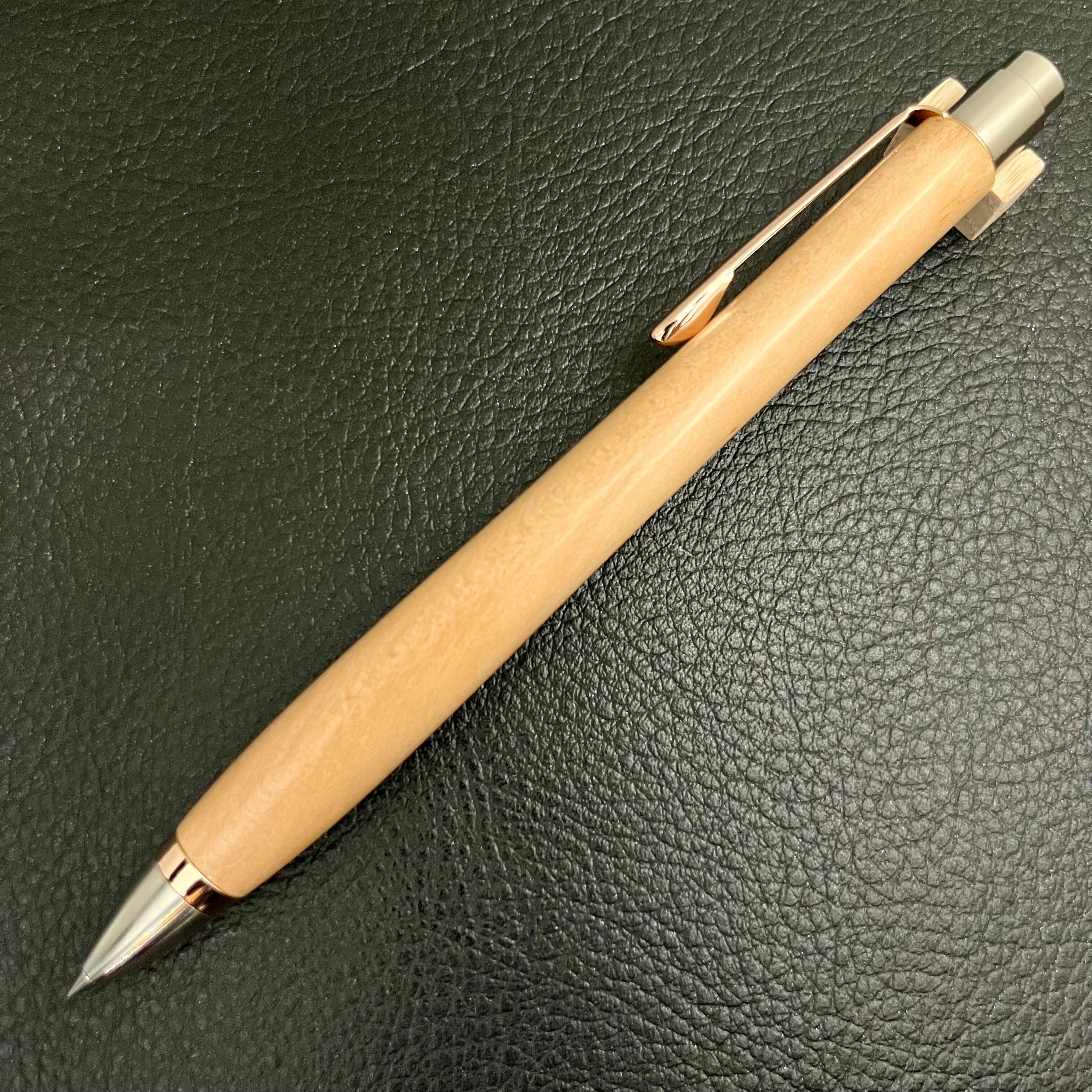 ボールペンのノックシステムは、ドイツ最高のクリックメカニズムを採用してあります。このメカニズムはユニークな機構のため、クリックしたときのカチカチ音が静かで、どんな場所でも気兼ねなく使うことができます。滑らかに動くこのプッシュ感覚を一度味わうと他には戻れなくなってしまうほどの魅力があります。 100分の1単位の加工精度で削り出されたペン先は、軸ブレも全くありません。