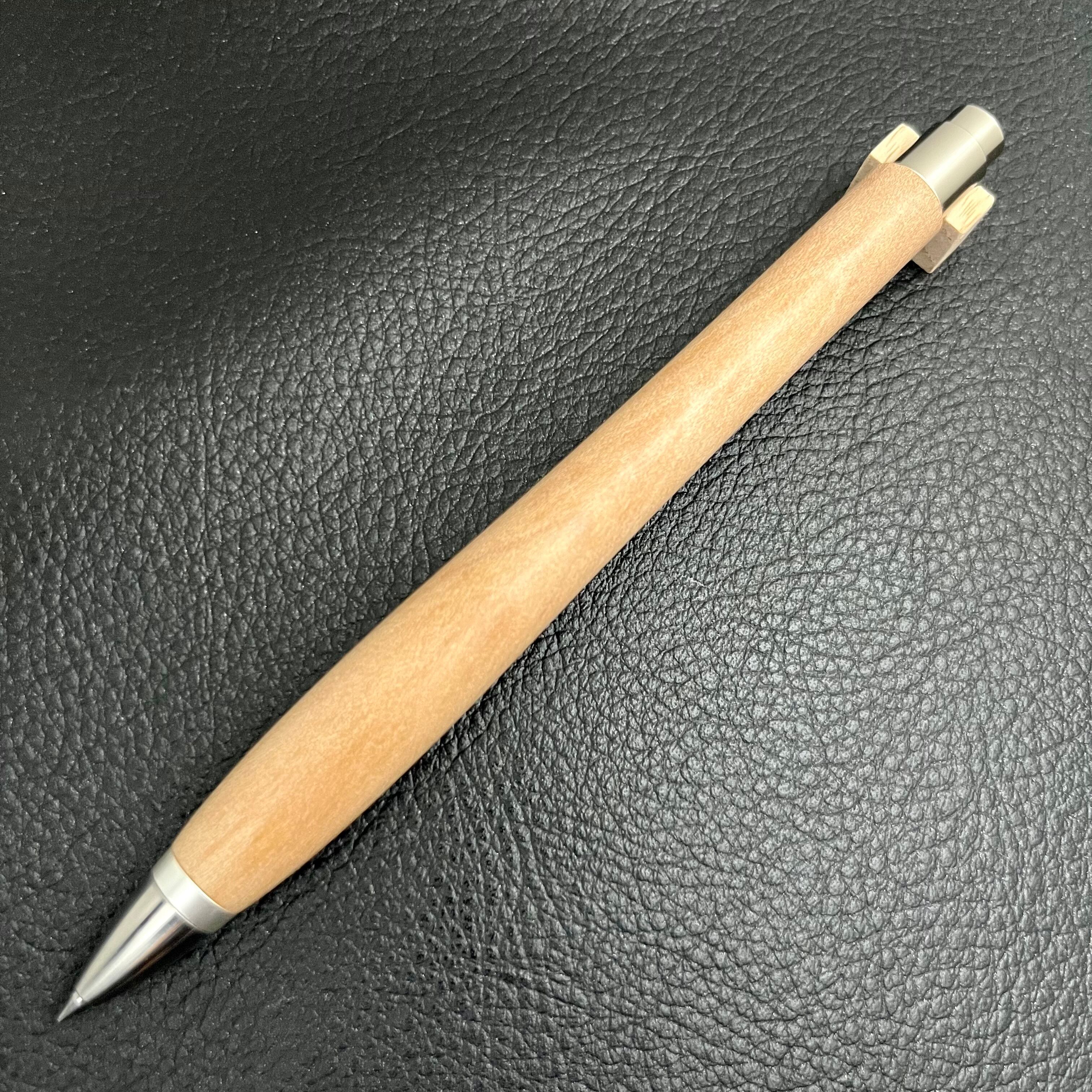 ボールペンのノックシステムは、ドイツ最高のクリックメカニズムを採用してあります。このメカニズムはユニークな機構のため、クリックしたときのカチカチ音が静かで、どんな場所でも気兼ねなく使うことができます。滑らかに動くこのプッシュ感覚を一度味わうと他には戻れなくなってしまうほどの魅力があります。 100分の1単位の加工精度で削り出されたペン先は、軸ブレも全くありません。