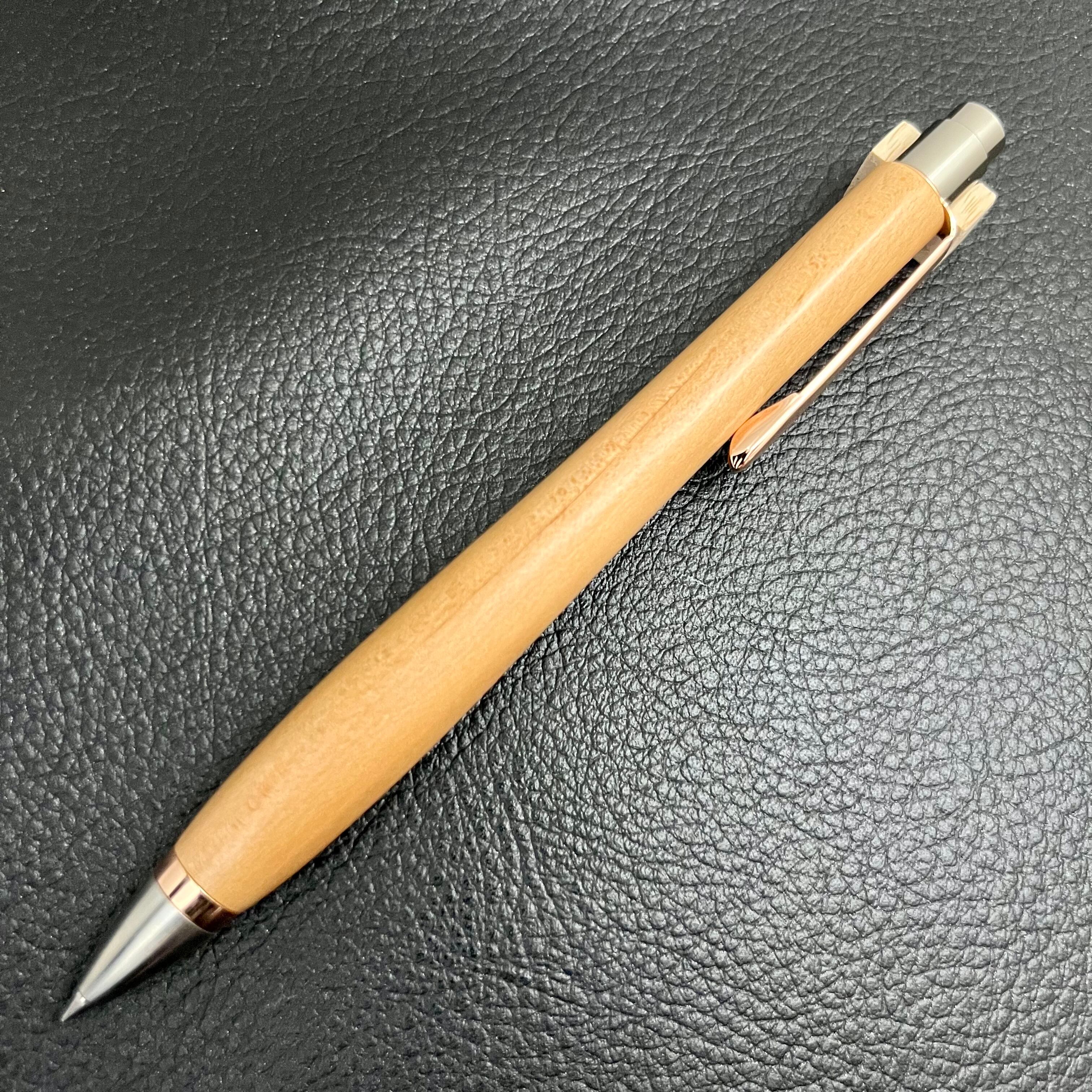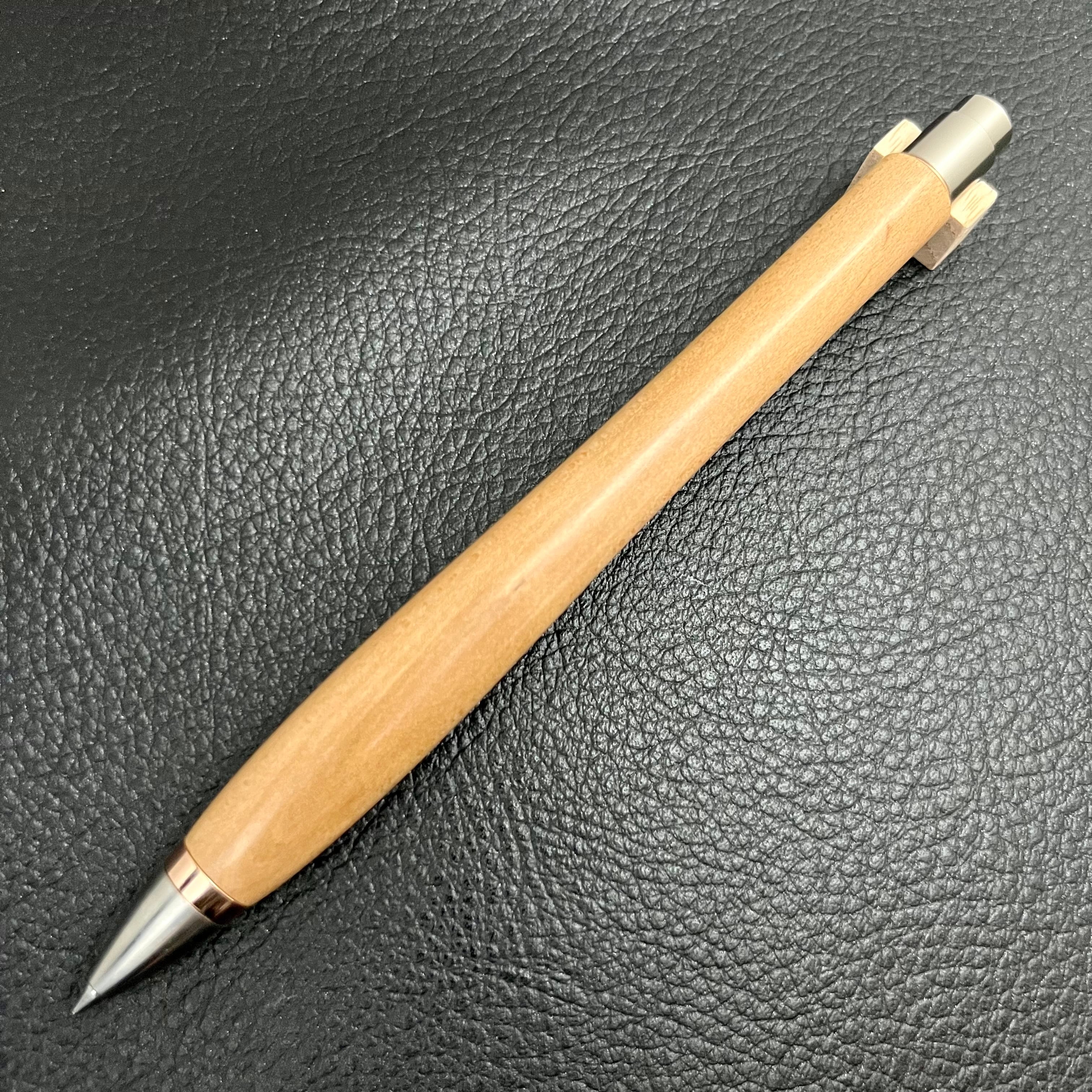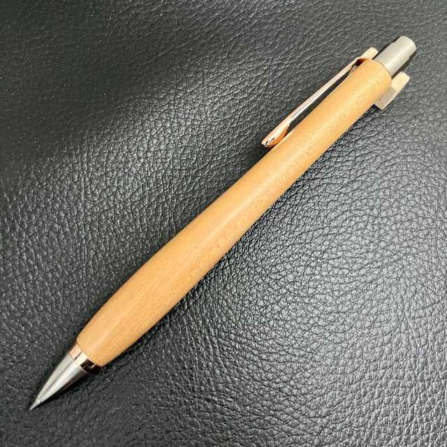 ボールペンのノックシステムは、ドイツ最高のクリックメカニズムを採用してあります。このメカニズムはユニークな機構のため、クリックしたときのカチカチ音が静かで、どんな場所でも気兼ねなく使うことができます。滑らかに動くこのプッシュ感覚を一度味わうと他には戻れなくなってしまうほどの魅力があります。 100分の1単位の加工精度で削り出されたペン先は、軸ブレも全くありません。