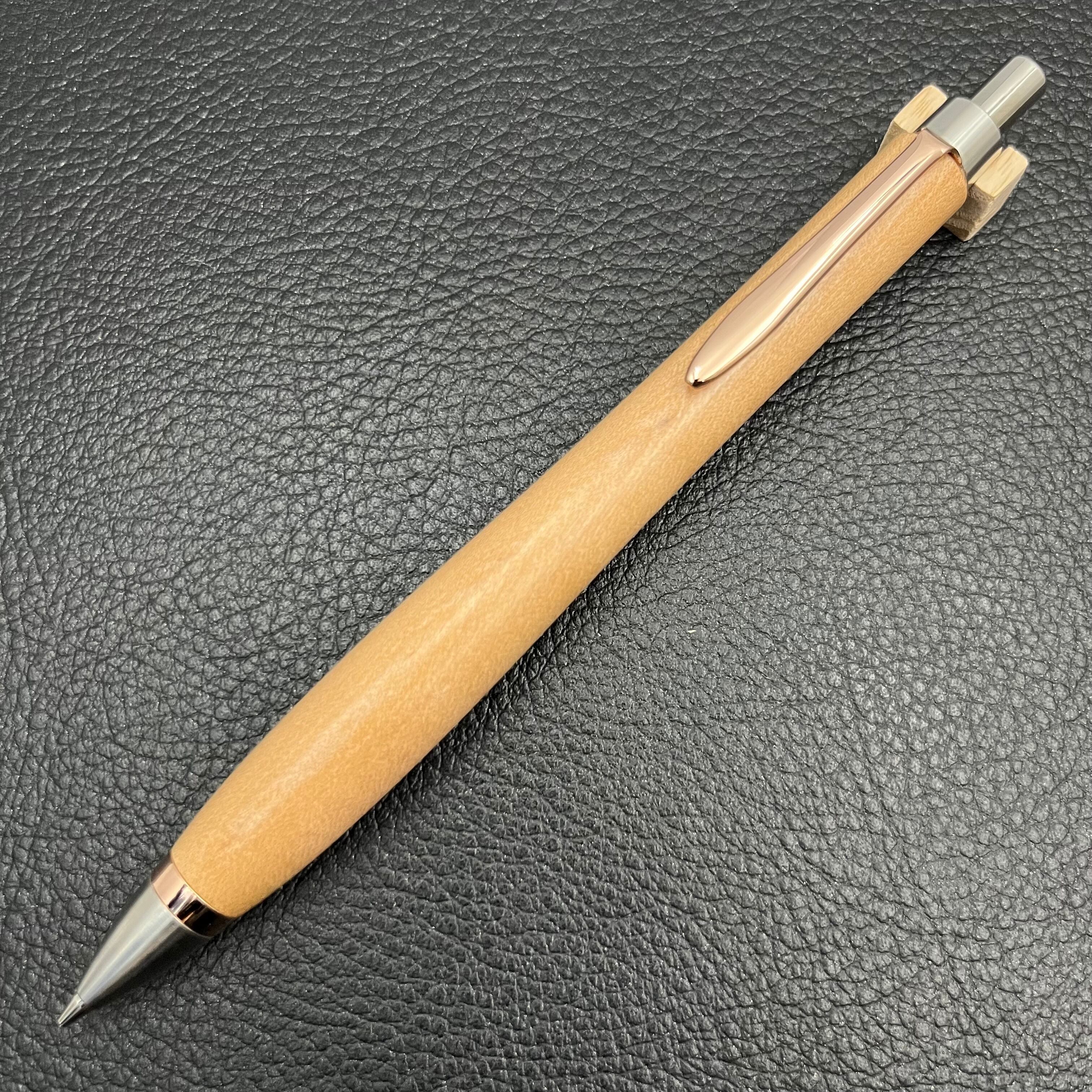 ペンシルは軸ブレが起こりにくい固定式口金を採用し、木の表情を最大限に楽しめる木軸の長さと、書き心地にこだわったバランスで金具を設計してあります。