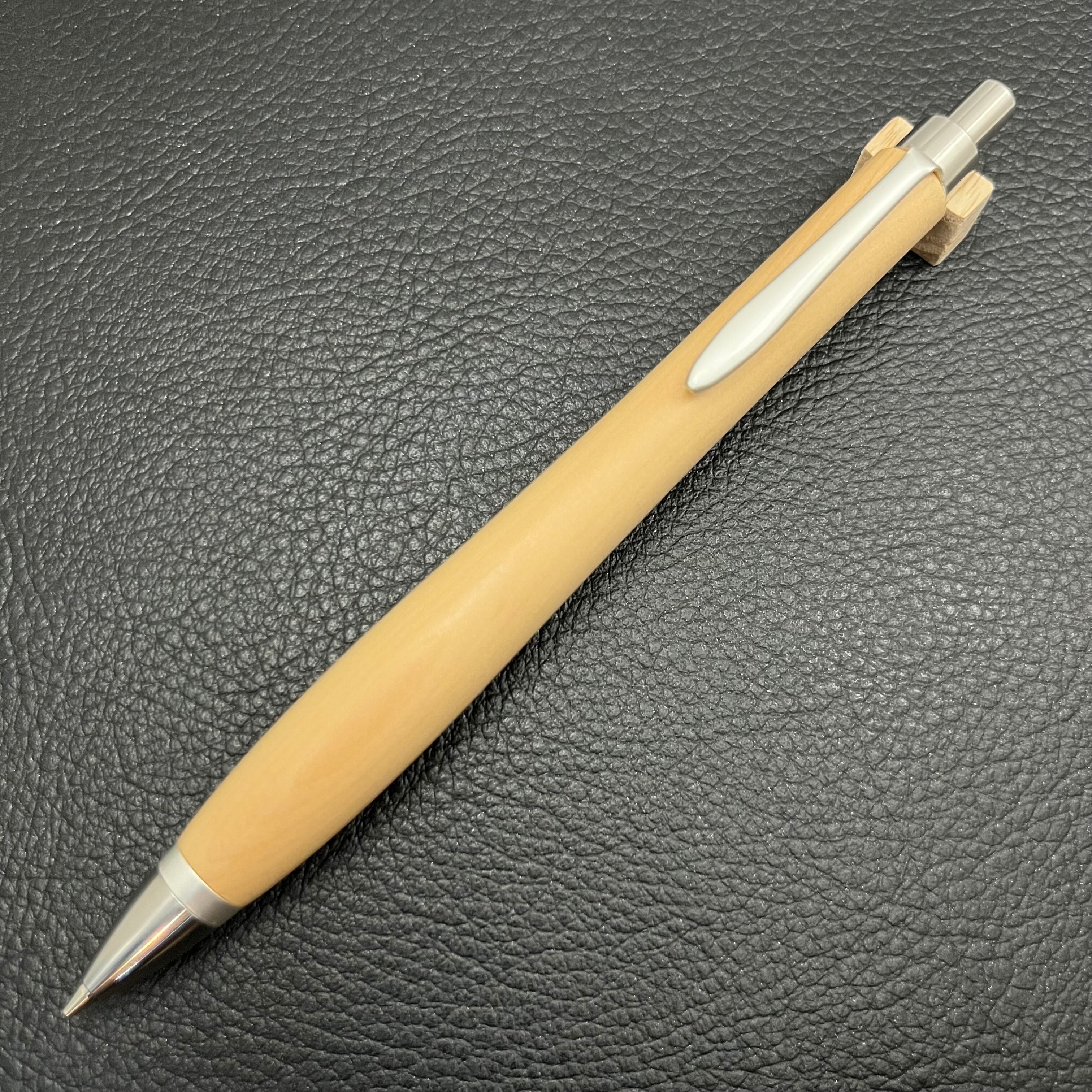 ペンシルは軸ブレが起こりにくい固定式口金を採用し、木の表情を最大限に楽しめる木軸の長さと、書き心地にこだわったバランスで金具を設計してあります。