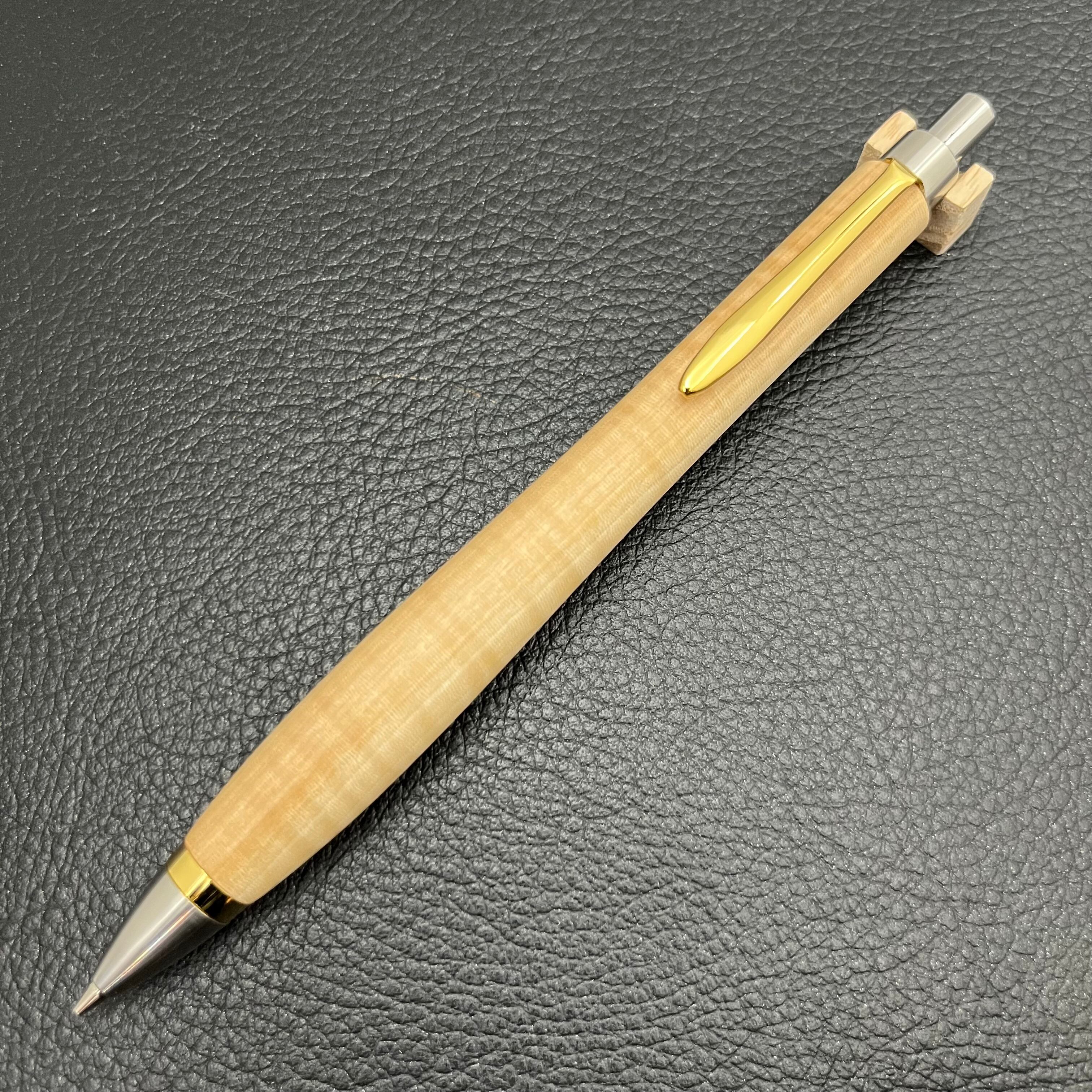 ペンシルは軸ブレが起こりにくい固定式口金を採用し、木の表情を最大限に楽しめる木軸の長さと、書き心地にこだわったバランスで金具を設計してあります。