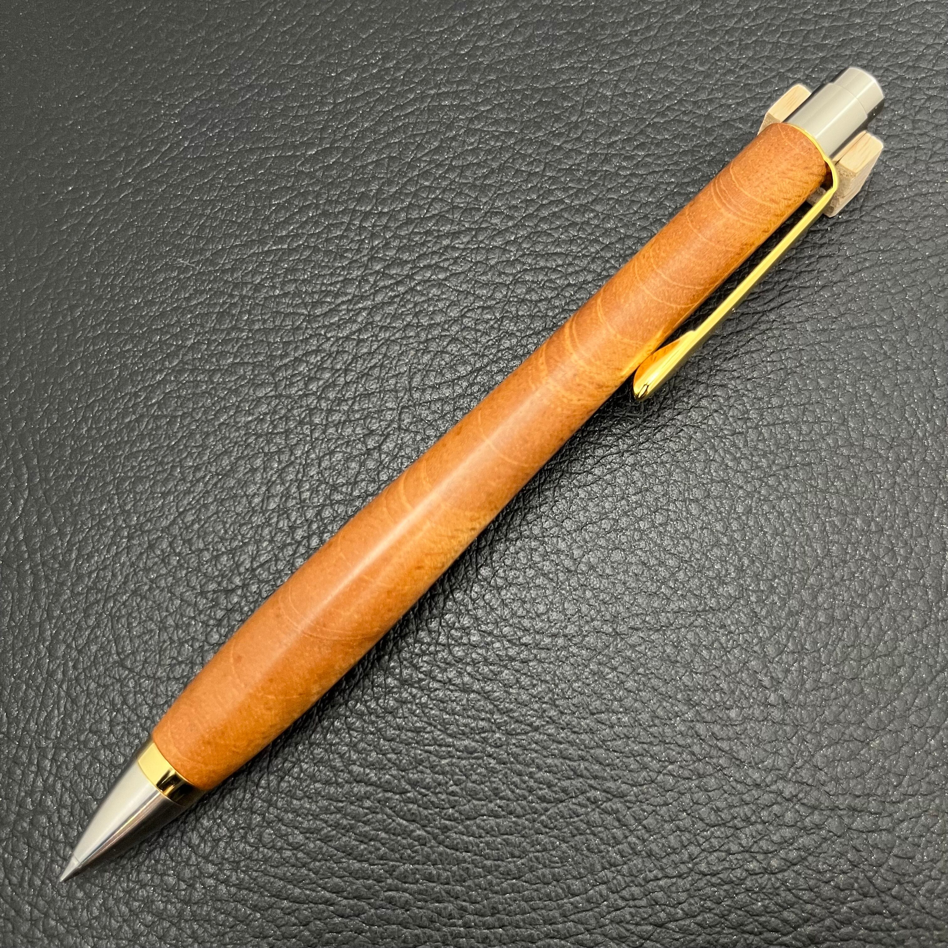 ボールペンのノックシステムは、ドイツ最高のクリックメカニズムを採用してあります。このメカニズムはユニークな機構のため、クリックしたときのカチカチ音が静かで、どんな場所でも気兼ねなく使うことができます。滑らかに動くこのプッシュ感覚を一度味わうと他には戻れなくなってしまうほどの魅力があります。 100分の1単位の加工精度で削り出されたペン先は、軸ブレも全くありません。