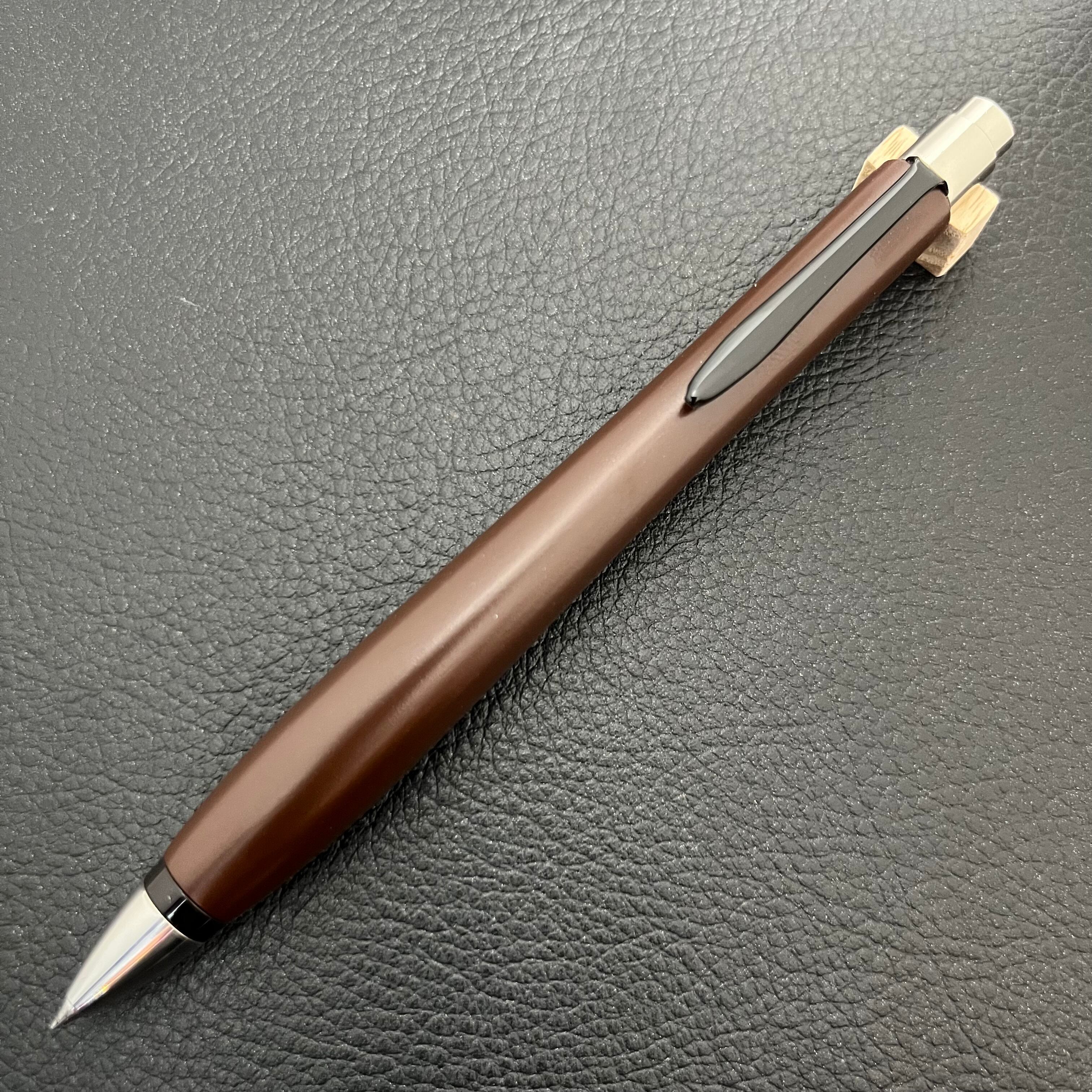 ボールペンのノックシステムは、ドイツ最高のクリックメカニズムを採用してあります。このメカニズムはユニークな機構のため、クリックしたときのカチカチ音が静かで、どんな場所でも気兼ねなく使うことができます。滑らかに動くこのプッシュ感覚を一度味わうと他には戻れなくなってしまうほどの魅力があります。 100分の1単位の加工精度で削り出されたペン先は、軸ブレも全くありません。