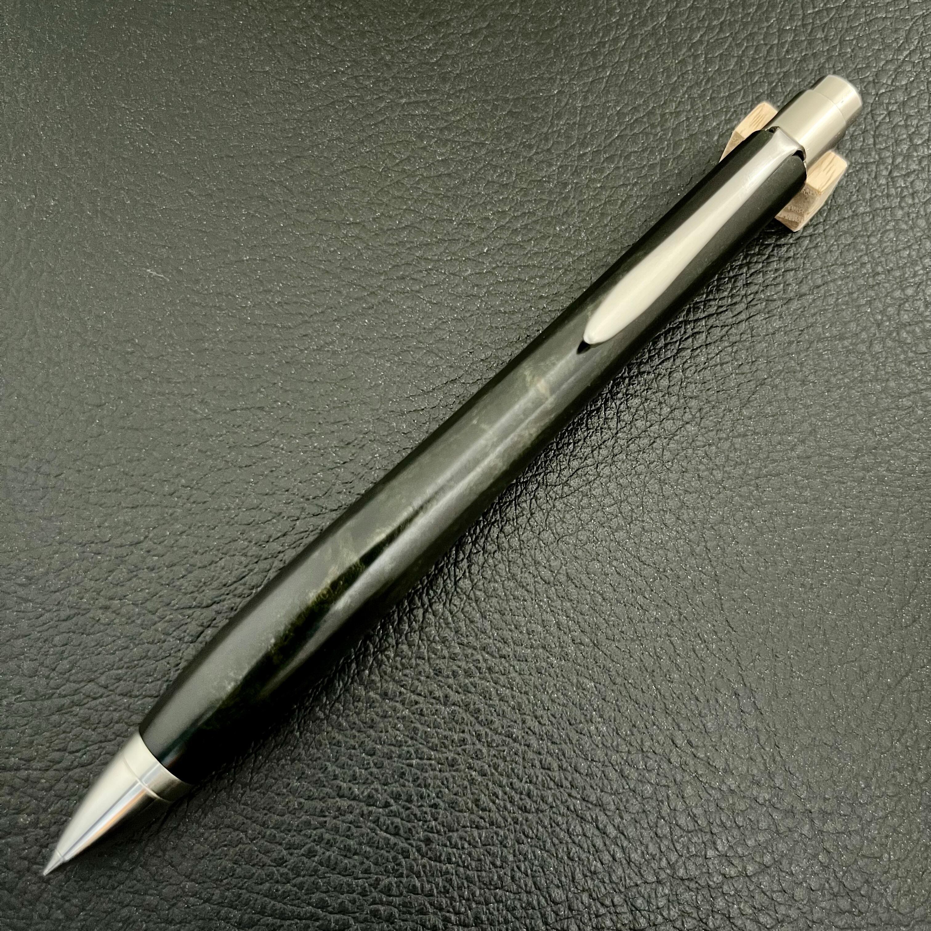 ボールペンのノックシステムは、ドイツ最高のクリックメカニズムを採用してあります。このメカニズムはユニークな機構のため、クリックしたときのカチカチ音が静かで、どんな場所でも気兼ねなく使うことができます。滑らかに動くこのプッシュ感覚を一度味わうと他には戻れなくなってしまうほどの魅力があります。 100分の1単位の加工精度で削り出されたペン先は、軸ブレも全くありません。