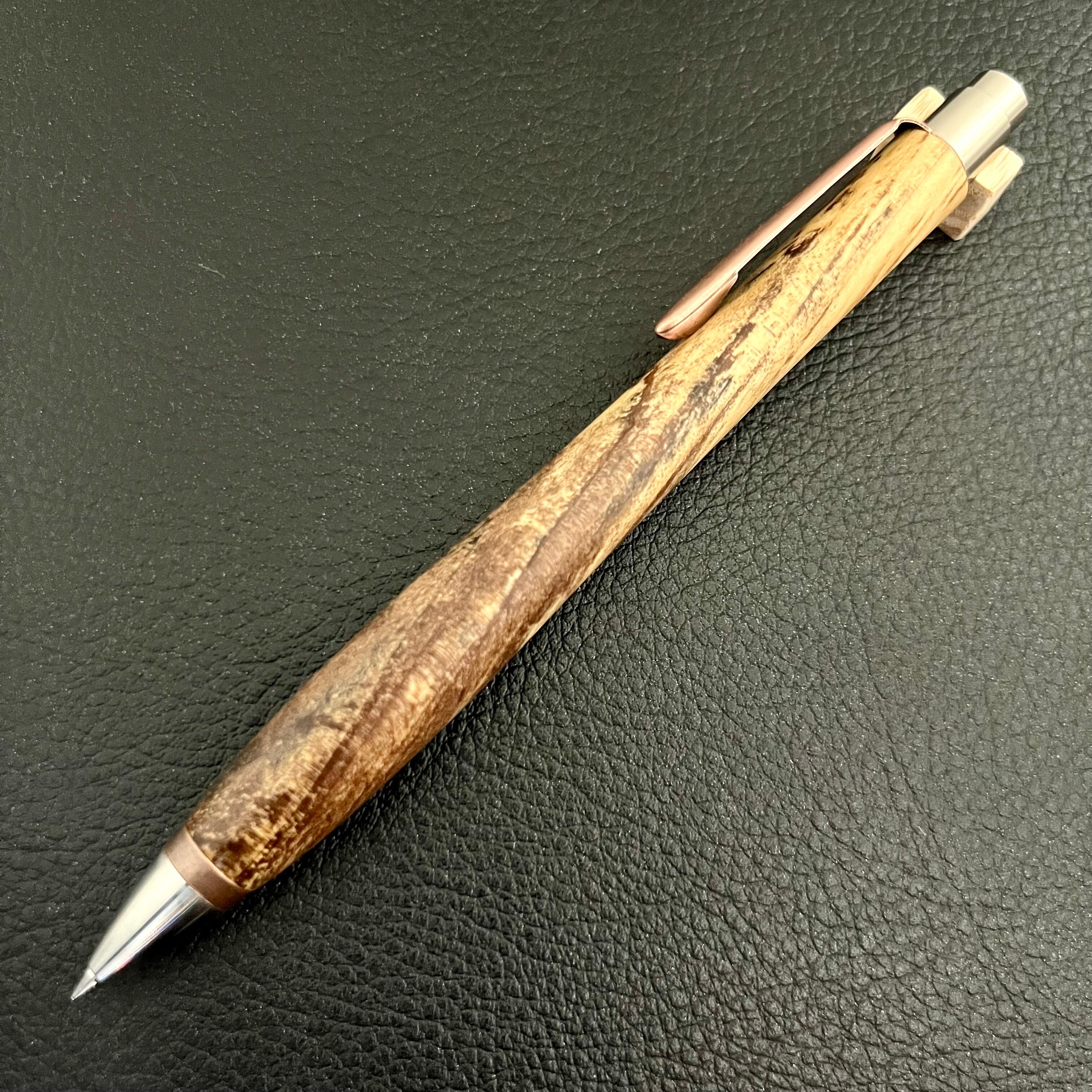 ボールペンのノックシステムは、ドイツ最高のクリックメカニズムを採用してあります。このメカニズムはユニークな機構のため、クリックしたときのカチカチ音が静かで、どんな場所でも気兼ねなく使うことができます。滑らかに動くこのプッシュ感覚を一度味わうと他には戻れなくなってしまうほどの魅力があります。 100分の1単位の加工精度で削り出されたペン先は、軸ブレも全くありません。