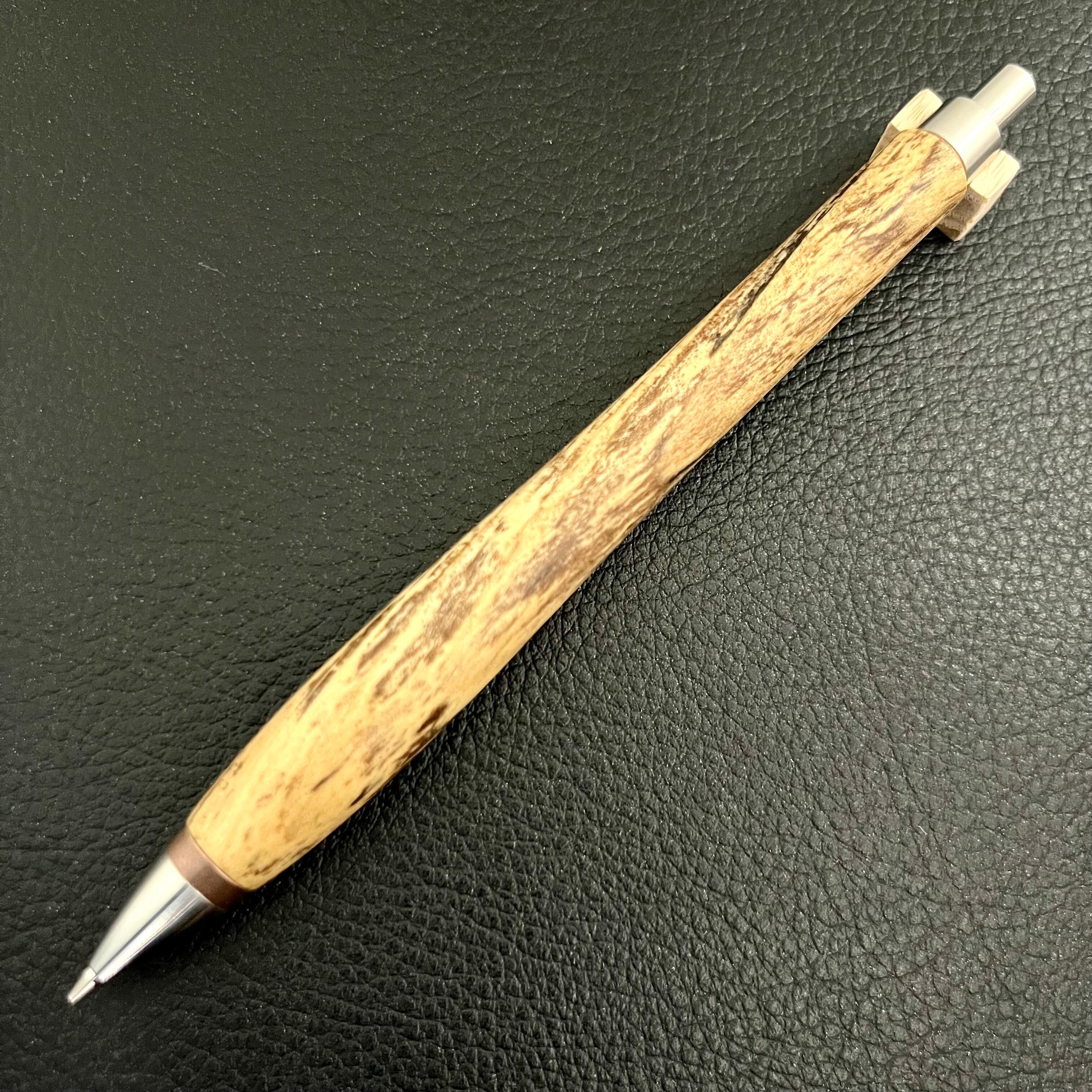 ペンシルは軸ブレが起こりにくい固定式口金を採用し、木の表情を最大限に楽しめる木軸の長さと、書き心地にこだわったバランスで金具を設計してあります。