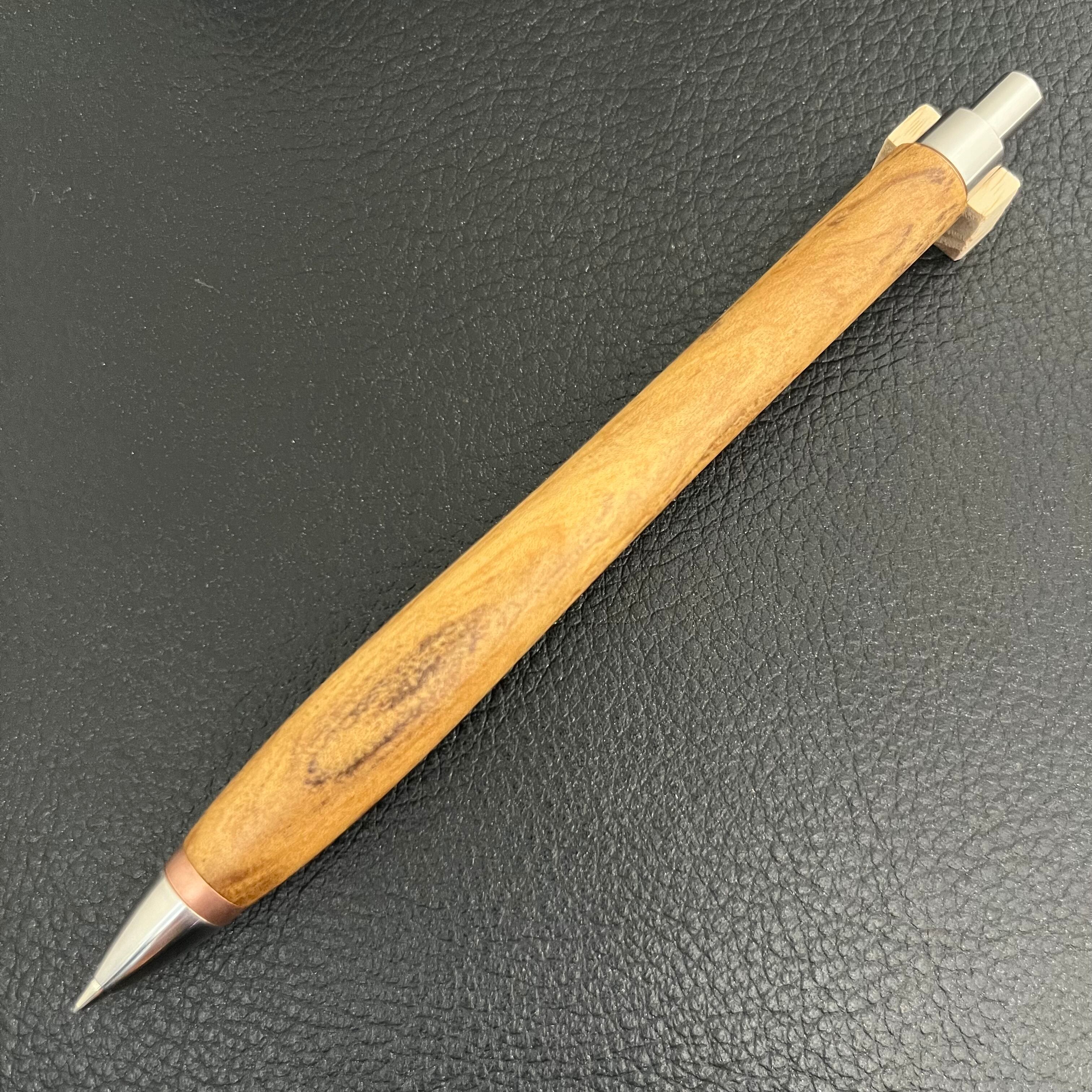 ペンシルは軸ブレが起こりにくい固定式口金を採用し、木の表情を最大限に楽しめる木軸の長さと、書き心地にこだわったバランスで金具を設計してあります。