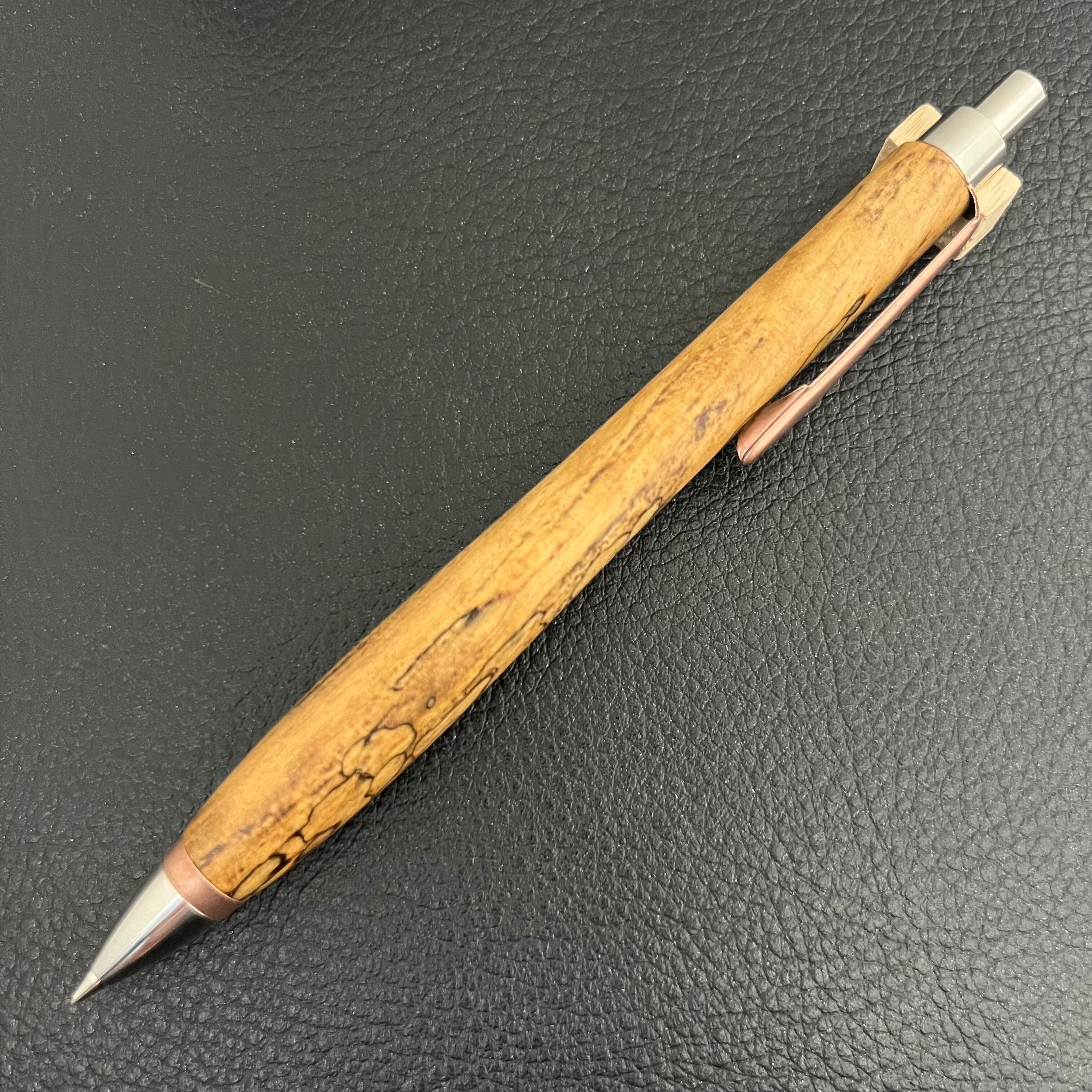 ペンシルは軸ブレが起こりにくい固定式口金を採用し、木の表情を最大限に楽しめる木軸の長さと、書き心地にこだわったバランスで金具を設計してあります。