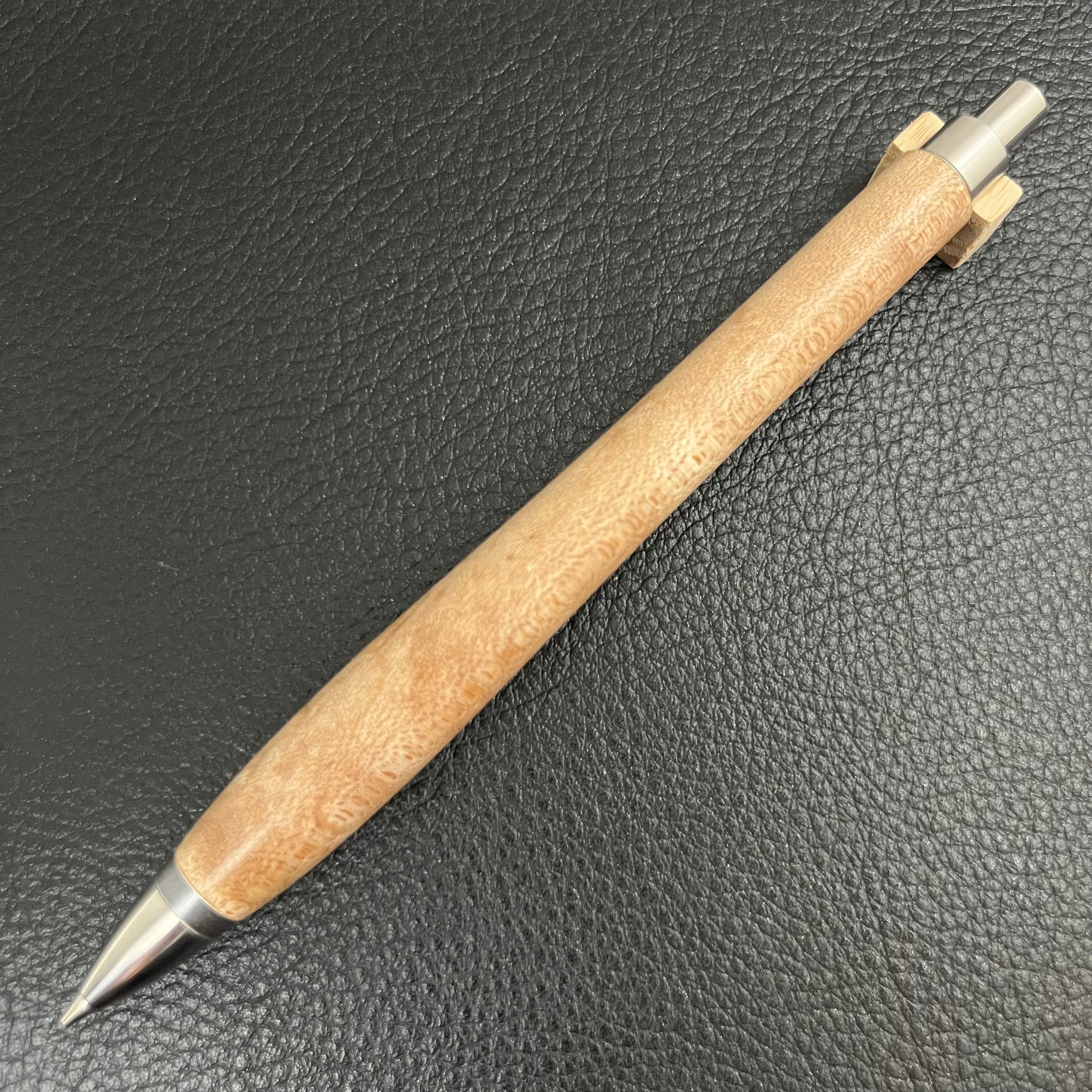 ペンシルは軸ブレが起こりにくい固定式口金を採用し、木の表情を最大限に楽しめる木軸の長さと、書き心地にこだわったバランスで金具を設計してあります。