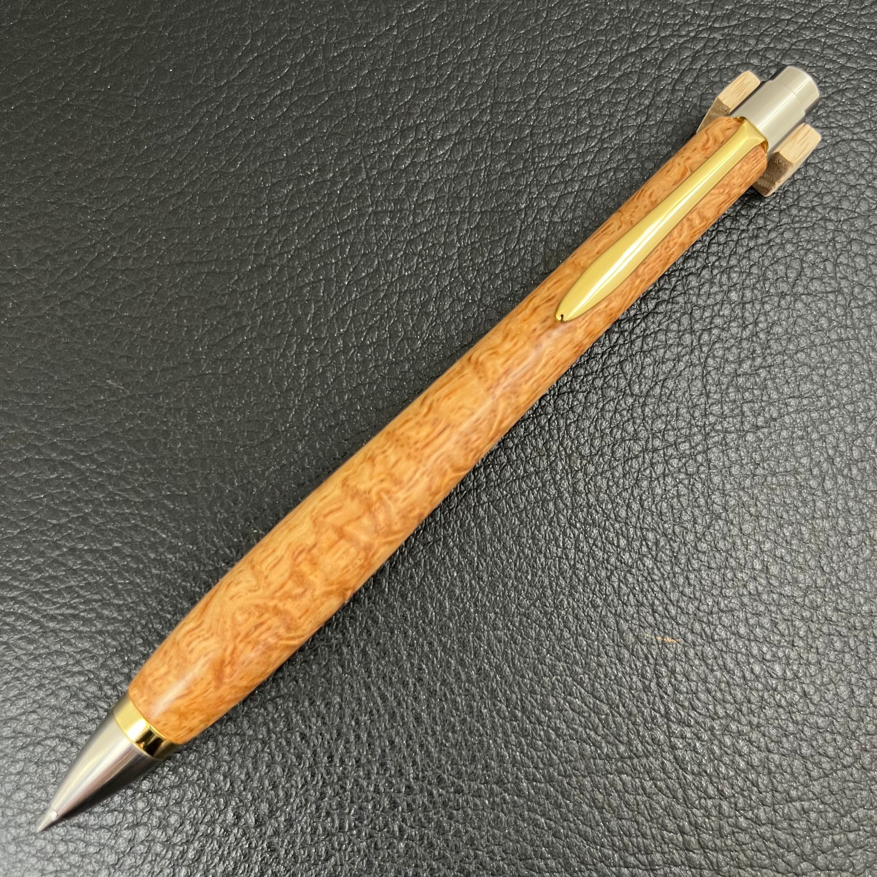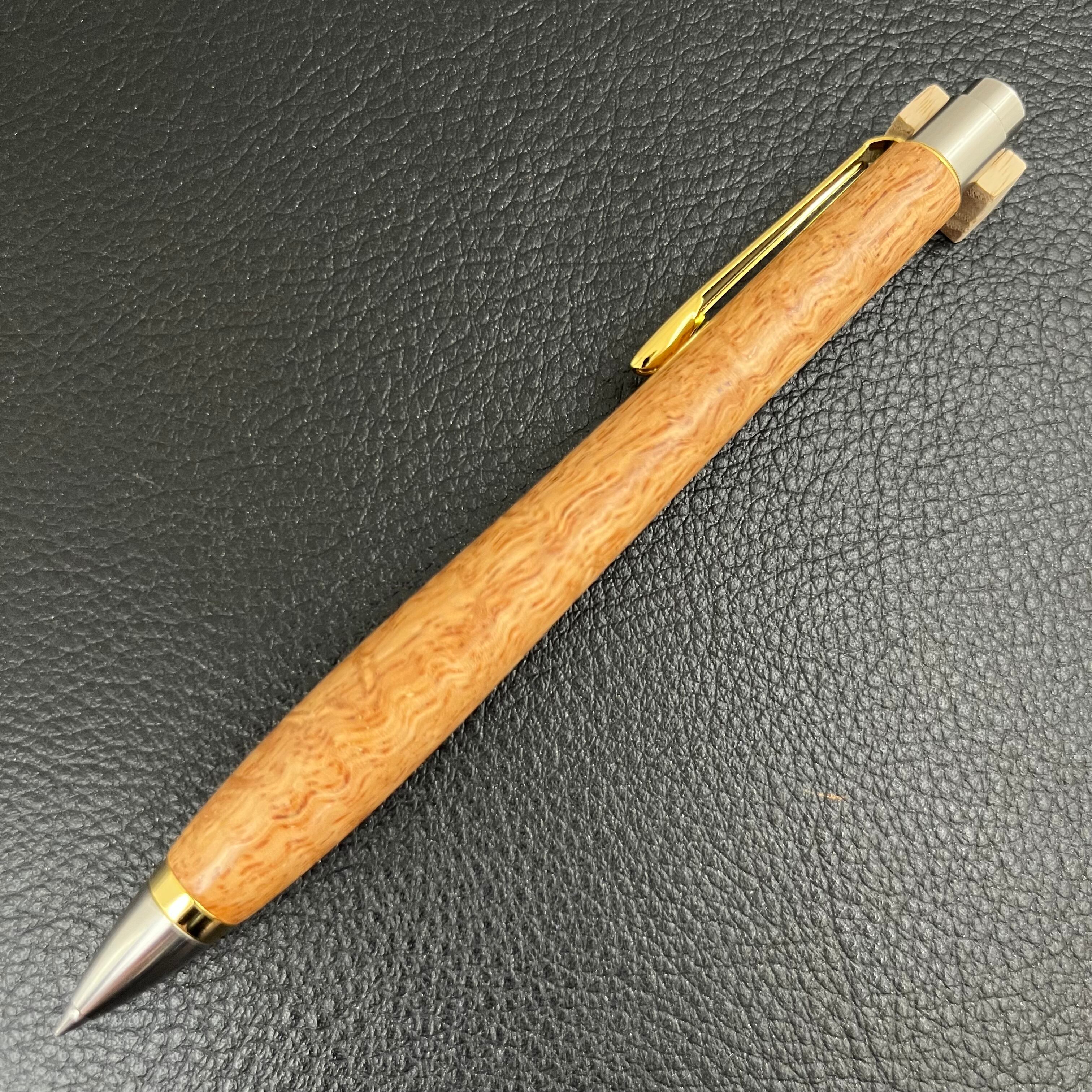 ボールペンのノックシステムは、ドイツ最高のクリックメカニズムを採用してあります。このメカニズムはユニークな機構のため、クリックしたときのカチカチ音が静かで、どんな場所でも気兼ねなく使うことができます。滑らかに動くこのプッシュ感覚を一度味わうと他には戻れなくなってしまうほどの魅力があります。 100分の1単位の加工精度で削り出されたペン先は、軸ブレも全くありません。