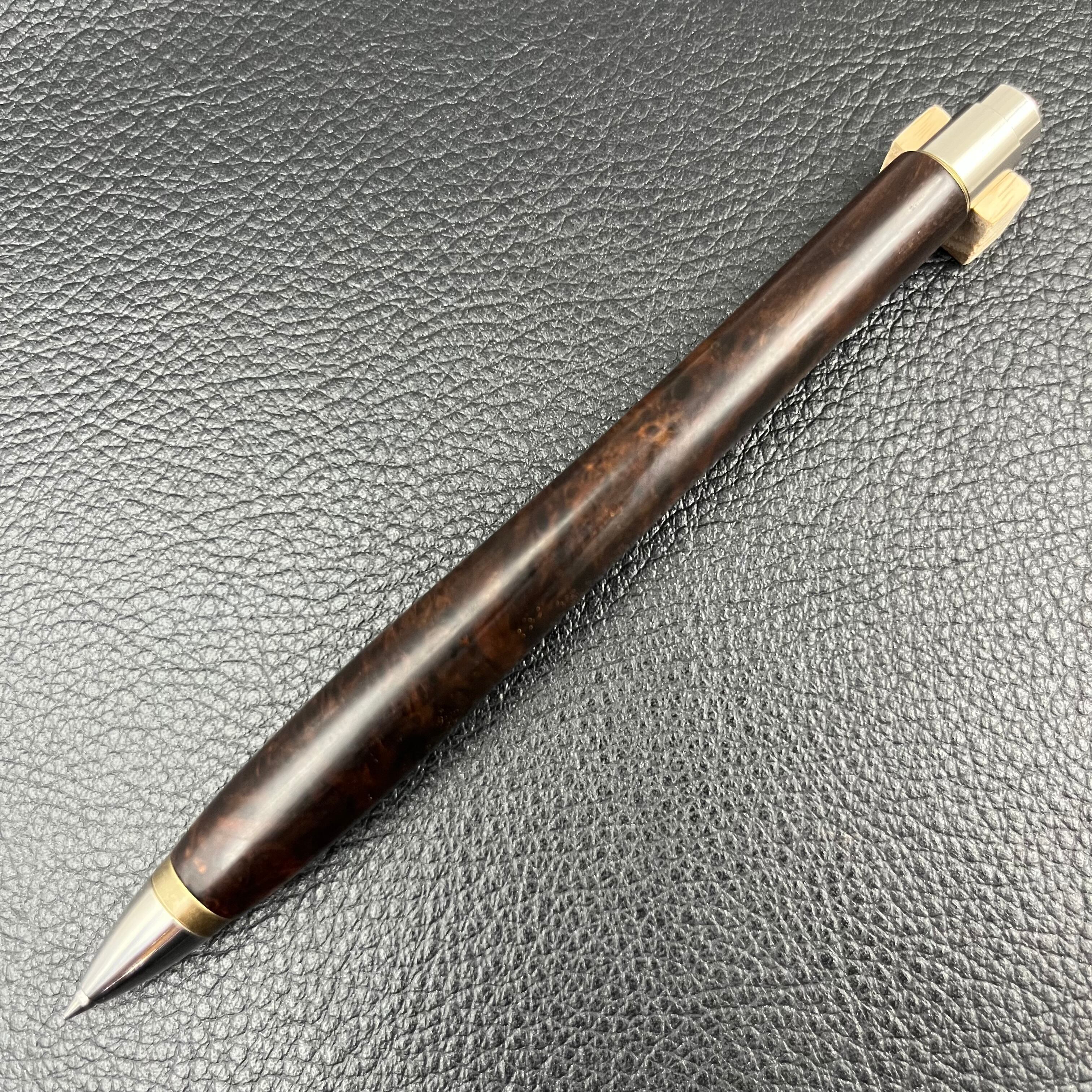 ボールペンのノックシステムは、ドイツ最高のクリックメカニズムを採用してあります。このメカニズムはユニークな機構のため、クリックしたときのカチカチ音が静かで、どんな場所でも気兼ねなく使うことができます。滑らかに動くこのプッシュ感覚を一度味わうと他には戻れなくなってしまうほどの魅力があります。 100分の1単位の加工精度で削り出されたペン先は、軸ブレも全くありません。