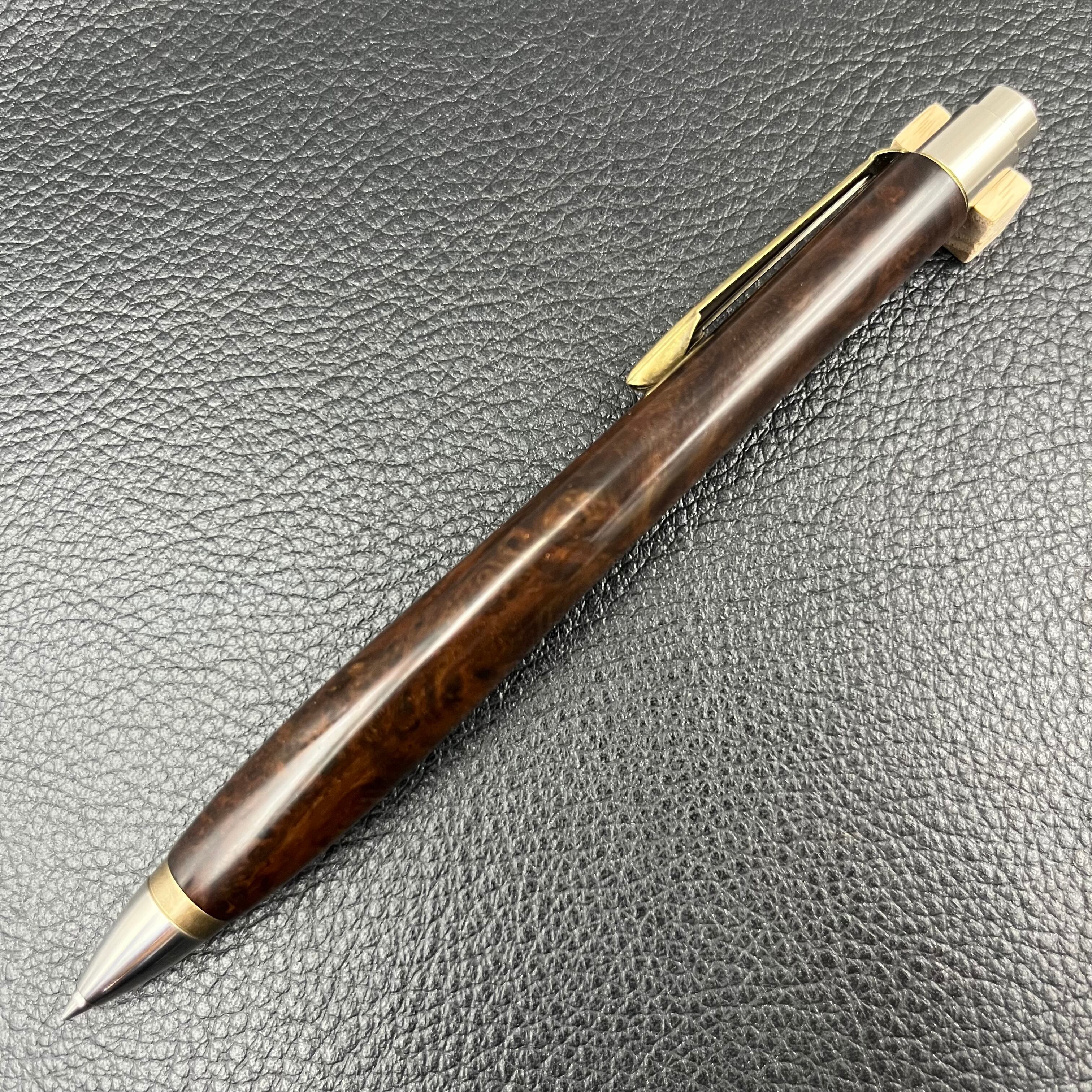 ボールペンのノックシステムは、ドイツ最高のクリックメカニズムを採用してあります。このメカニズムはユニークな機構のため、クリックしたときのカチカチ音が静かで、どんな場所でも気兼ねなく使うことができます。滑らかに動くこのプッシュ感覚を一度味わうと他には戻れなくなってしまうほどの魅力があります。 100分の1単位の加工精度で削り出されたペン先は、軸ブレも全くありません。