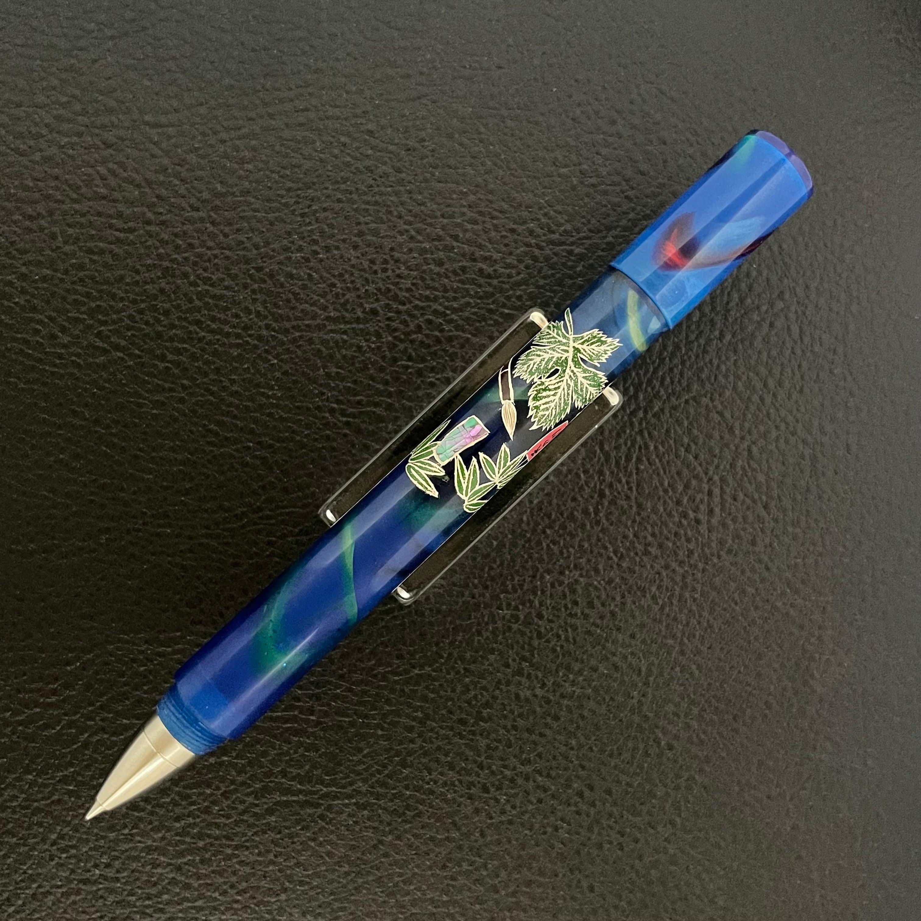 ※彩ペンに季節に合わせた漆画を描いたペンとなります。一部に螺鈿も施しております。