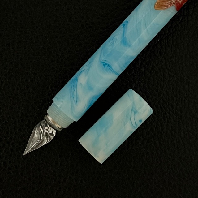 キャップ式で安心して持ち歩ける、優美な彩ガラスペンです。