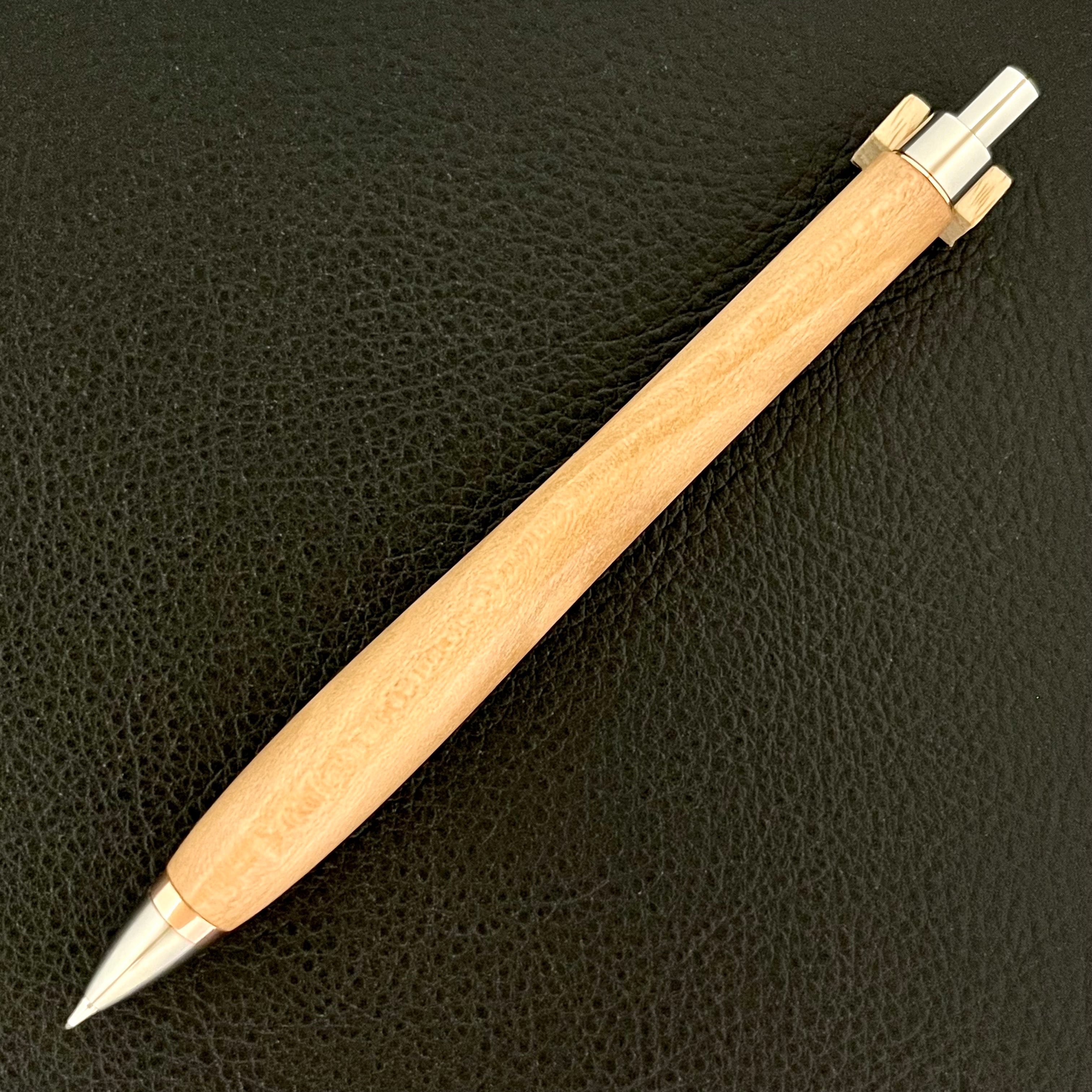 ペンシルは軸ブレが起こりにくい固定式口金を採用し、木の表情を最大限に楽しめる木軸の長さと、書き心地にこだわったバランスで金具を設計してあります。