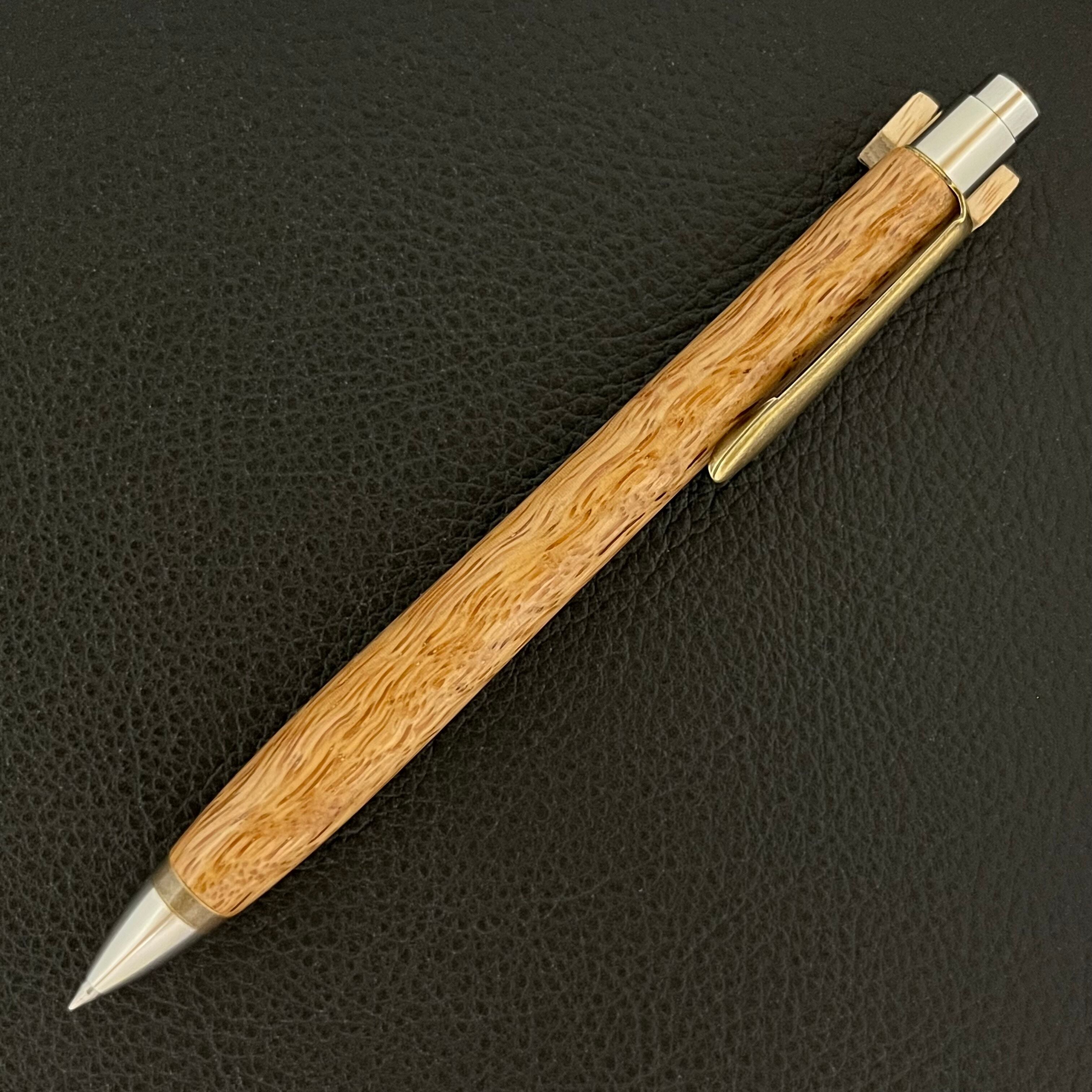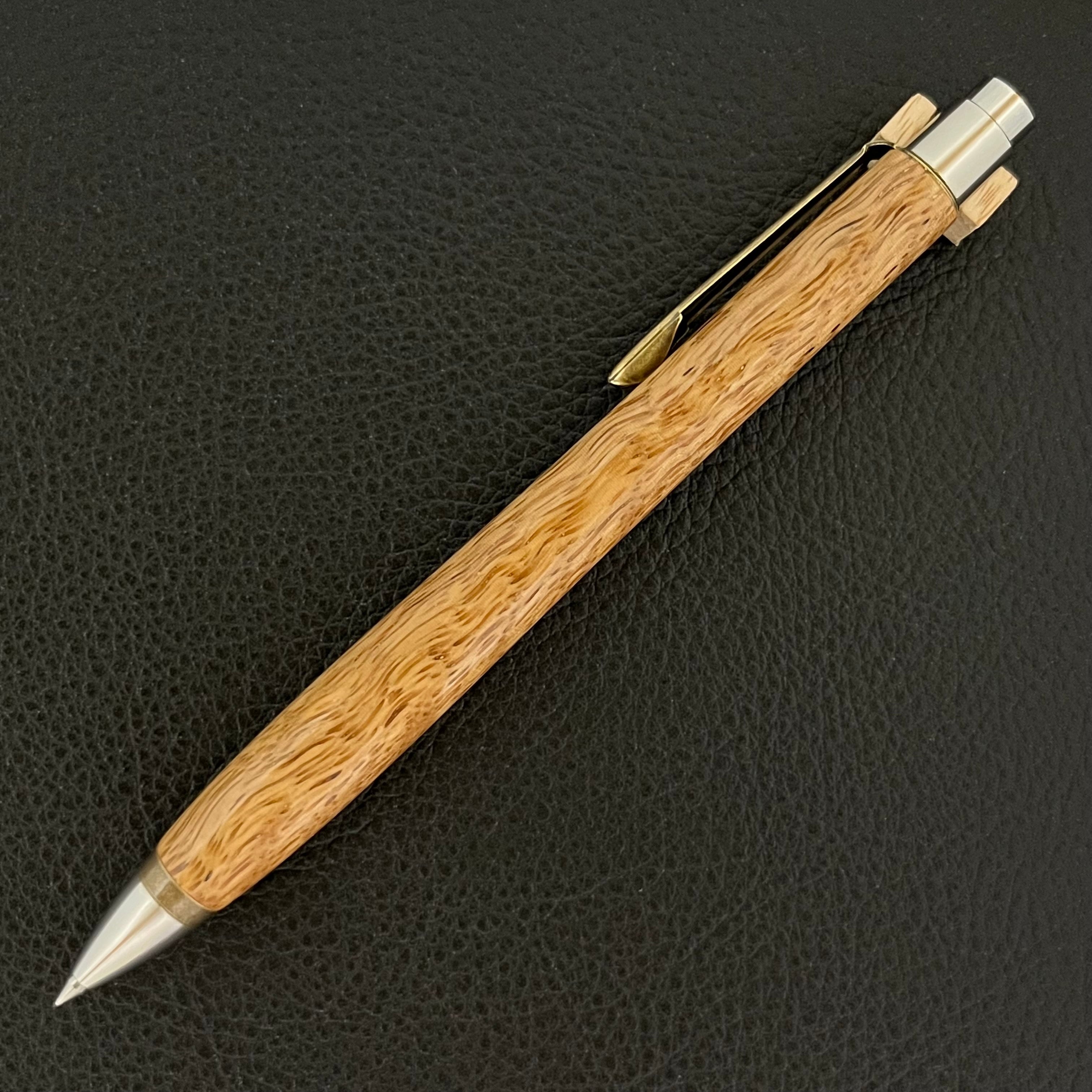 ボールペンのノックシステムは、ドイツ最高のクリックメカニズムを採用してあります。このメカニズムはユニークな機構のため、クリックしたときのカチカチ音が静かで、どんな場所でも気兼ねなく使うことができます。滑らかに動くこのプッシュ感覚を一度味わうと他には戻れなくなってしまうほどの魅力があります。 100分の1単位の加工精度で削り出されたペン先は、軸ブレも全くありません。