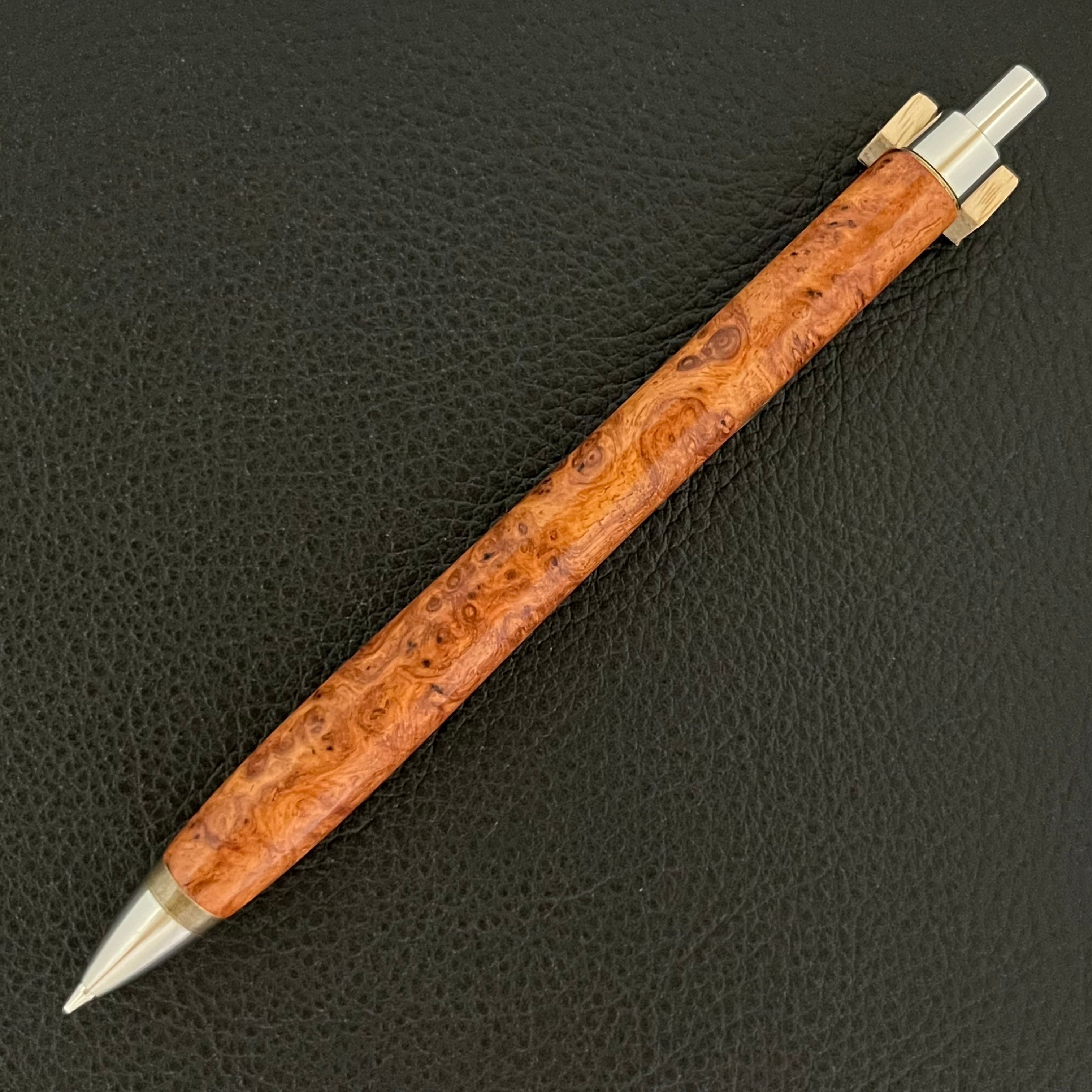 ペンシルは軸ブレが起こりにくい固定式口金を採用し、木の表情を最大限に楽しめる木軸の長さと、書き心地にこだわったバランスで金具を設計してあります。